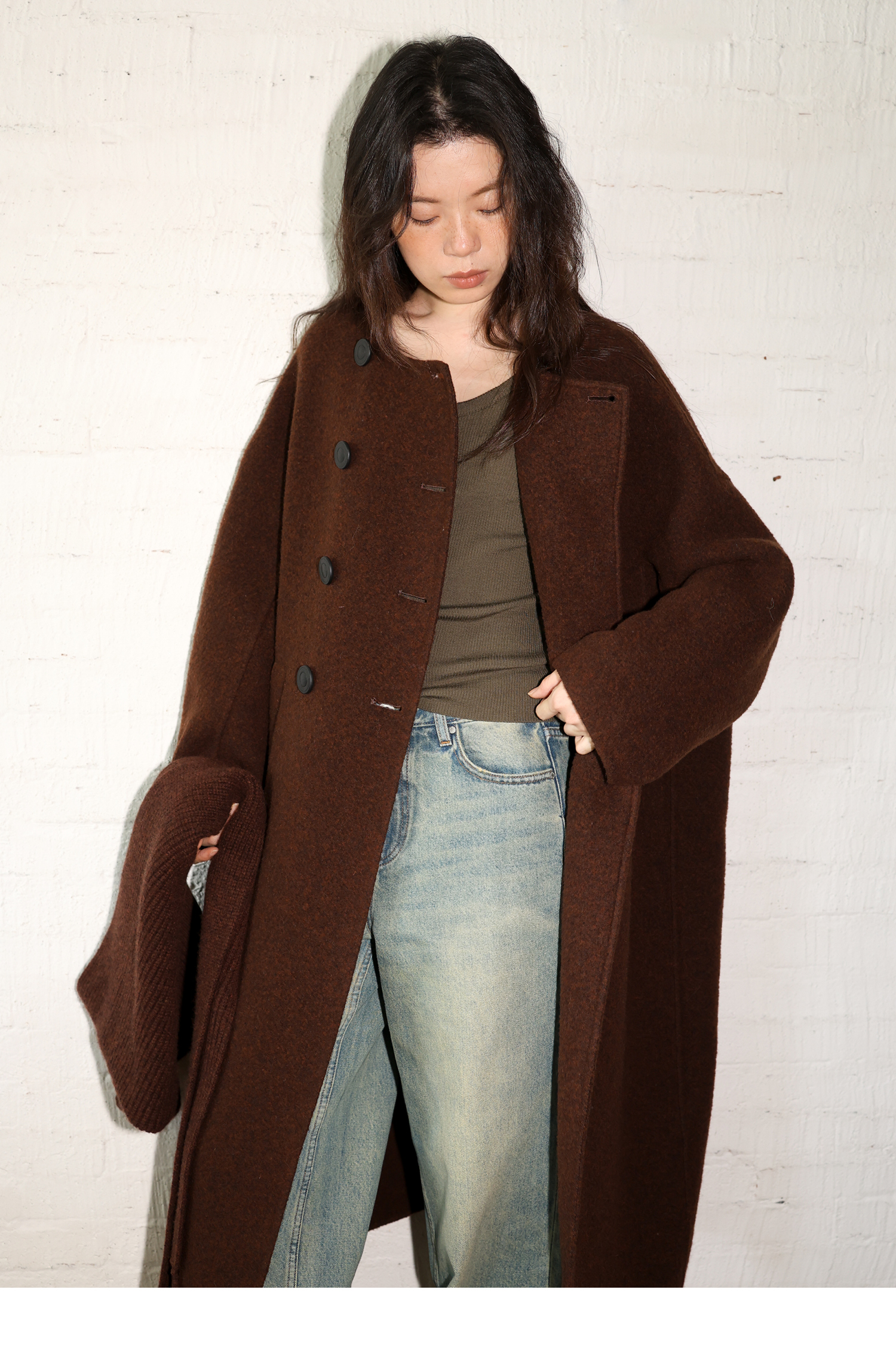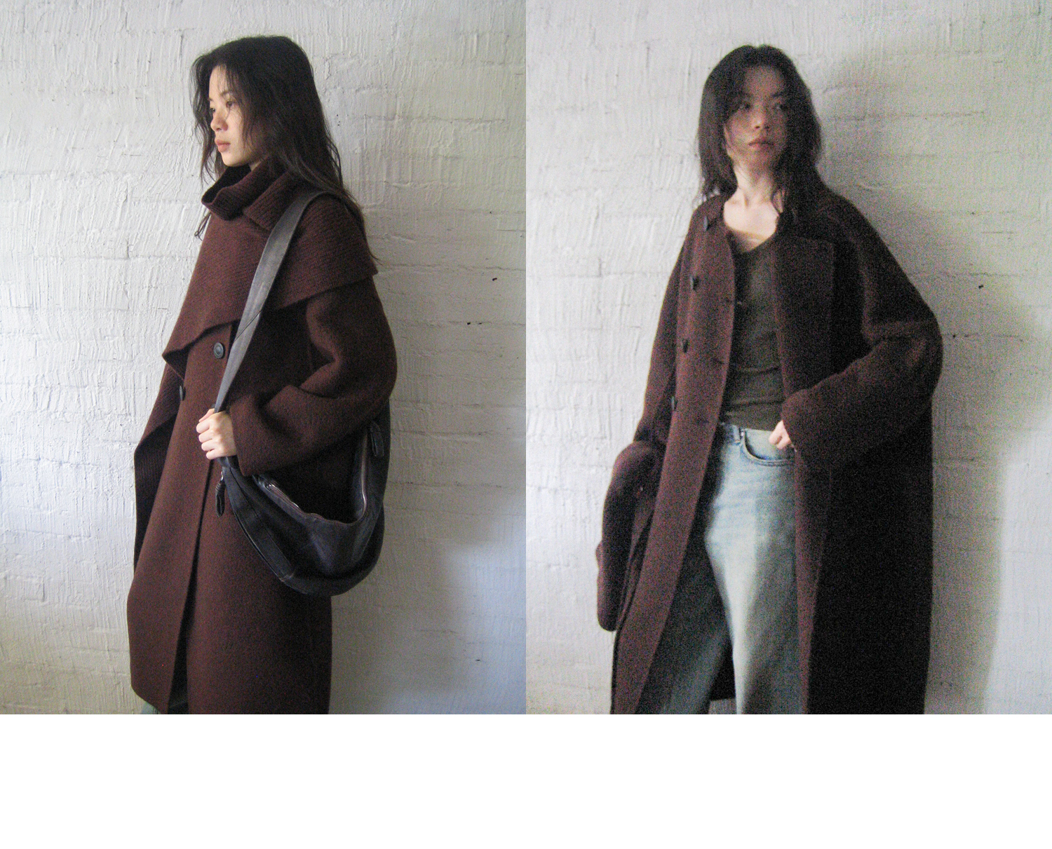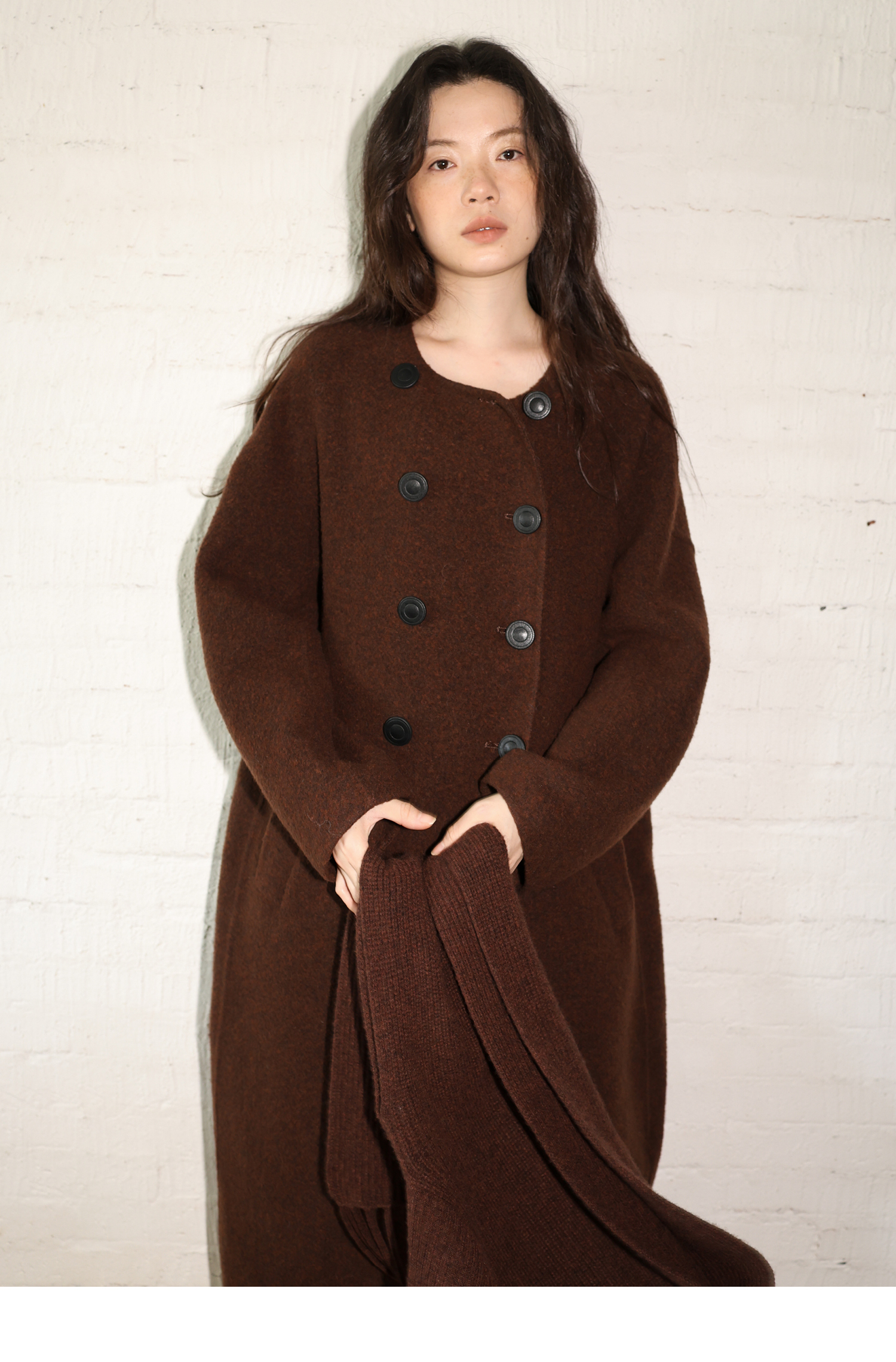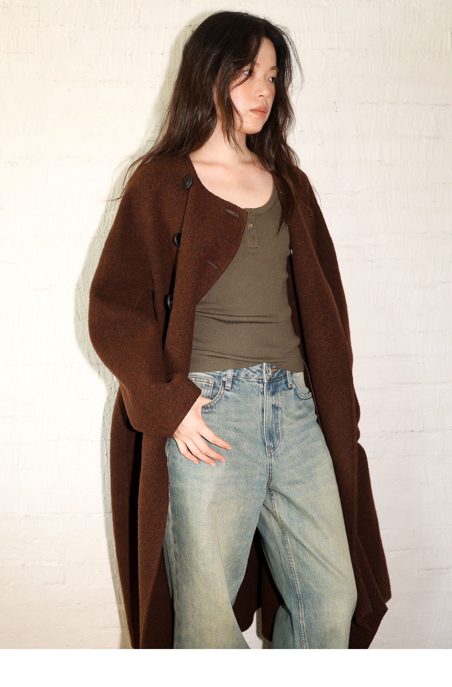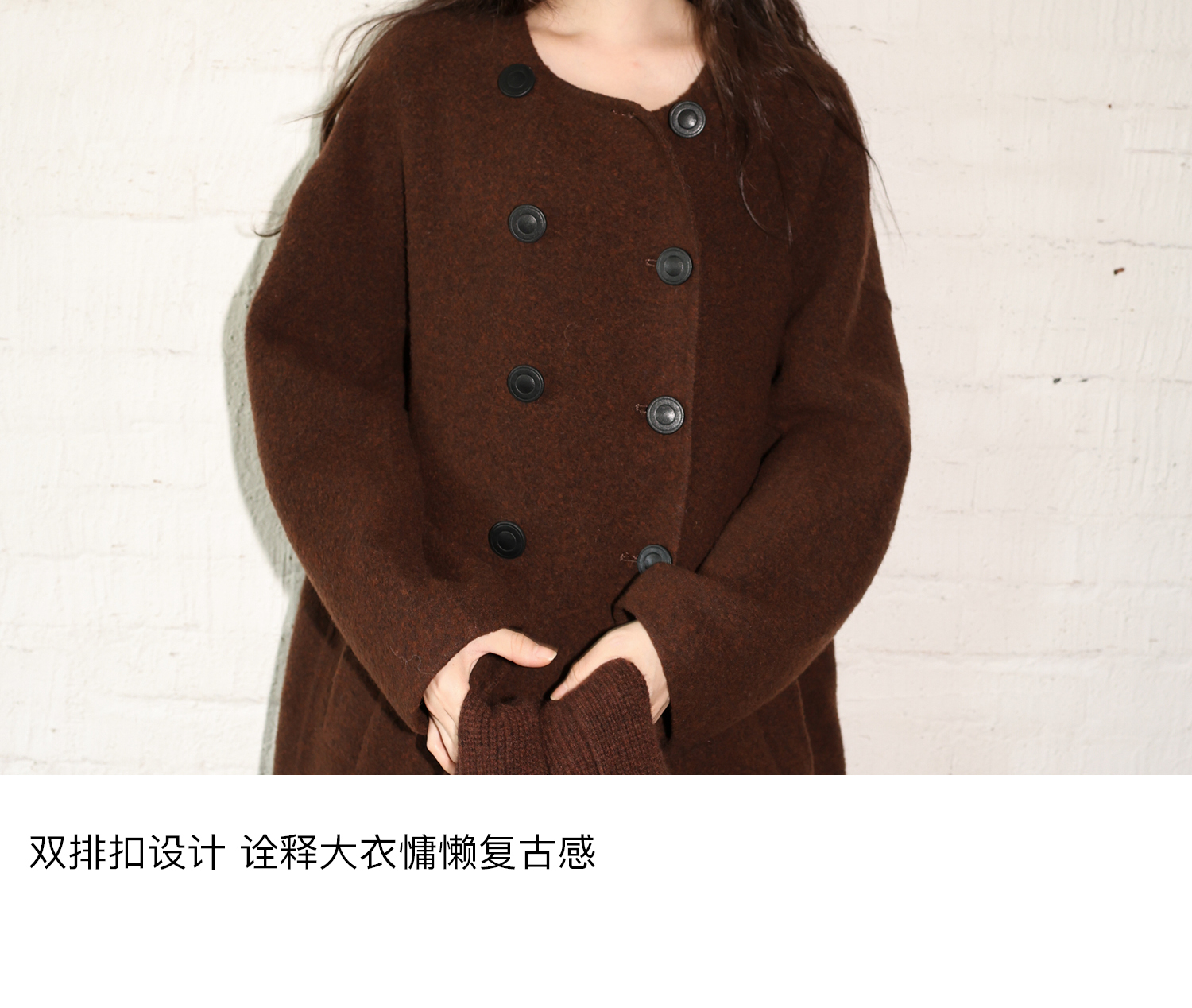 素舶 绵羊毛圆领茧型流苏针织围巾长款双面呢大衣