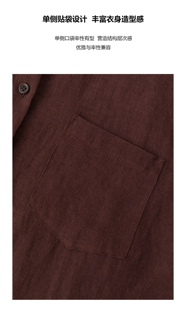 UMILAB|肉桂*智性老钱 100%砂洗亚麻肌理干爽透气廓形衬衫H1315W