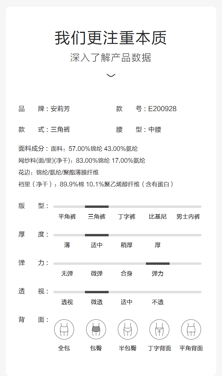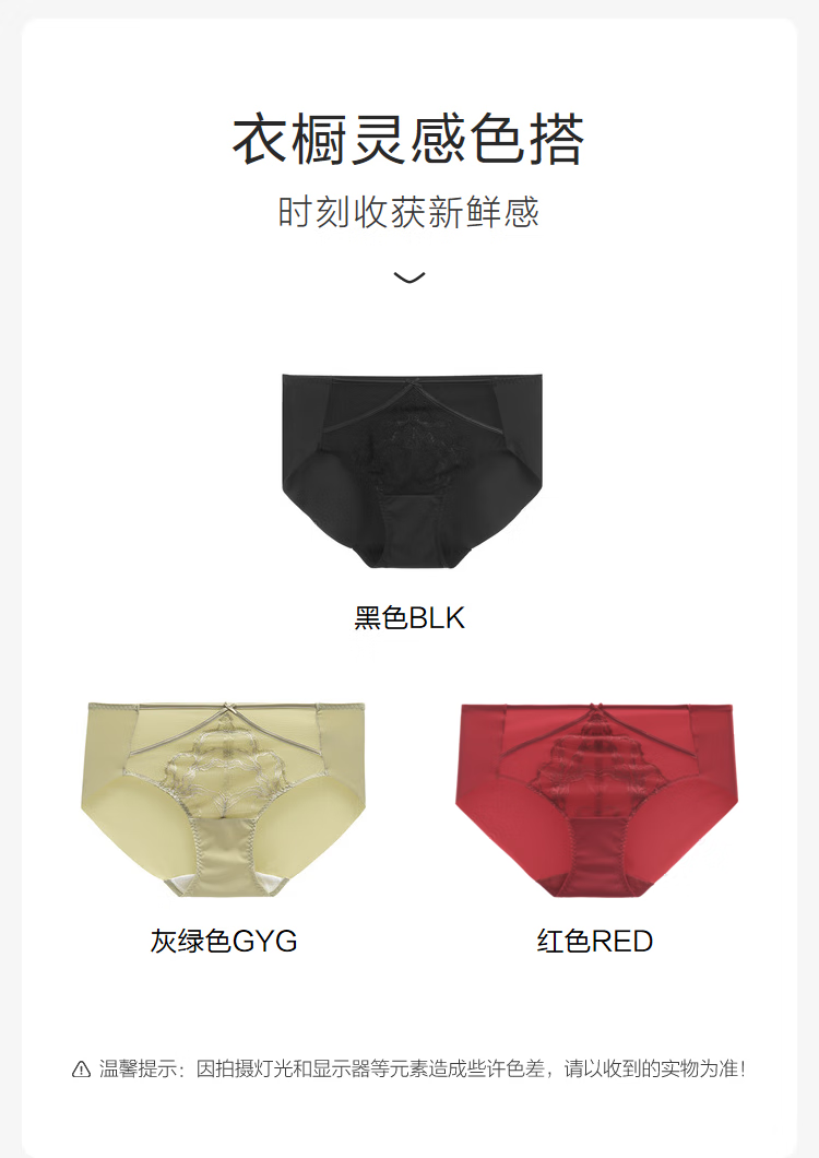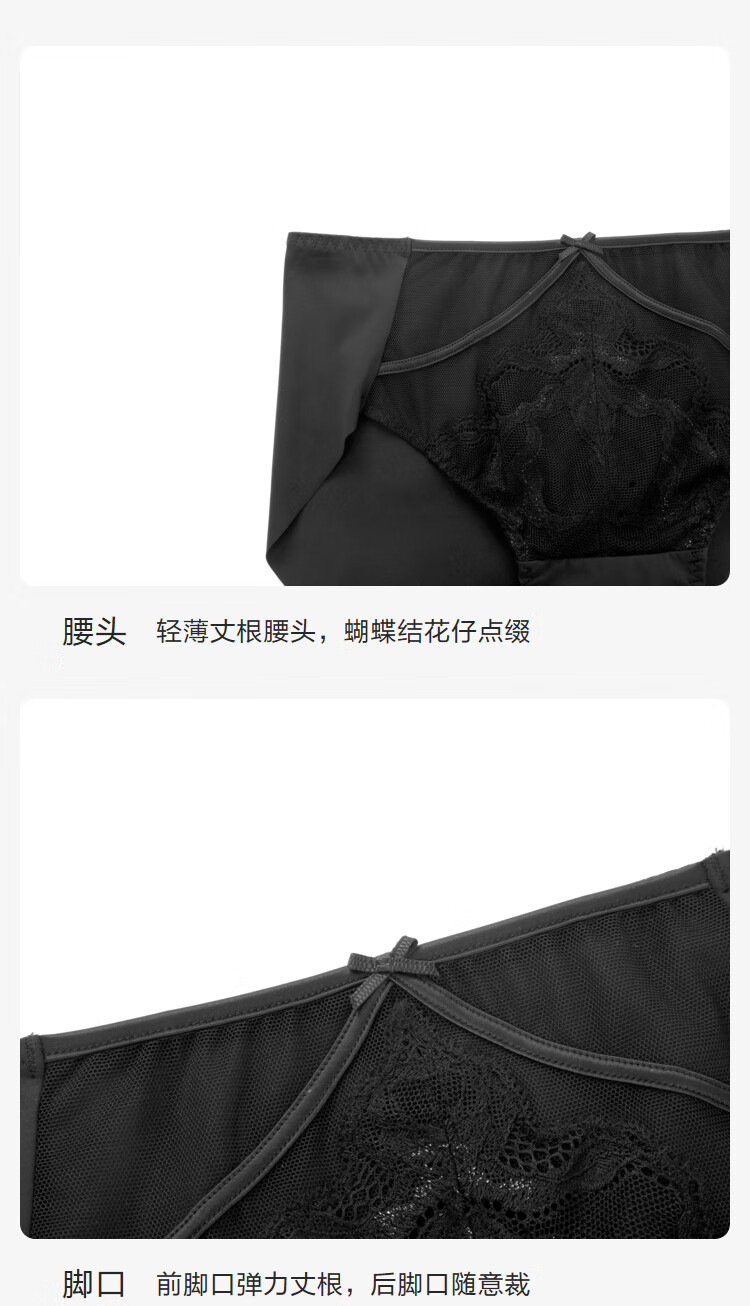 【3F】安莉芳蕾丝网纱拼接中低腰三角裤女薄款内裤E200928
