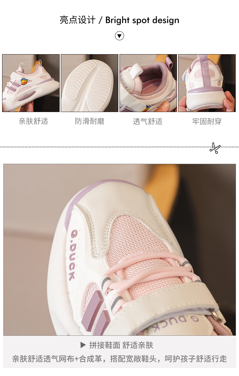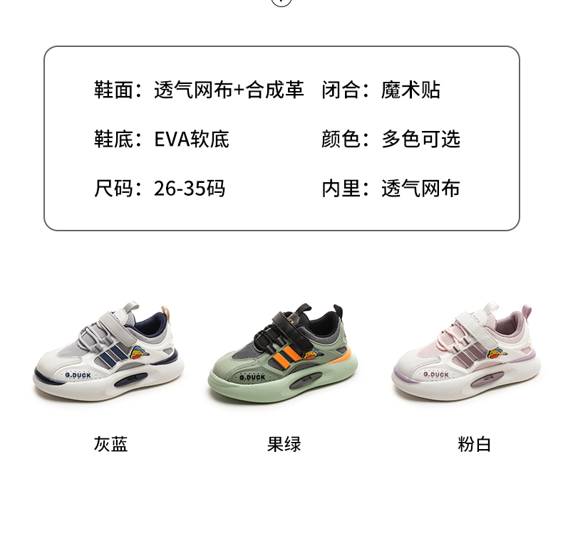 G.DUCK.HAL小黄鸭小黄鸭男童网鞋春秋新款面透气儿童运动鞋软底小童女童休闲鞋QCSM004.25-36