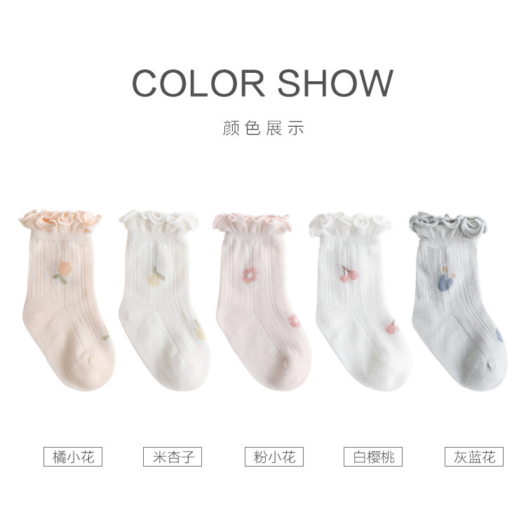 【3双装 小碎花木耳边网眼防蚊袜】新款婴儿袜子夏季薄款网眼新生儿宝宝袜精梳棉碎花超薄女儿童袜