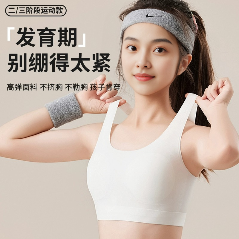 【49.9抢❗️两件任选🔥少女运动内衣背心】适合10-16岁少女,固定杯无痕透气,运动矫姿提拉防驼背,看得见的透气网孔,让身体大口呼吸,青春少女学生运动背心,肩带内衣无钢圈款舒适透气L