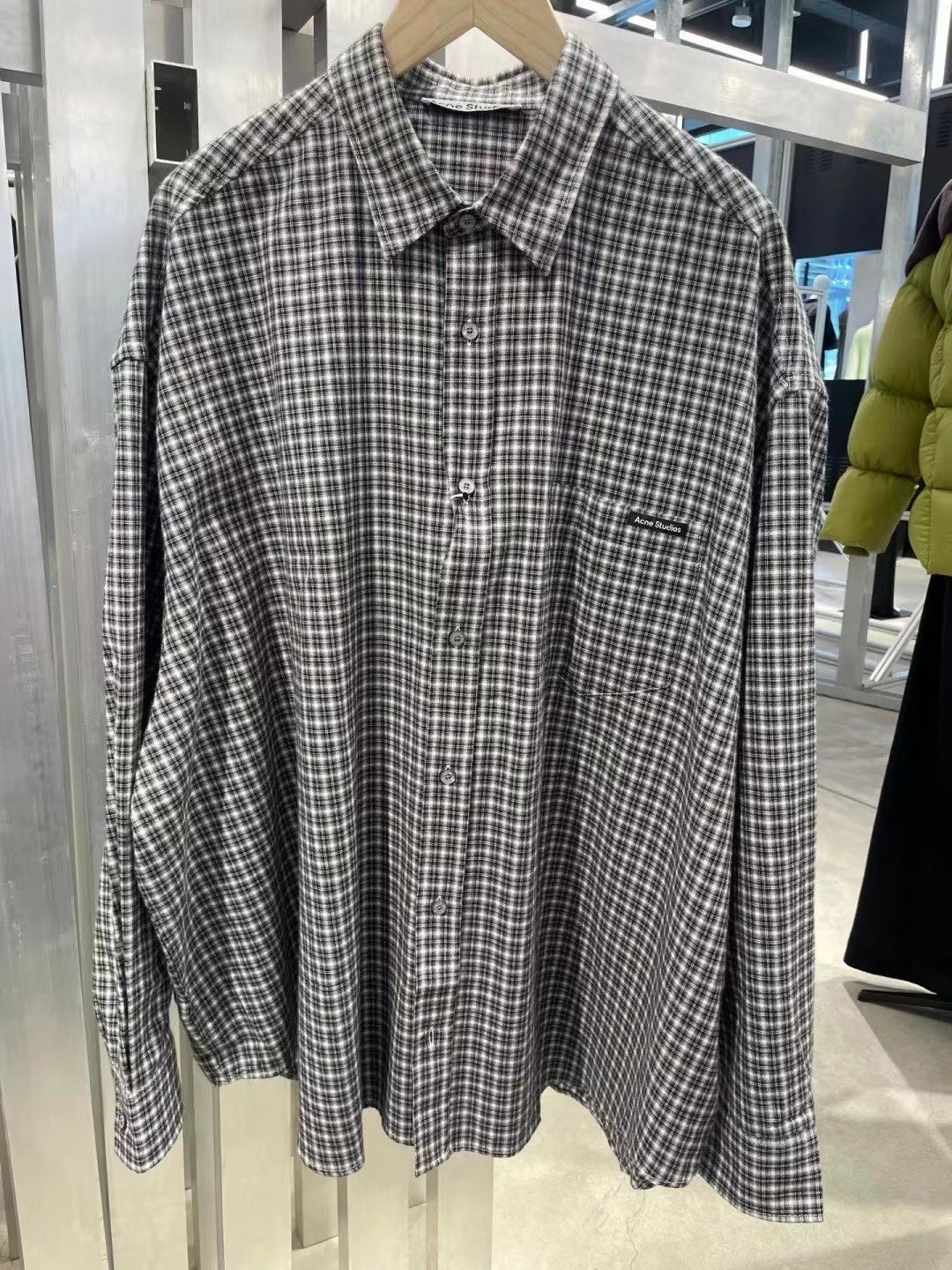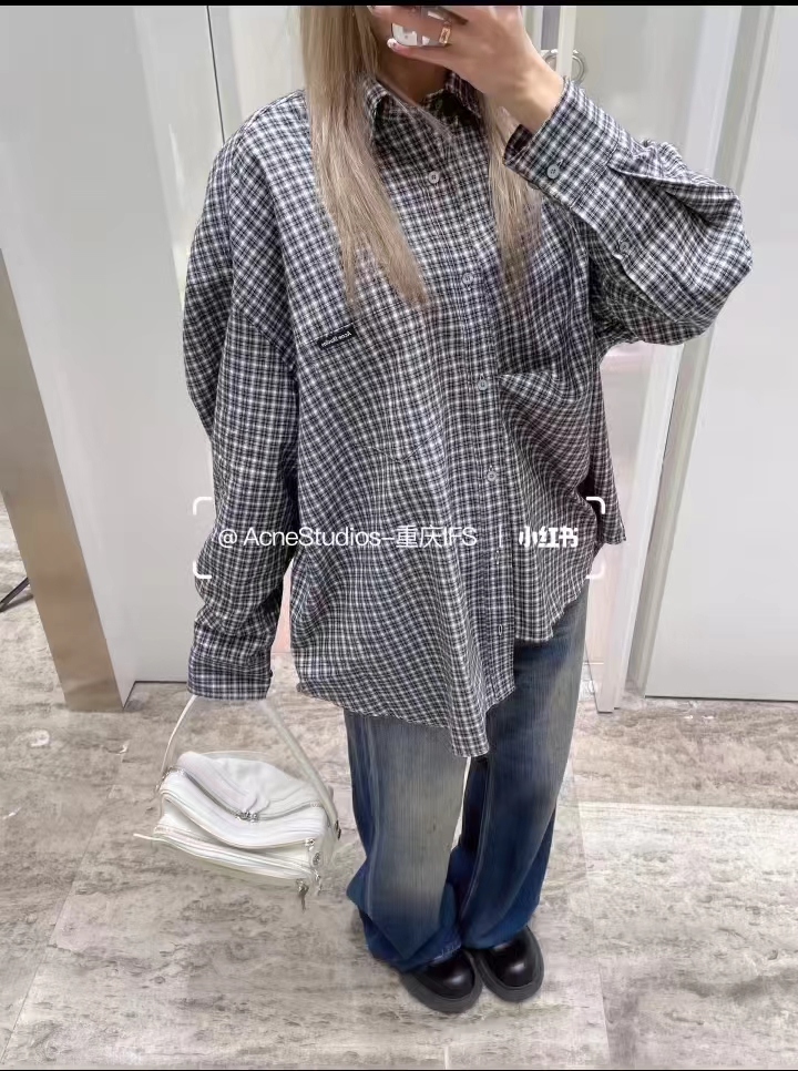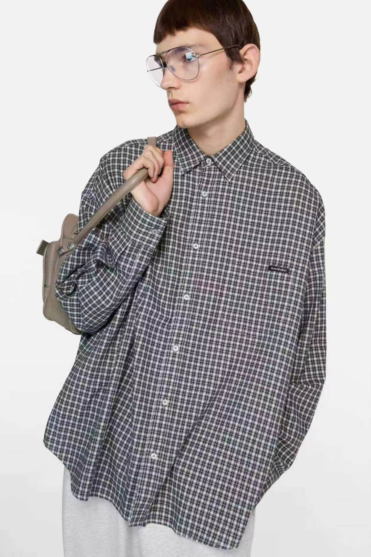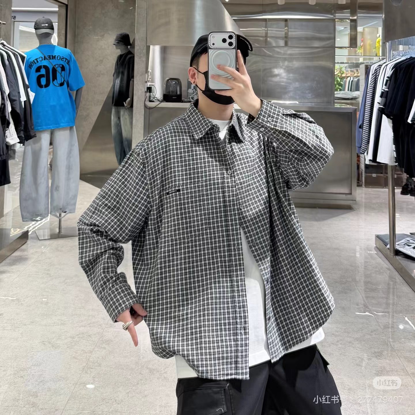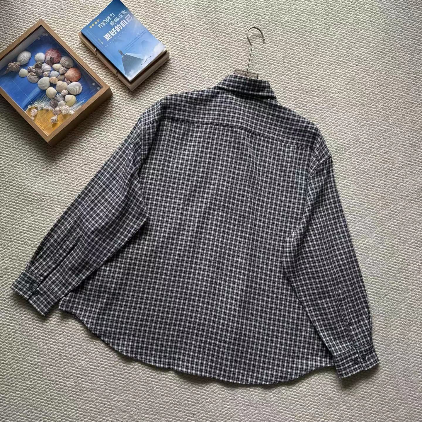 F0331131左胸袋logo徽标韩系慵懒风薄款格子宽松休闲外套长袖衬衫