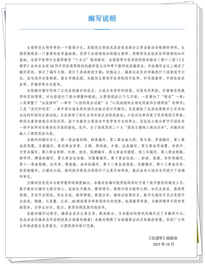 生理学 朱大诚 储利胜 主编 第六版 全国中医药行业高等教育十五五规划教材 第十二版 中国中医药出版社