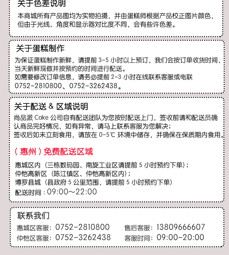 我们坚持当日接单、新鲜现做,拒绝罐头果肉与植物奶油,让每一口都保留食材本真的鲜活清甜。生活需要一点甜,我们的蛋糕不只是一份甜品,更是传递快乐的仪式感,为你带来视觉与味蕾的双重满足~