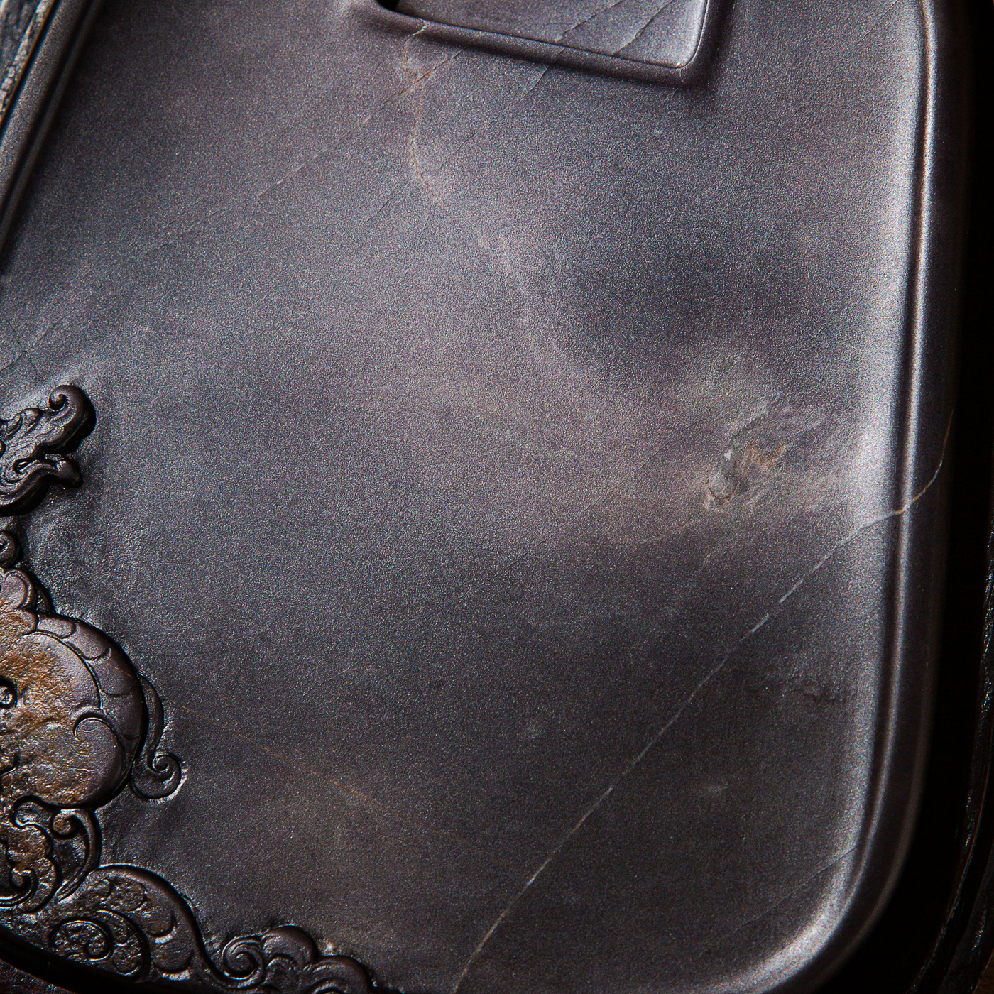 老坑端砚,质地温润,石品精美,雕工巧妙,文人气息浓郁,是案头之佳品。
