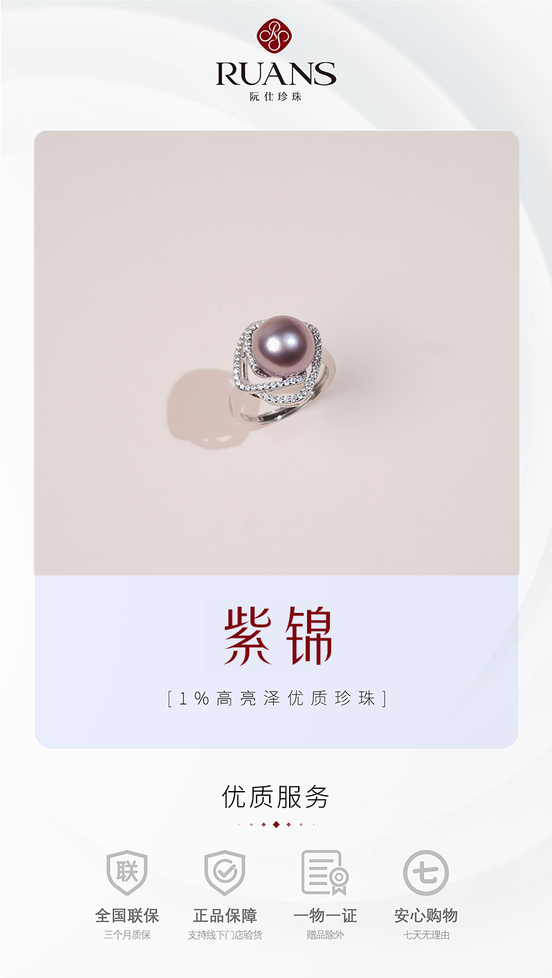 阮仕紫锦系列 S925银淡水珍珠戒指 10-11mm RS0013ZJD