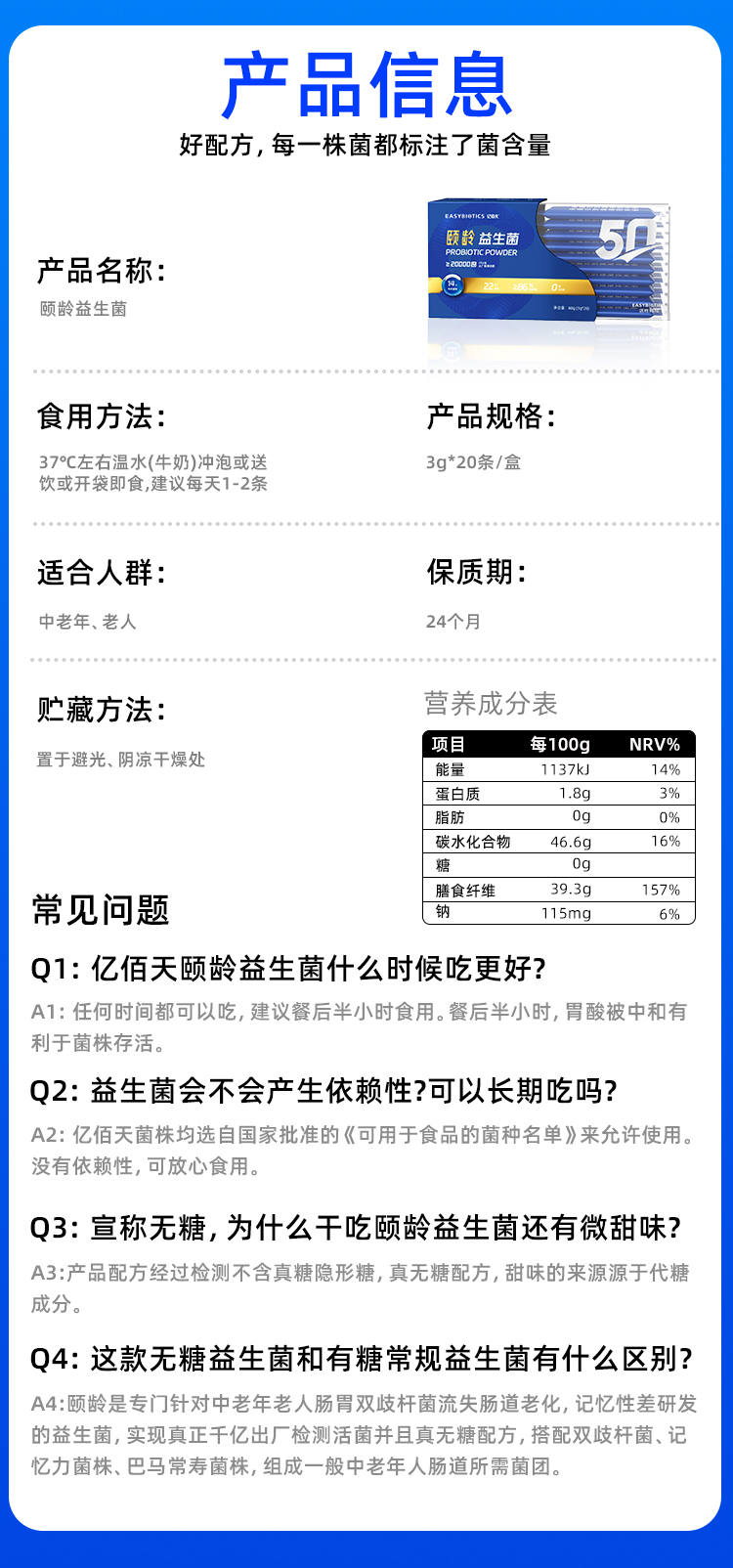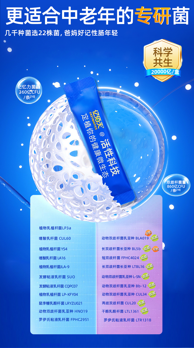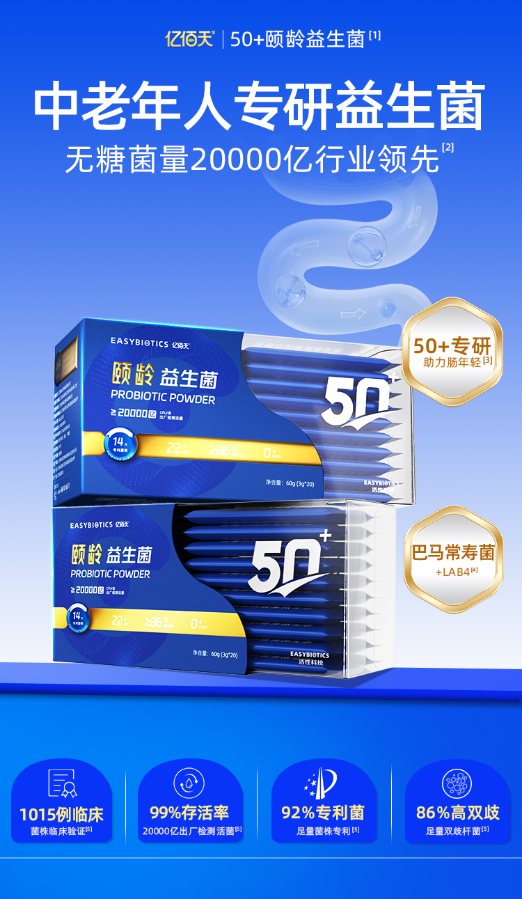 【精选】【小符老师推荐】亿佰天无糖益生菌肠胃道成人中老年老人专研常寿菌