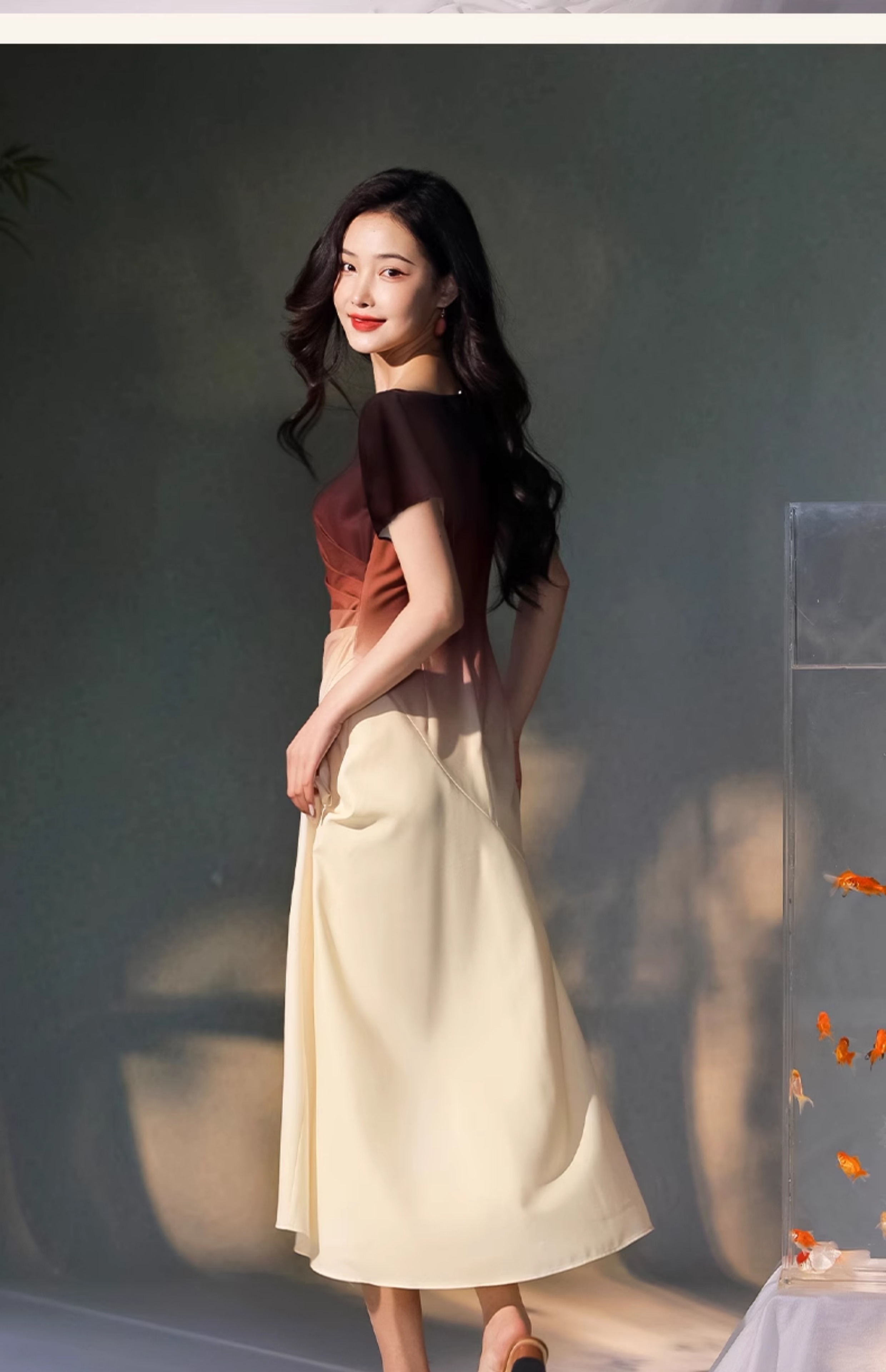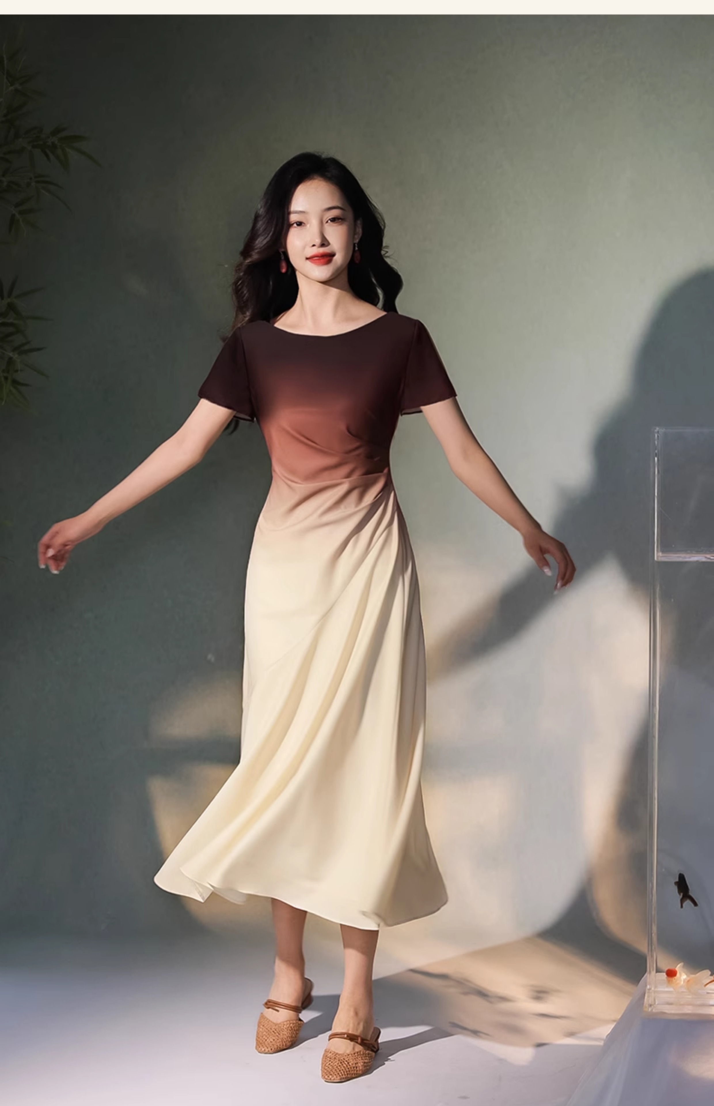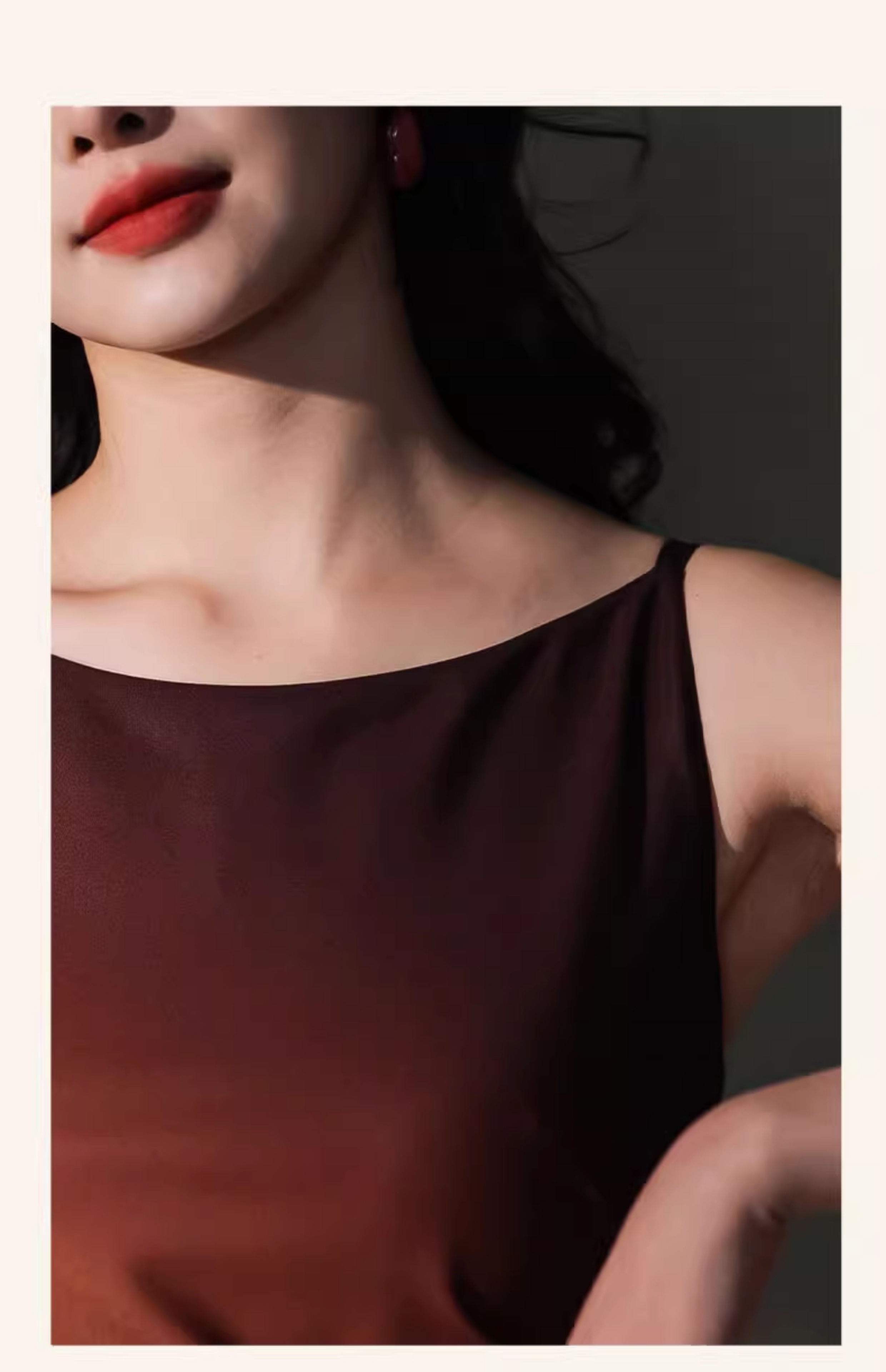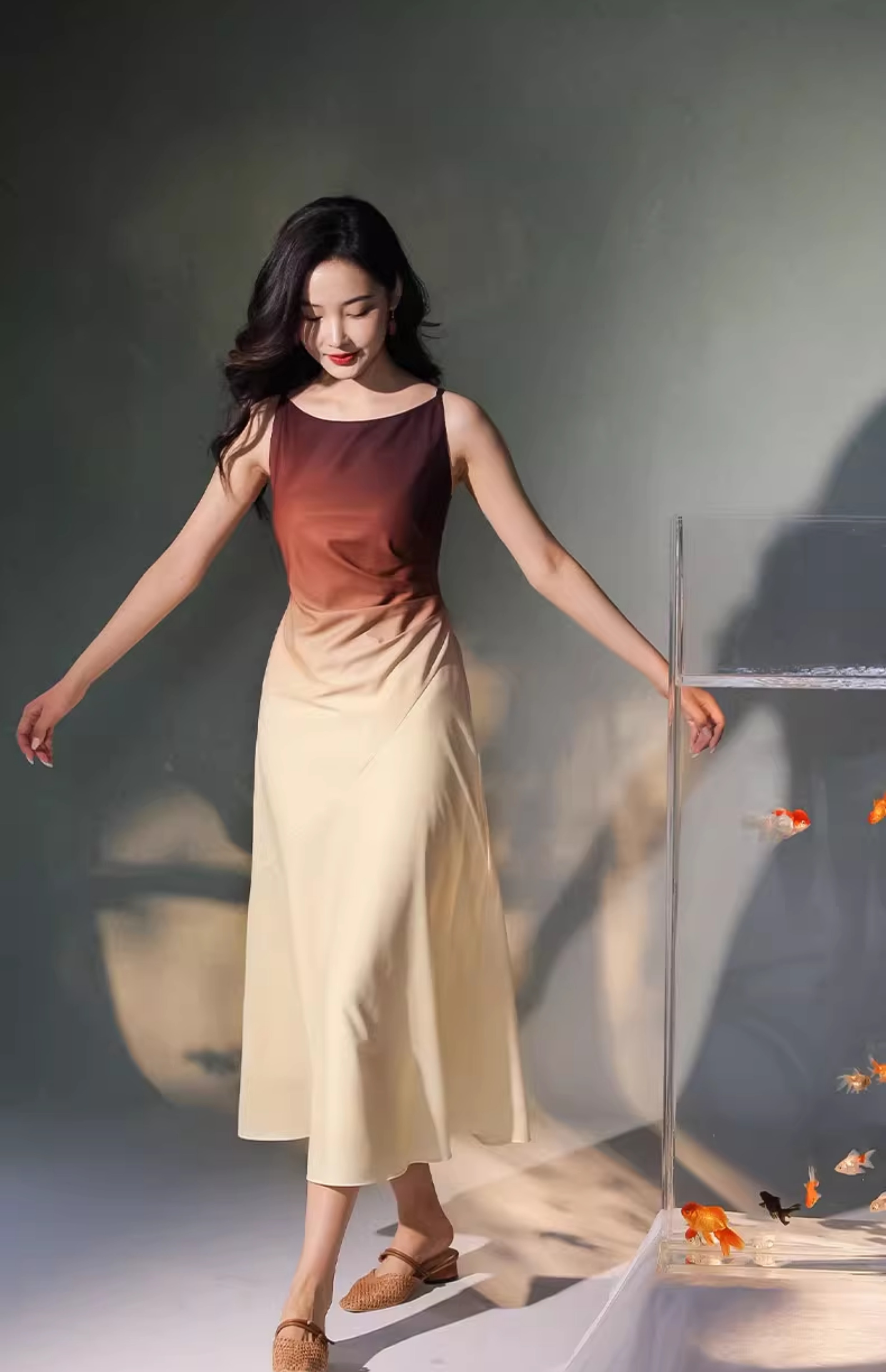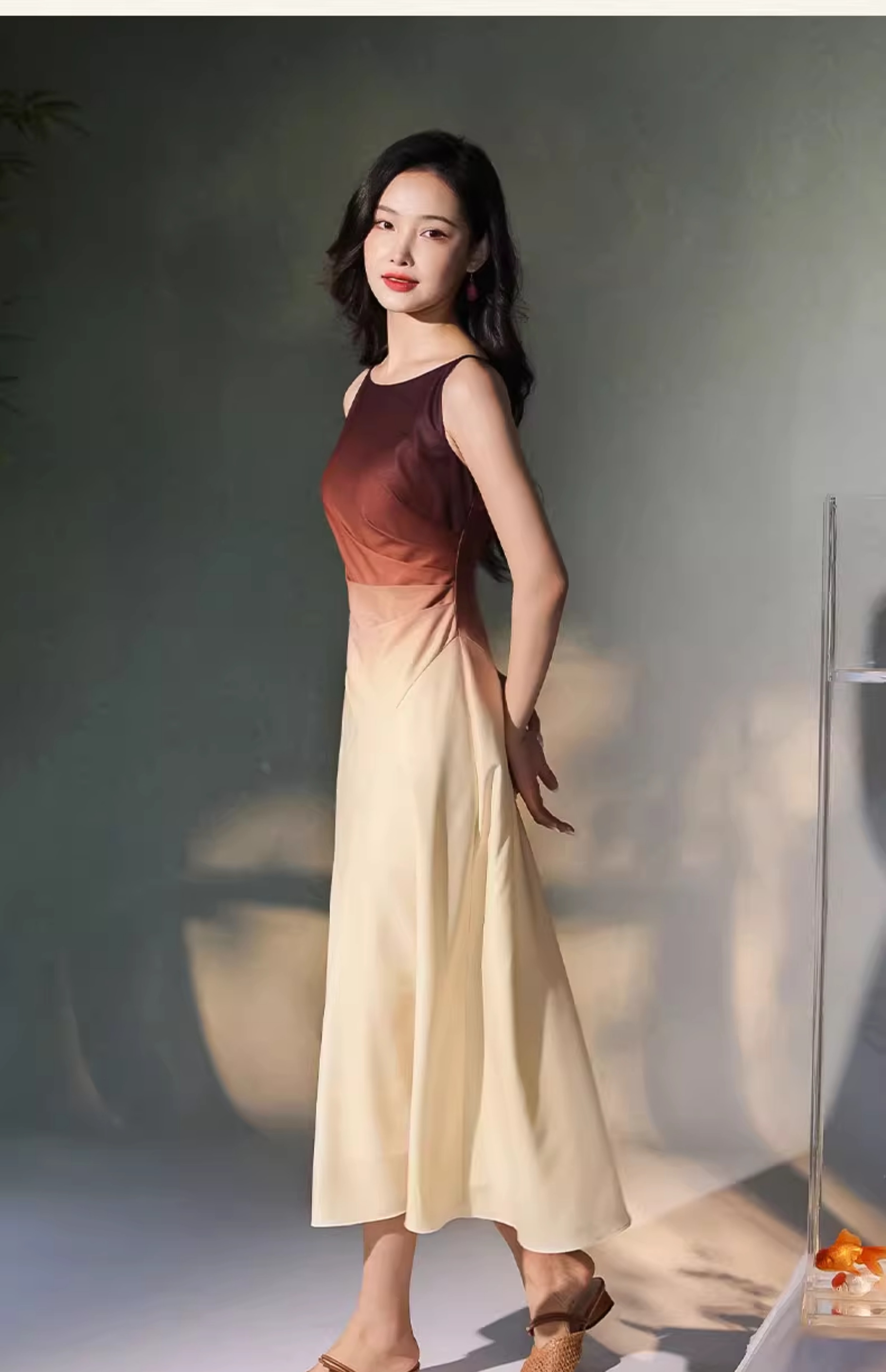 逸红颜流徵2025夏新款天然植物吊染一字领新中式吊带短袖连衣裙女