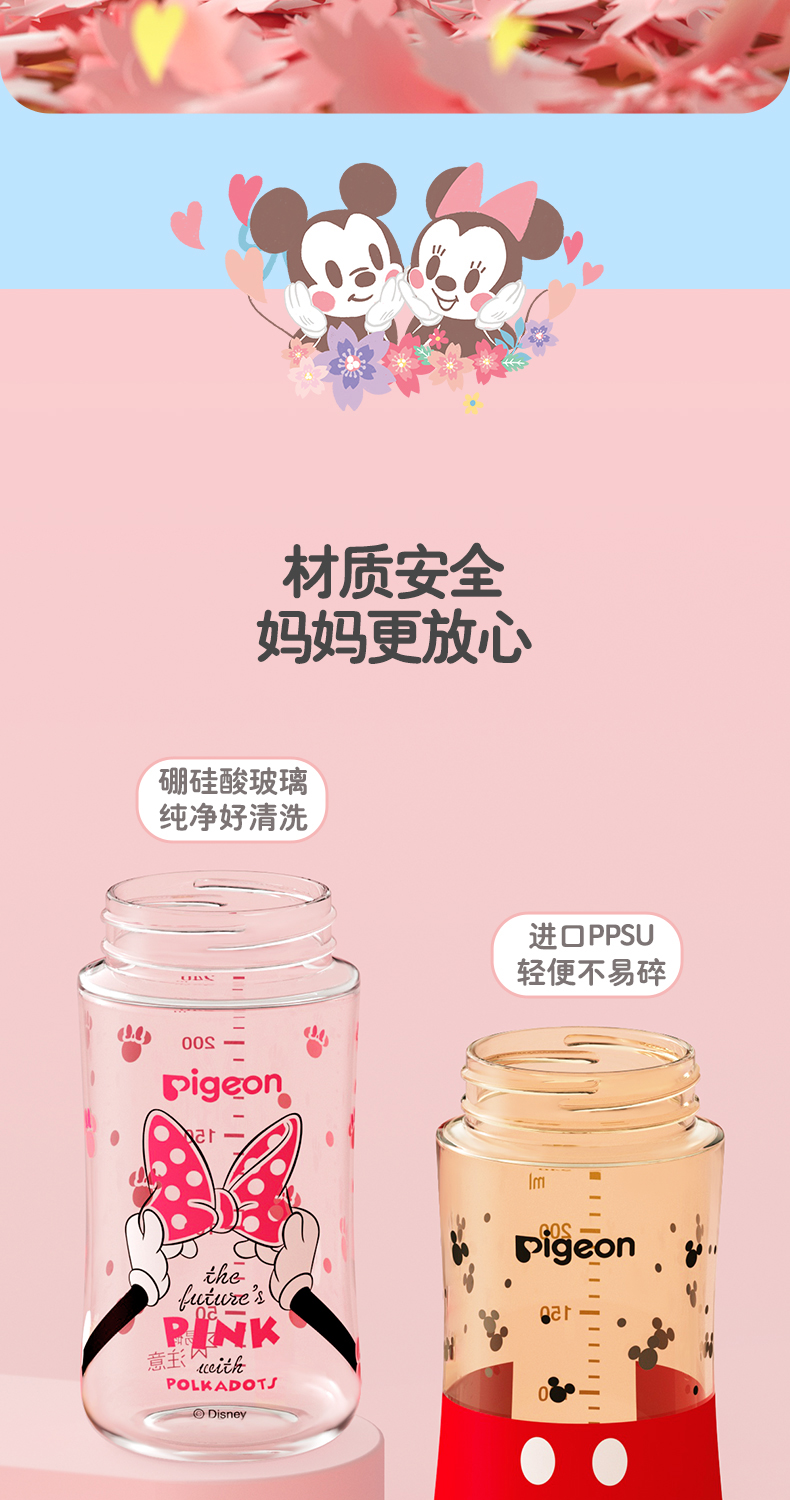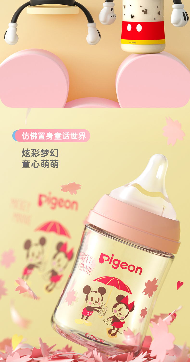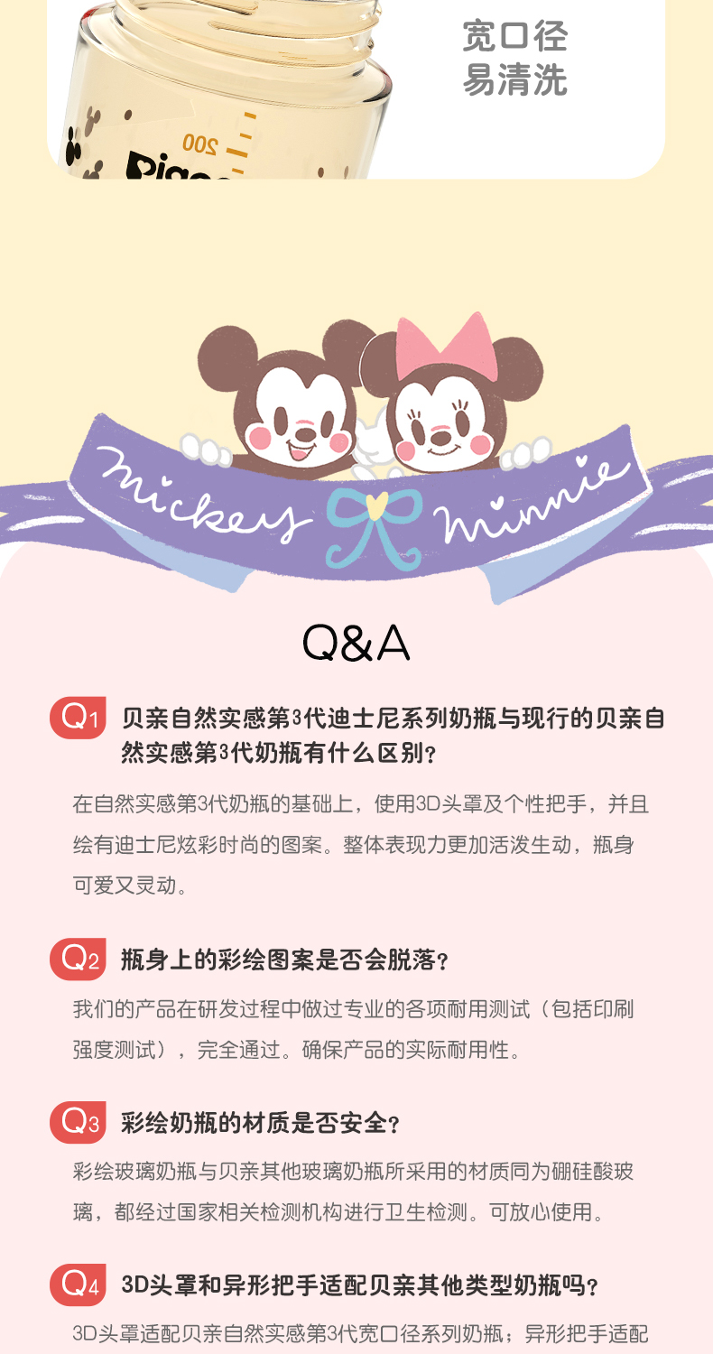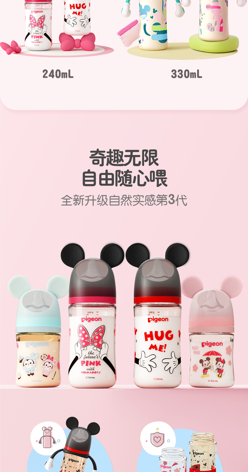 贝亲迪士尼自然实感Ⅲ宽口径PPSU彩绘奶瓶330ml(带LL号奶嘴)米奇印象/米妮印象