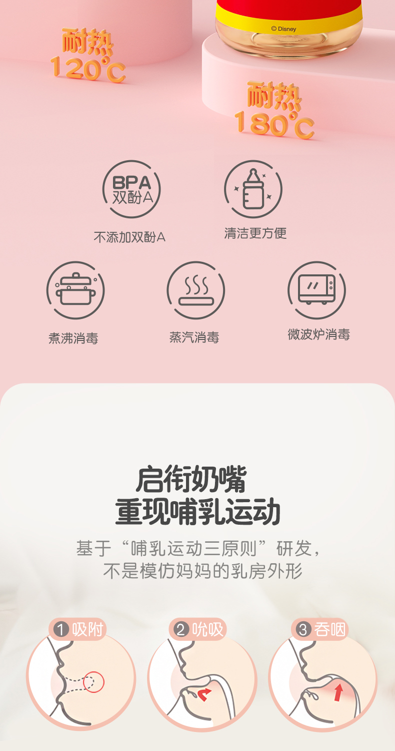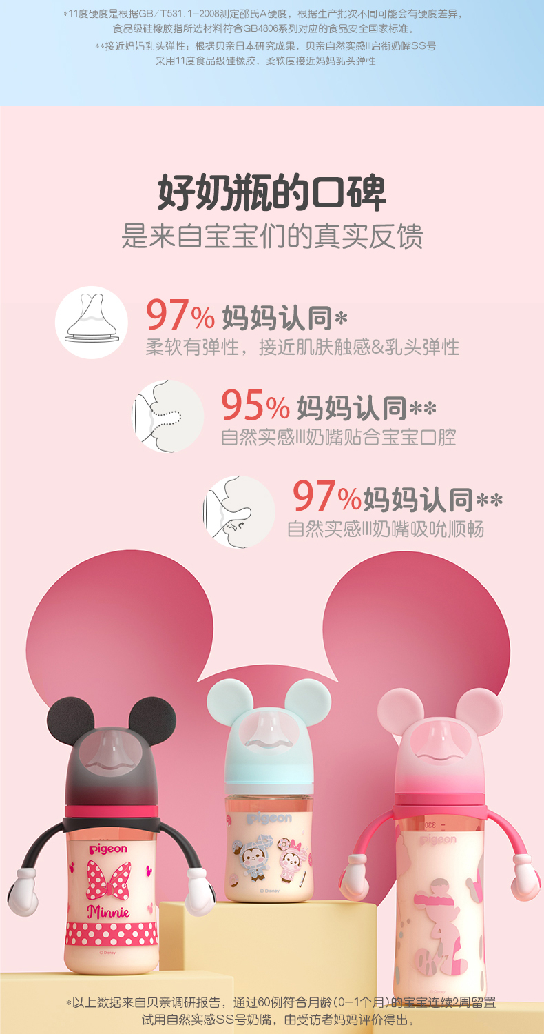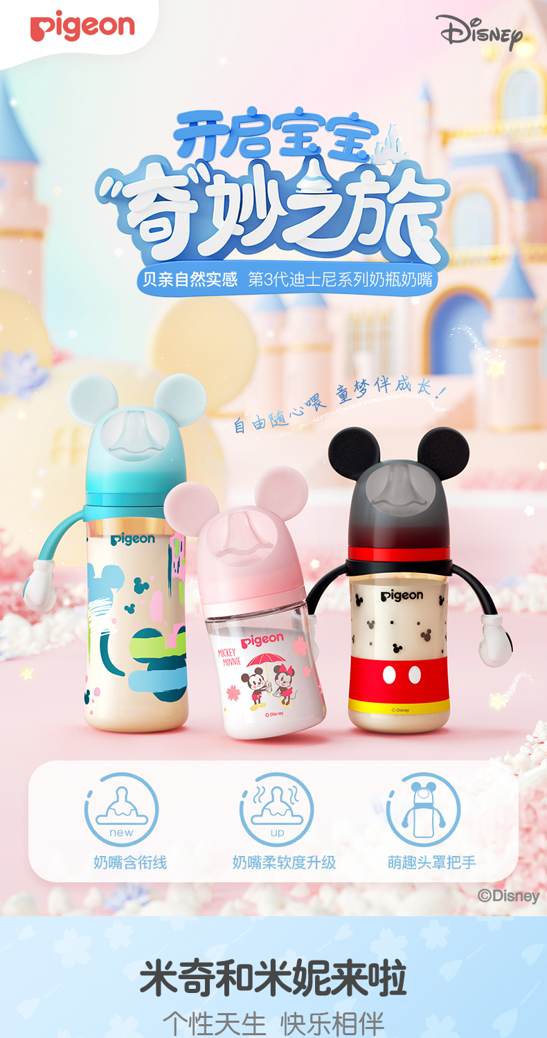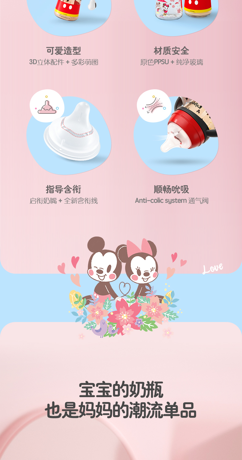 贝亲迪士尼自然实感Ⅲ宽口径PPSU彩绘奶瓶330ml(带LL号奶嘴)米奇印象/米妮印象