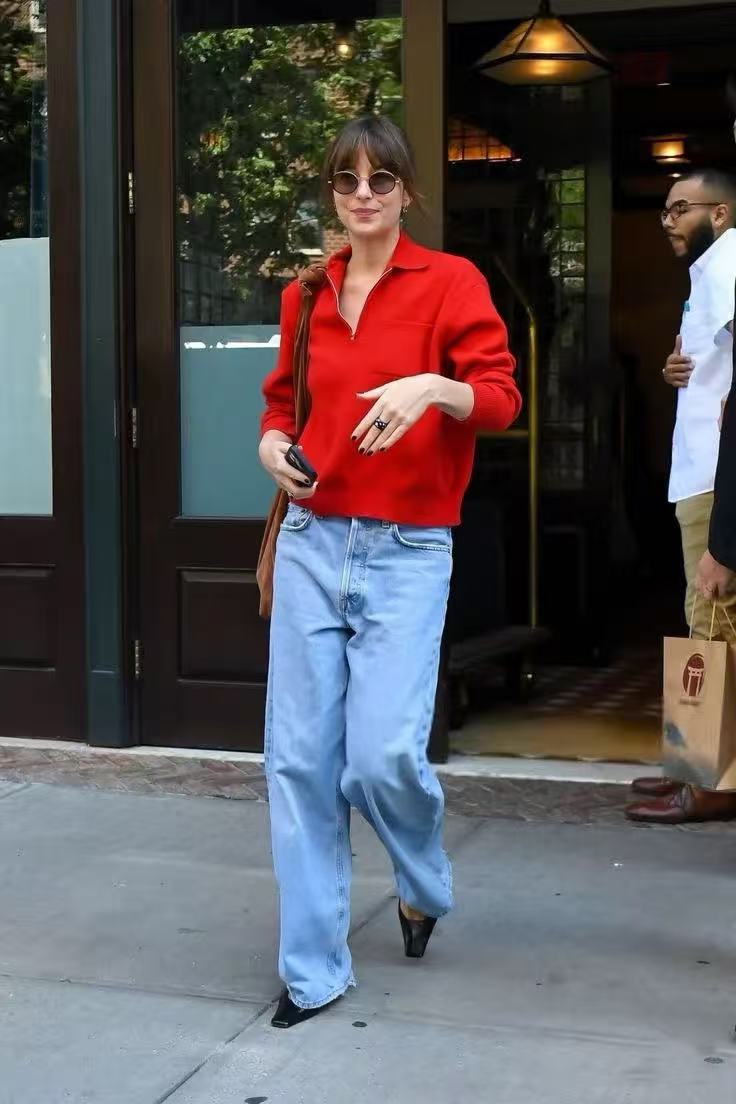 超美的新年红羊绒衫,达妹、肯豆同款,经典再现,和牛仔裤一套穿搭毫不费力老钱风。
