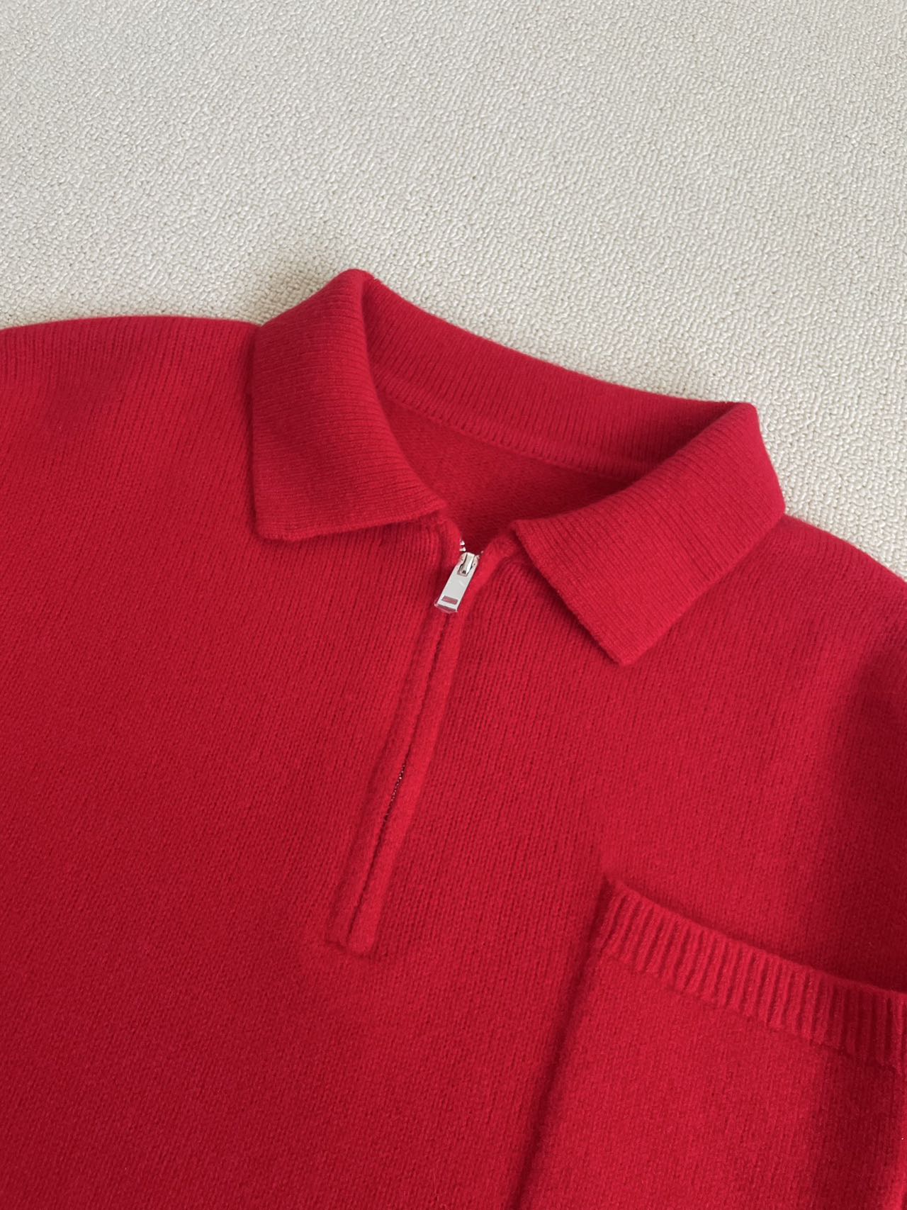 新年最美的一抹红,the row纯羊绒红色polo 毛衣,纯元❗️