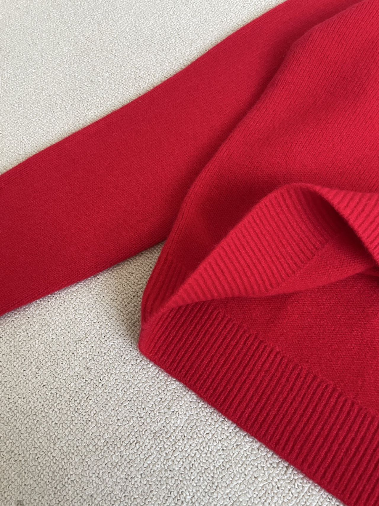100%羊绒,纱线🧶意大利进口双股26支高克重山羊绒,整身采用四平针工艺,针织细腻,织面平滑扎实,这种Baby小山羊绒细绒毛绵软治愈,柔软细腻,亲肤不扎。