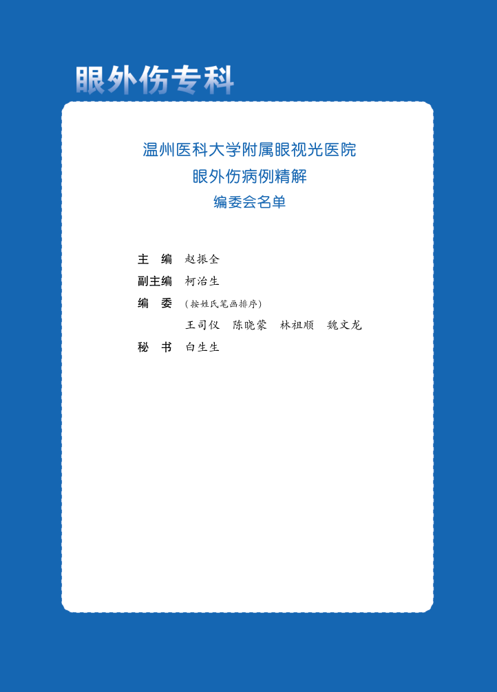 温州医科大学附属眼视光医院 眼外伤 病例精解 赵振全主编