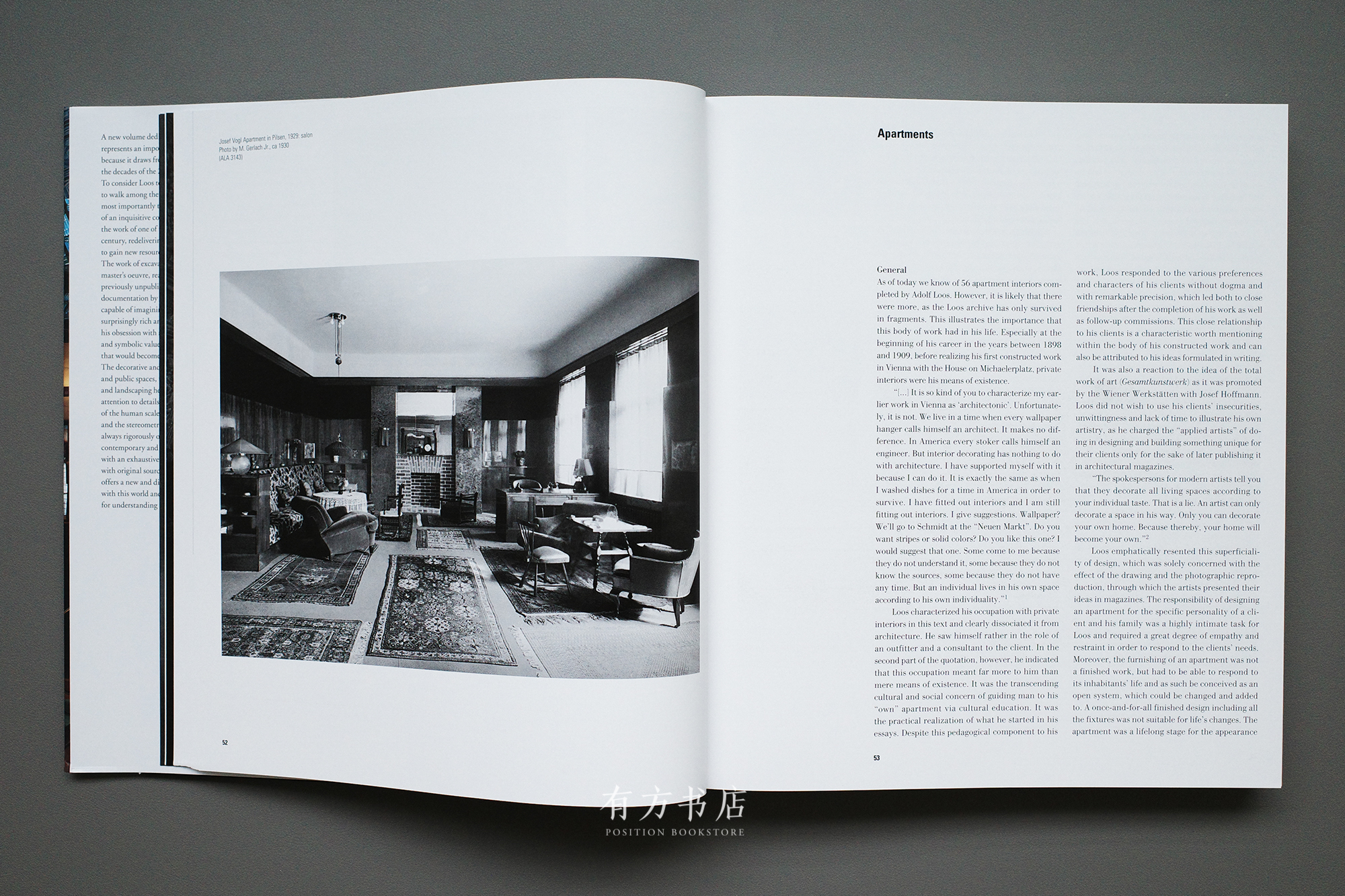 在这本权威专著中,同样身为建筑师的作者拉尔夫·博克(Ralf Bock)试图揭示路斯室内设计的感性,专注于他对传统演变的真诚信仰。