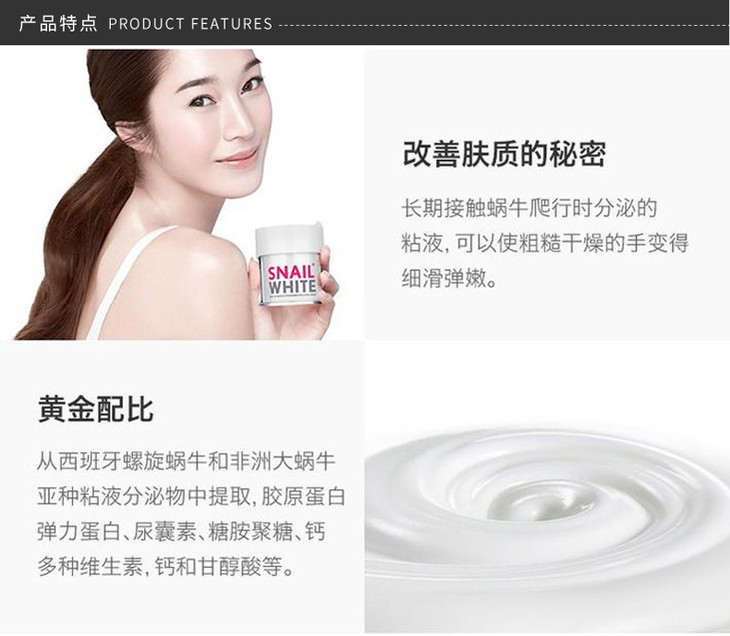 〖中国游客必买〗泰国snail white白蜗牛霜蜗牛原液修护面霜50ml 超保湿嫩肤补水祛斑