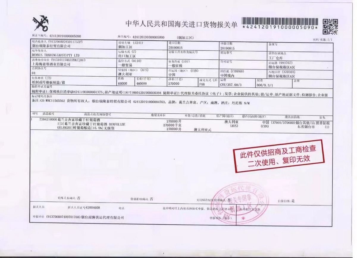 .澳洲进口葛兰吉浮雕 款!!! 407 一箱6瓶配三个手提红酒
