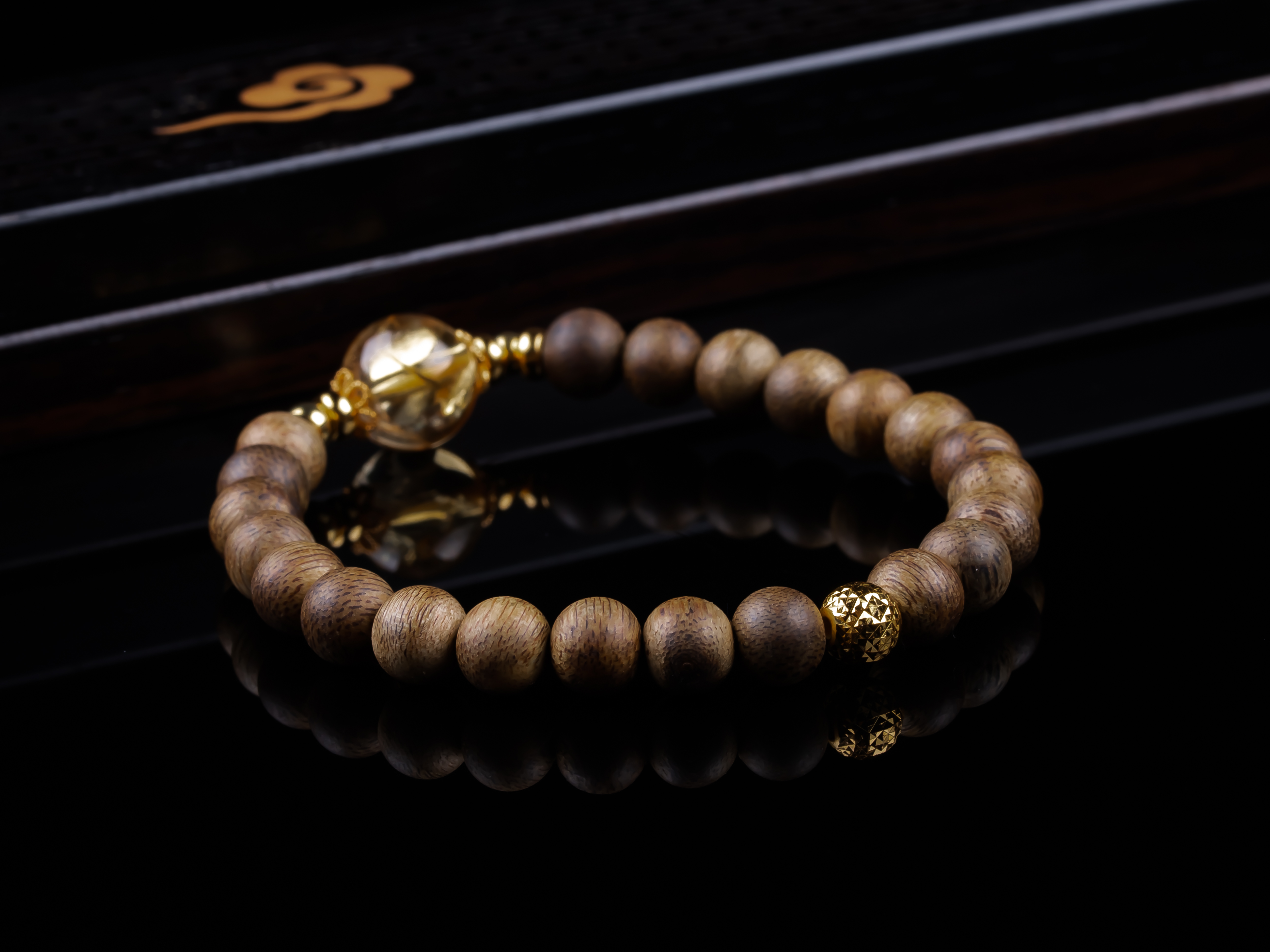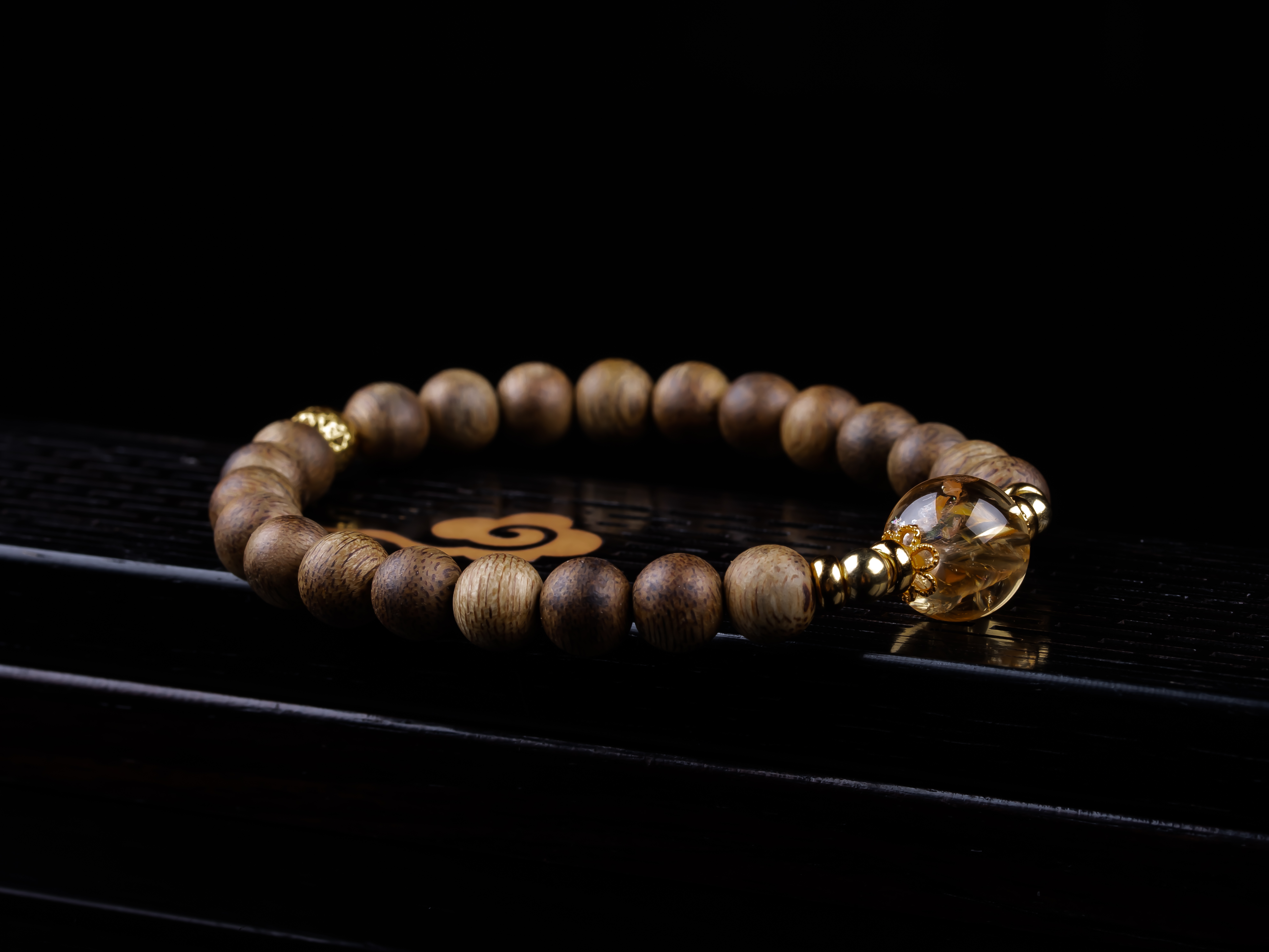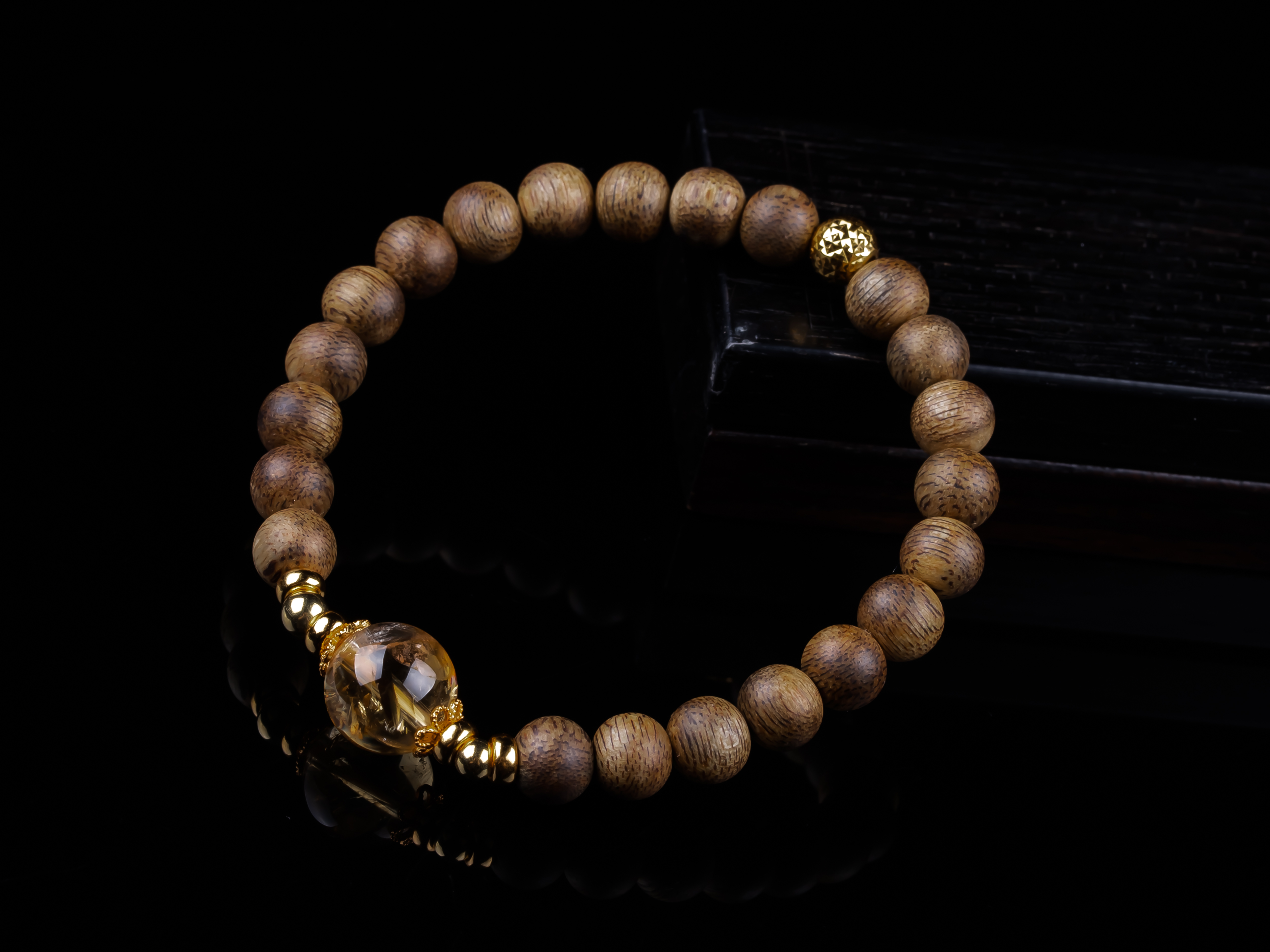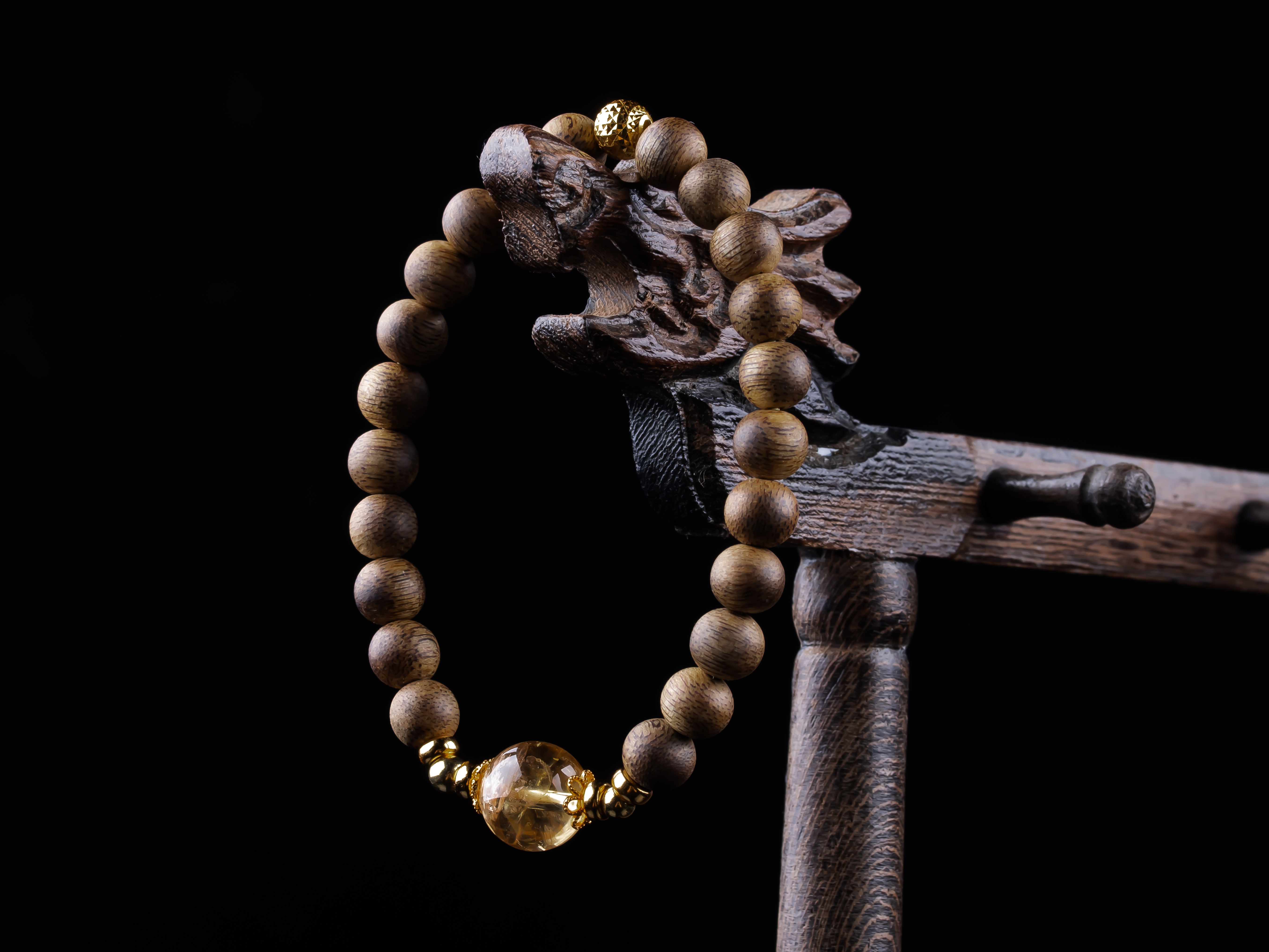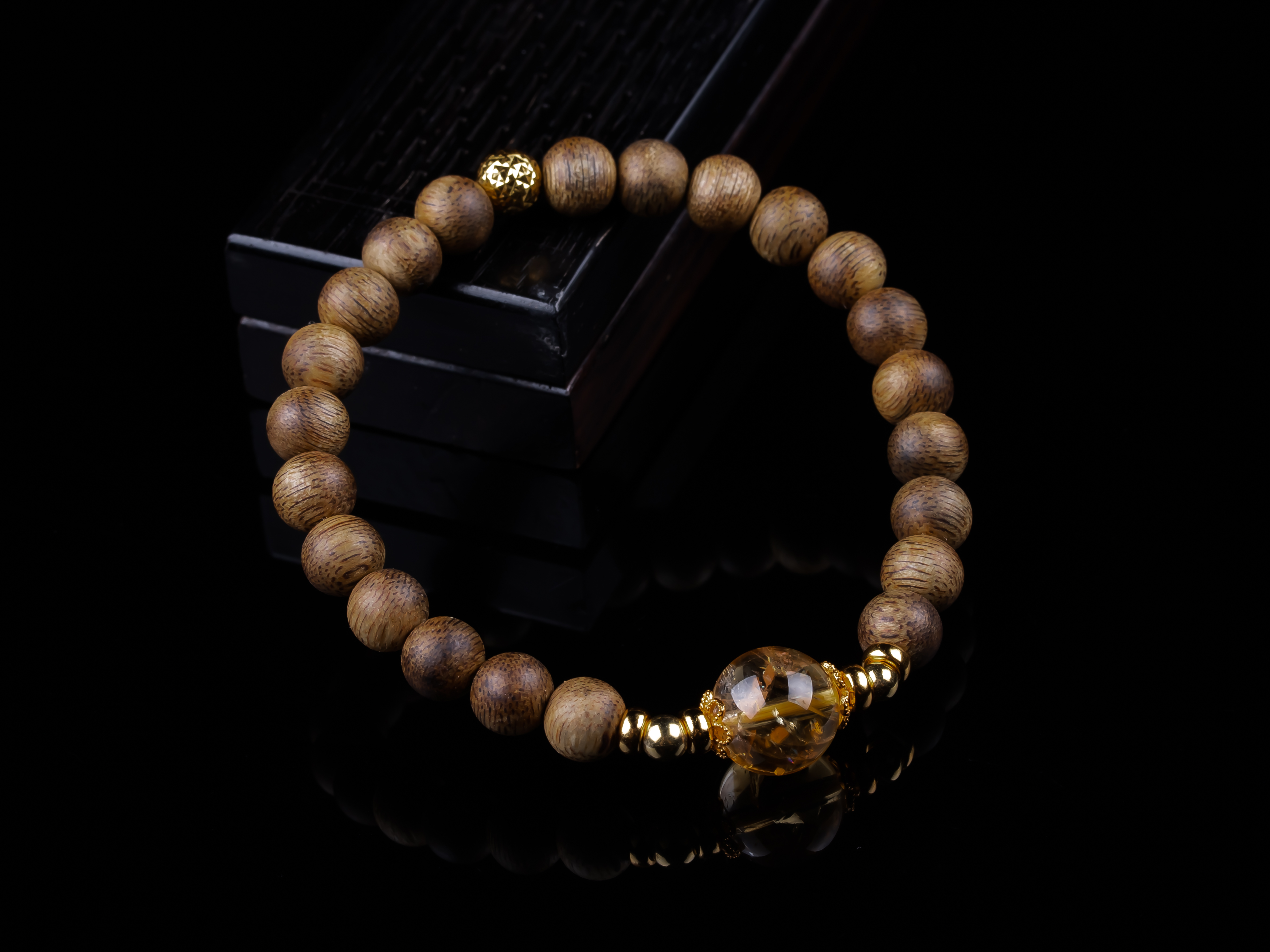 XY0176沉香+黄水晶单圈手串,天然沉香,原色原味,香味自然清甜,一颗黄水晶+925银配饰,黄水晶聚财旺财,能量强大,有助于增强自己的运势与四周能量场。