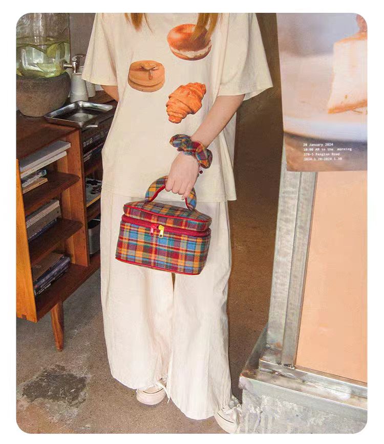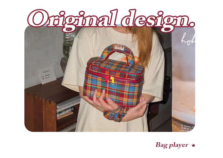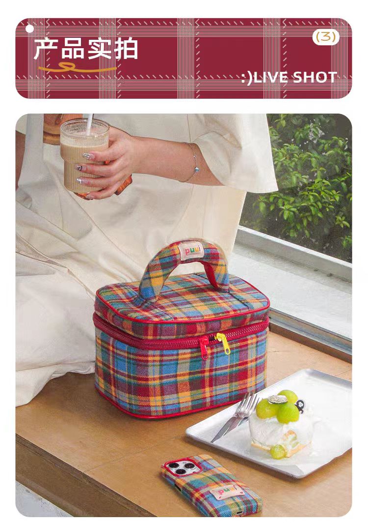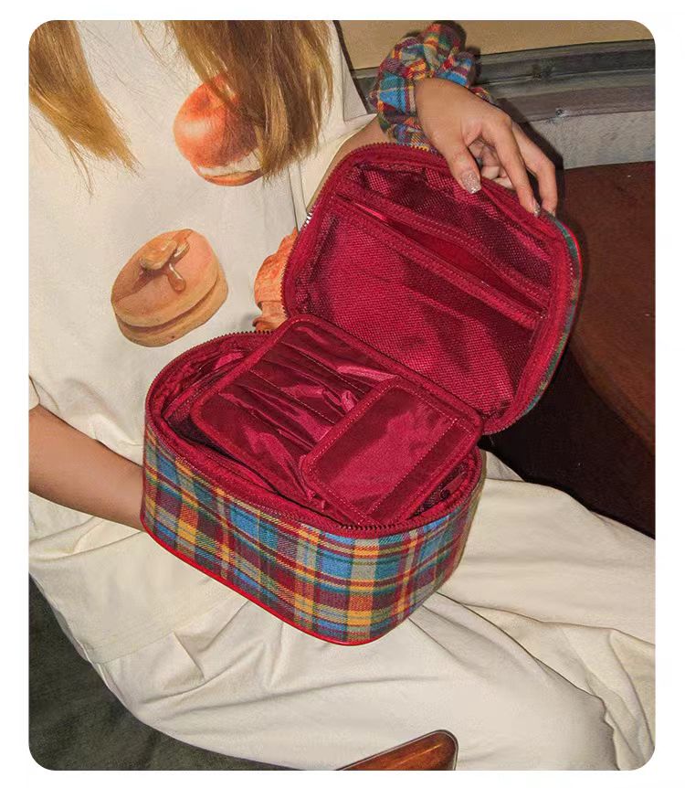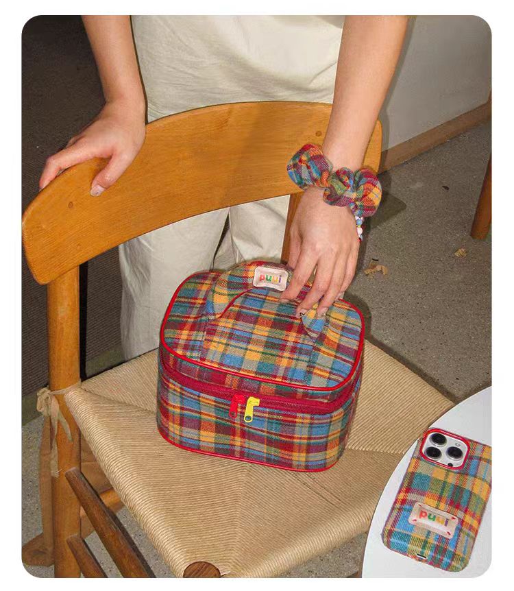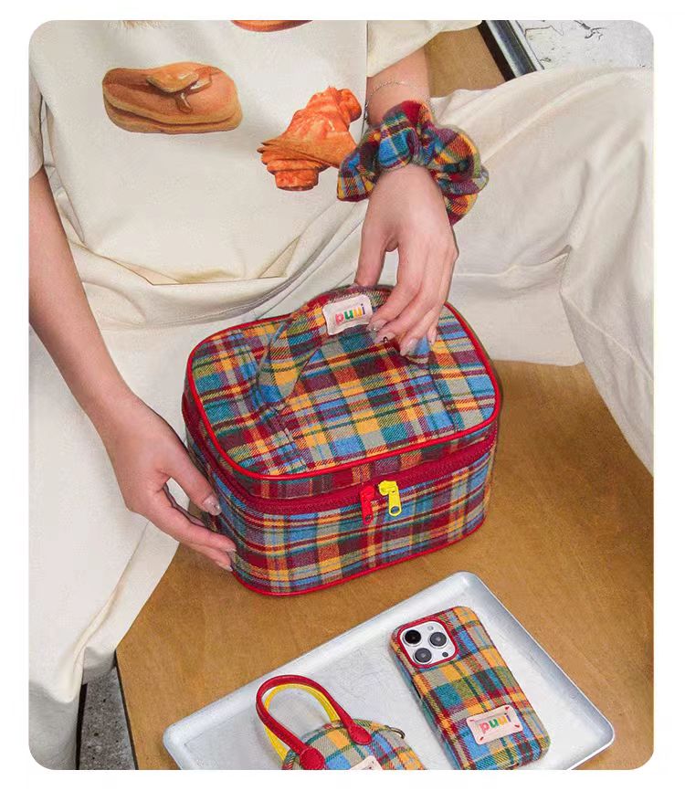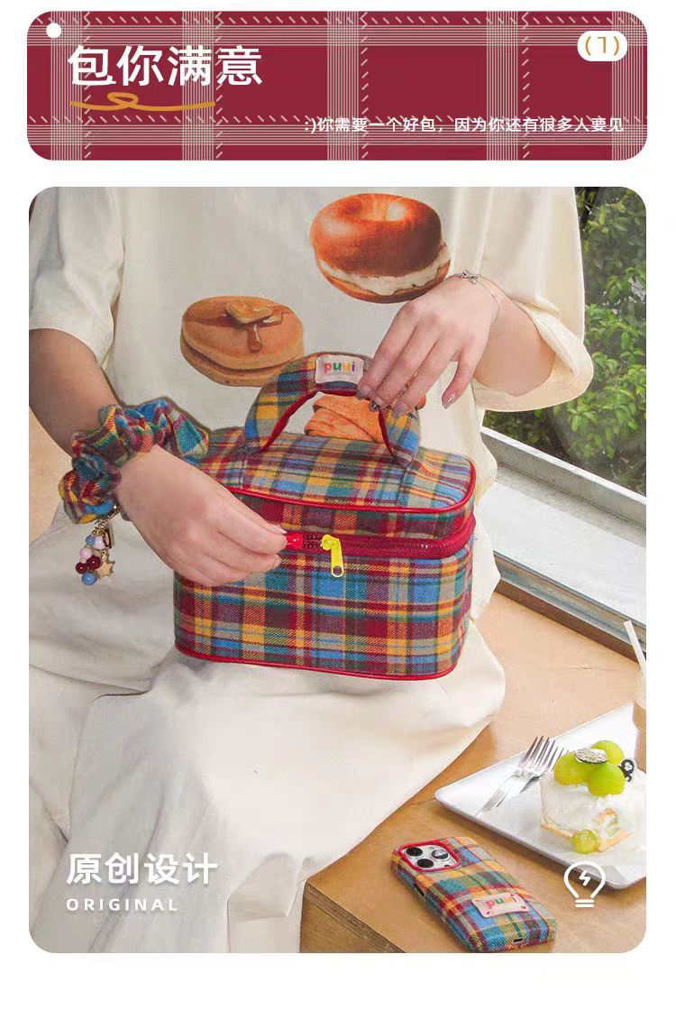 4楼Eubelle欧蓓 puui原创化妆包便携式大容量 复古格纹 高级感旅行洗漱包 活动价:199元