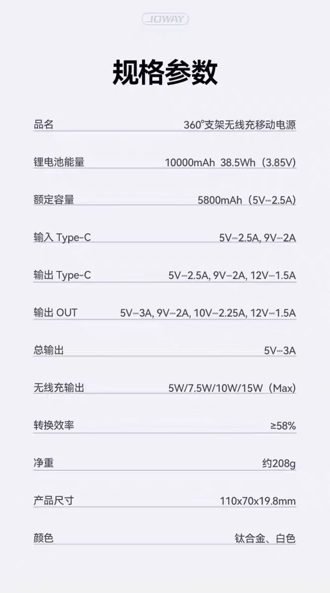 【春上新】10楼 乔威 磁吸充电宝JP516 3C认证可上飞机 吊牌价319 活动价229
