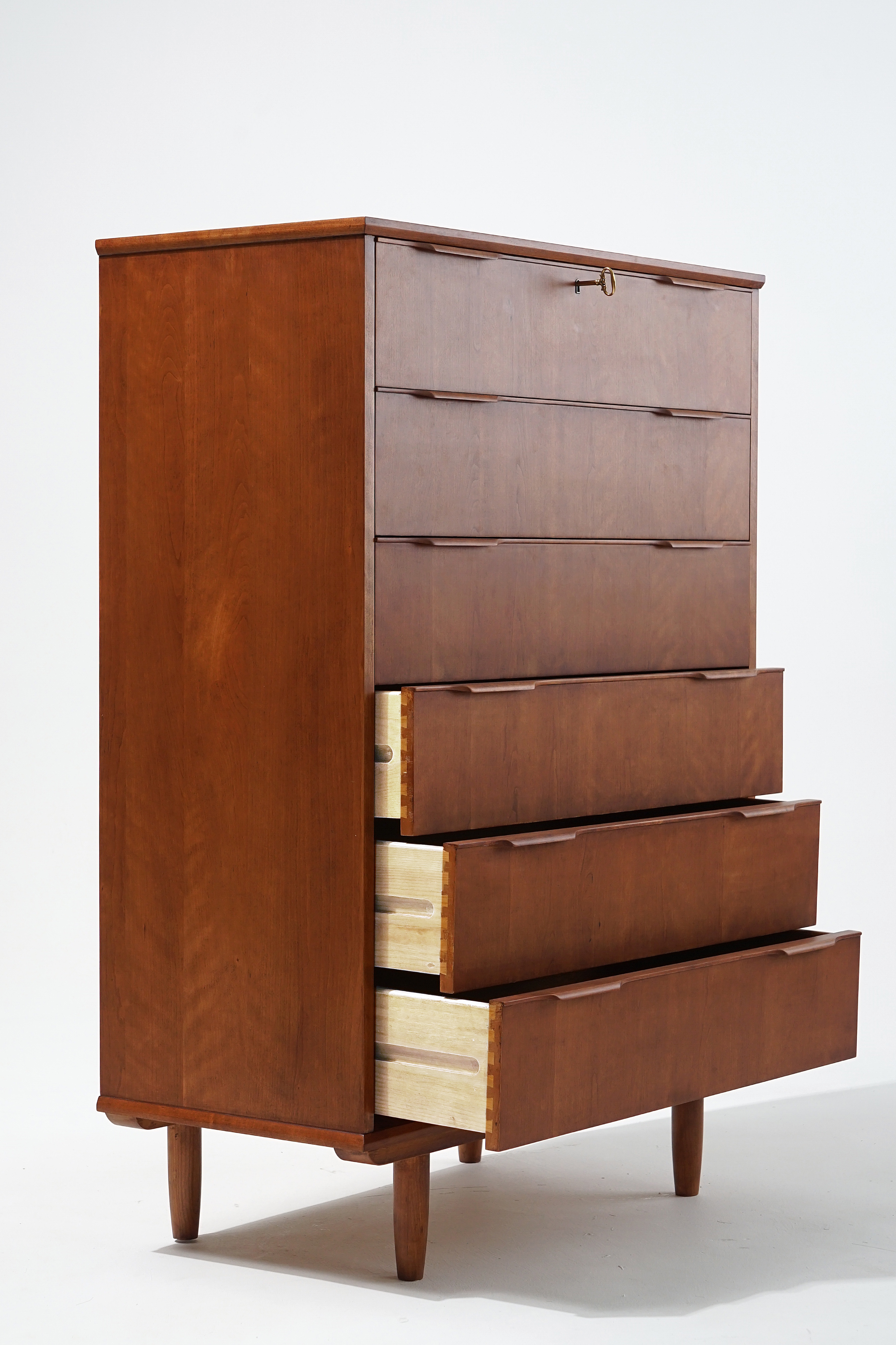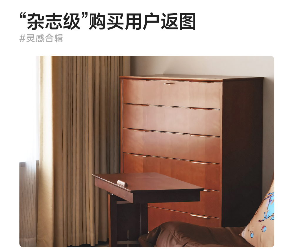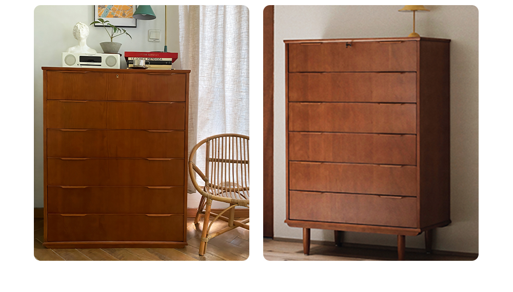 这款六斗橱的美,在于各个部分的比例,也在于每个抽屉的把手弧度和使用的便利性。