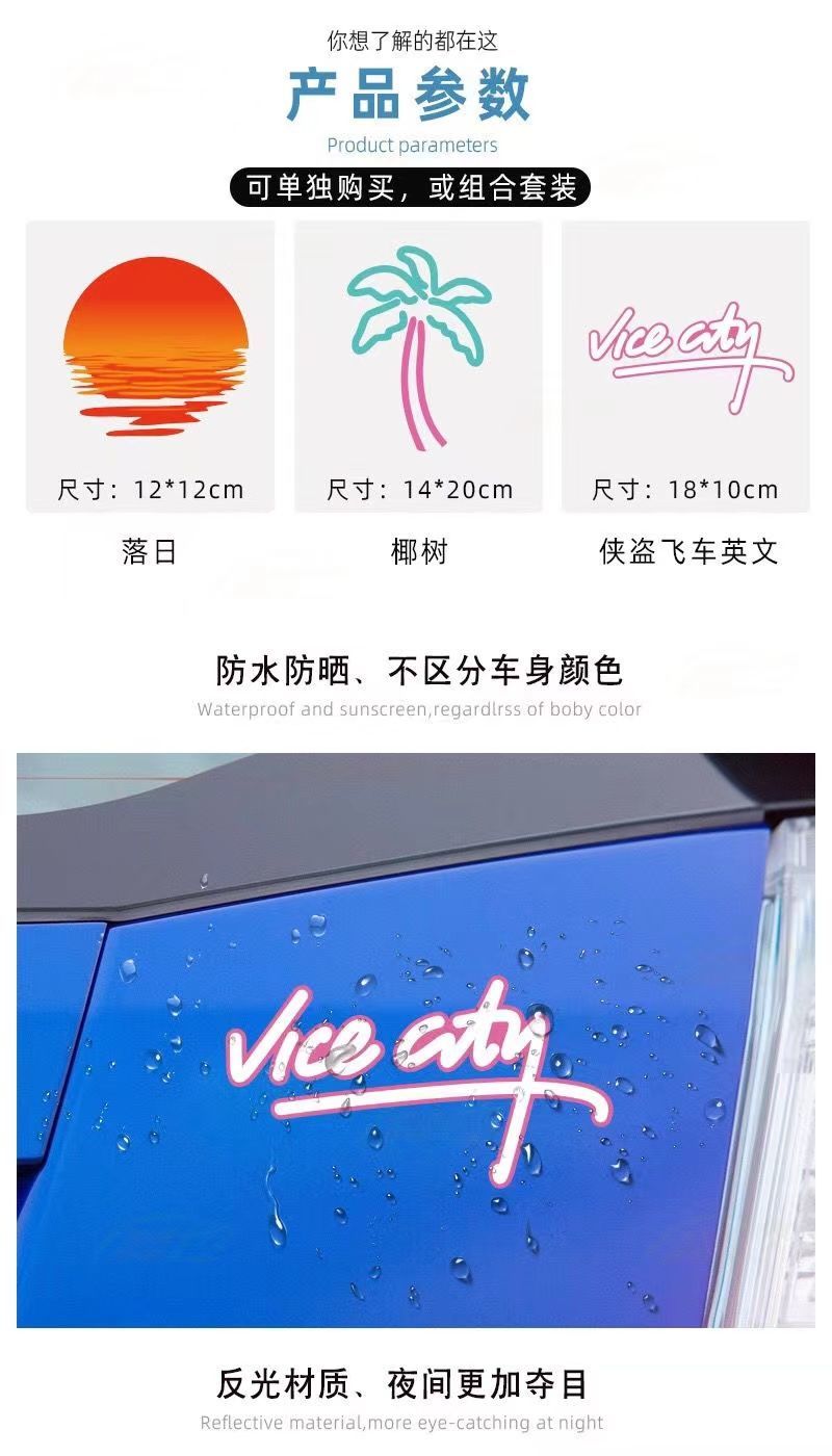汽车贴纸复古风落日余晖夕阳车窗玻璃防水防晒反光电动车摩托车贴