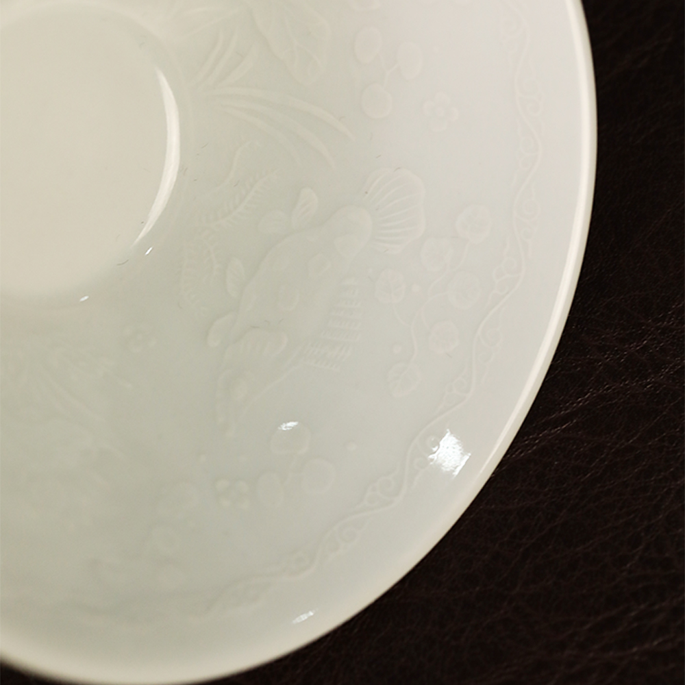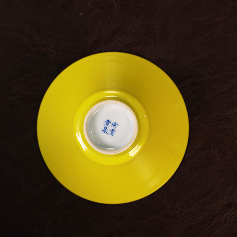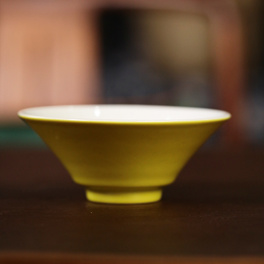 倚云煮泉内模印柠檬黄斗笠杯-鱼藻纹