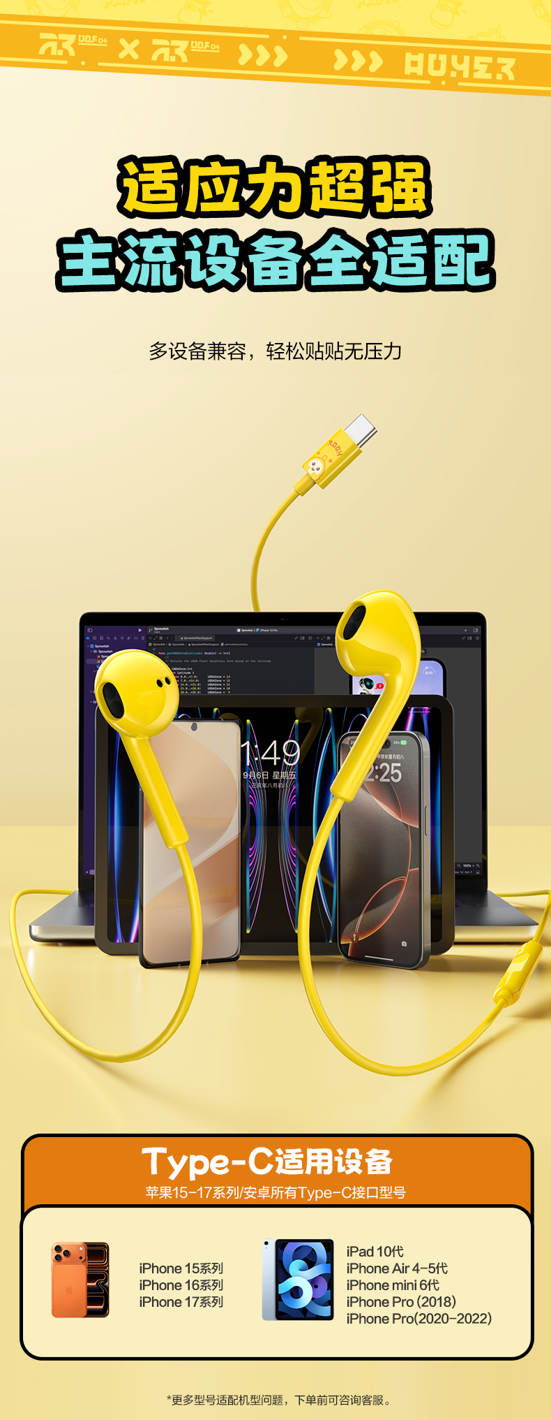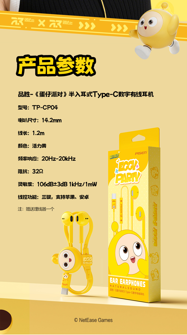 品胜 《蛋仔派对》Type-C数字有线耳机 C口支持华为/小米/荣耀/安卓/苹果等设备适用