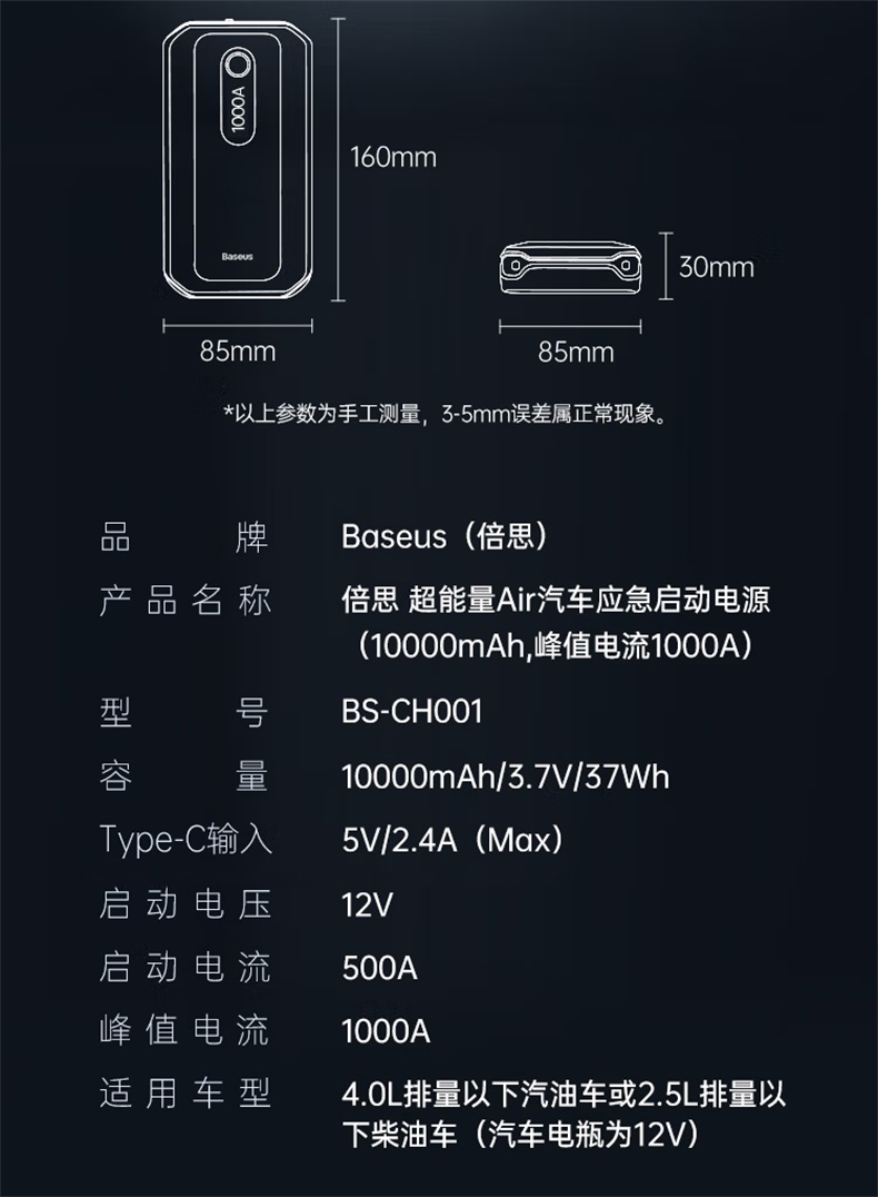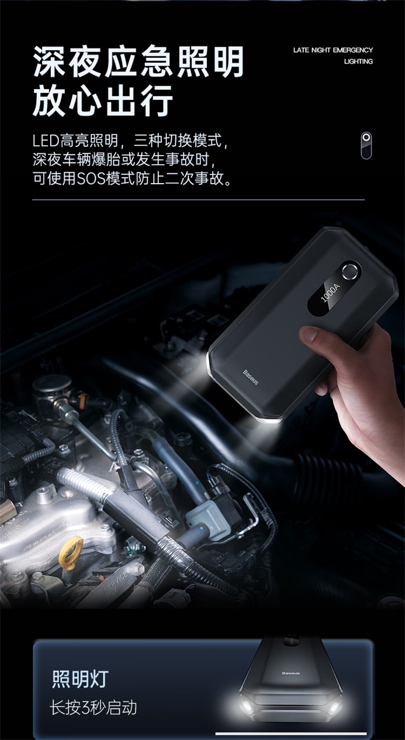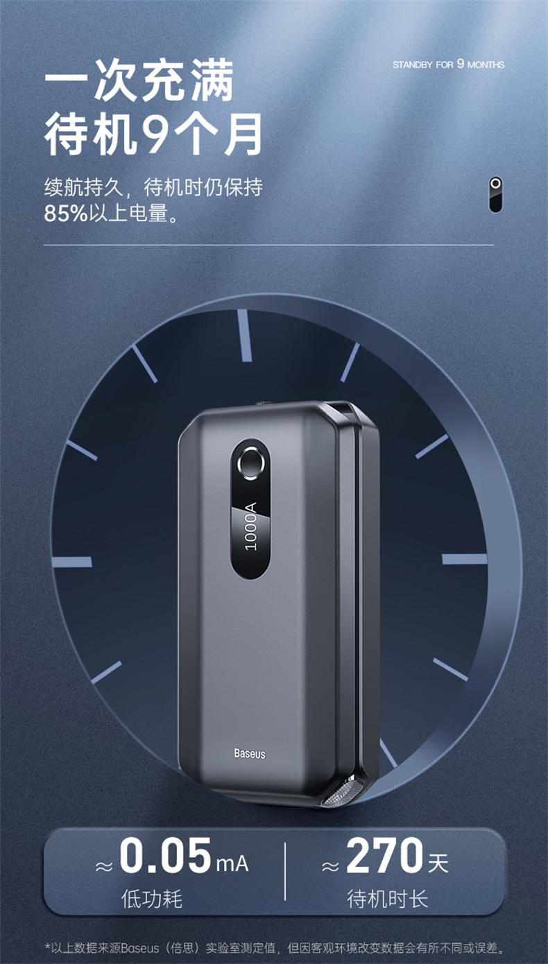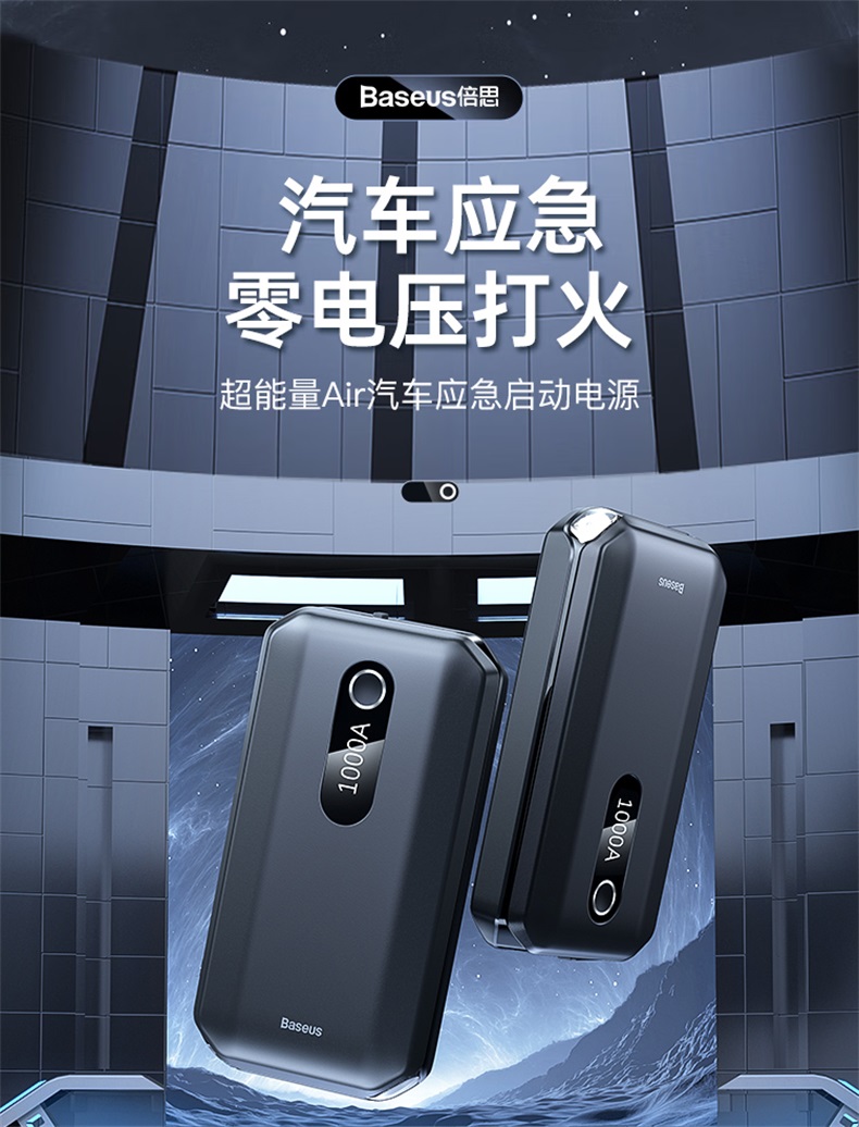 倍思 超能量Air汽车应急启动电源(10000mAh,峰值电流1000A)
