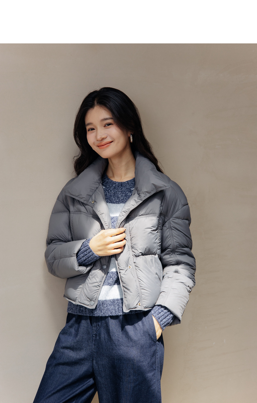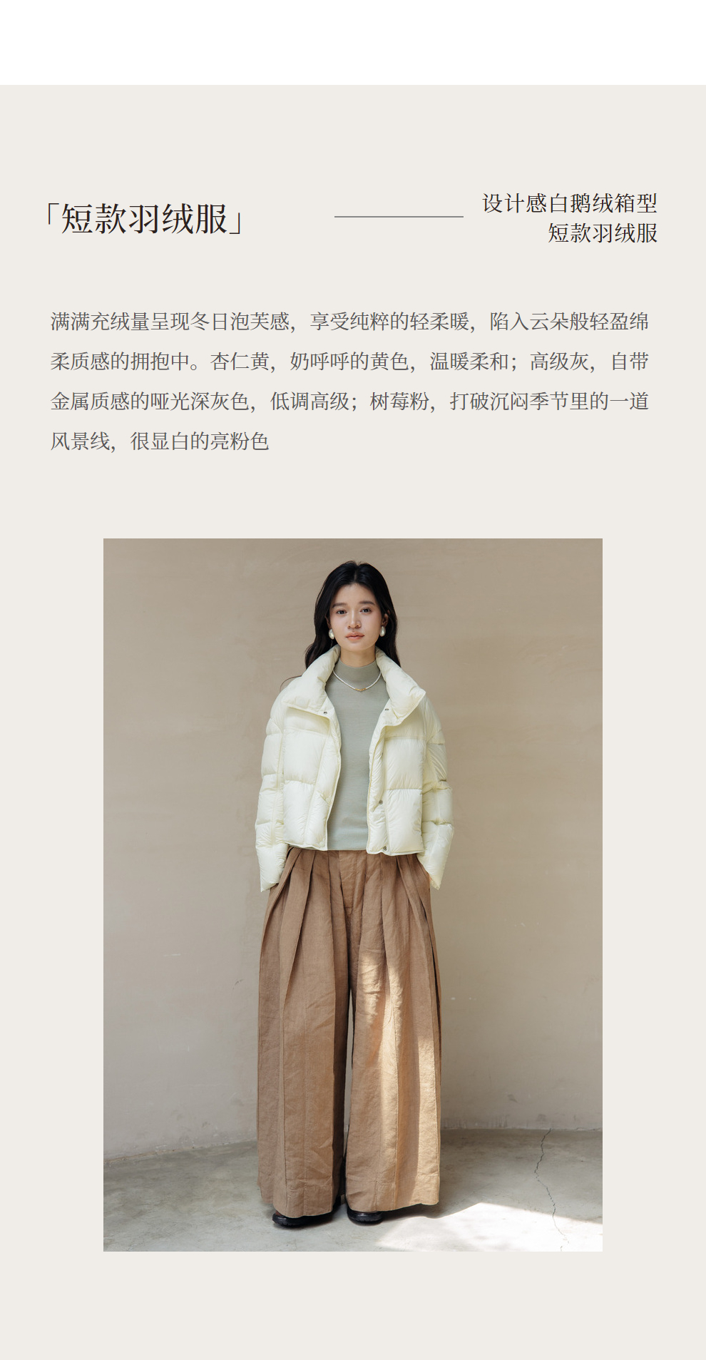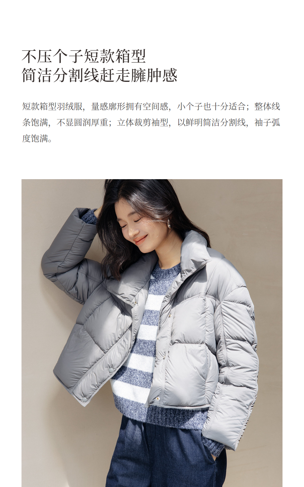 绽放旅行女装742朵/秋冬设计感白鹅绒箱型保暖立领百搭短款羽绒服