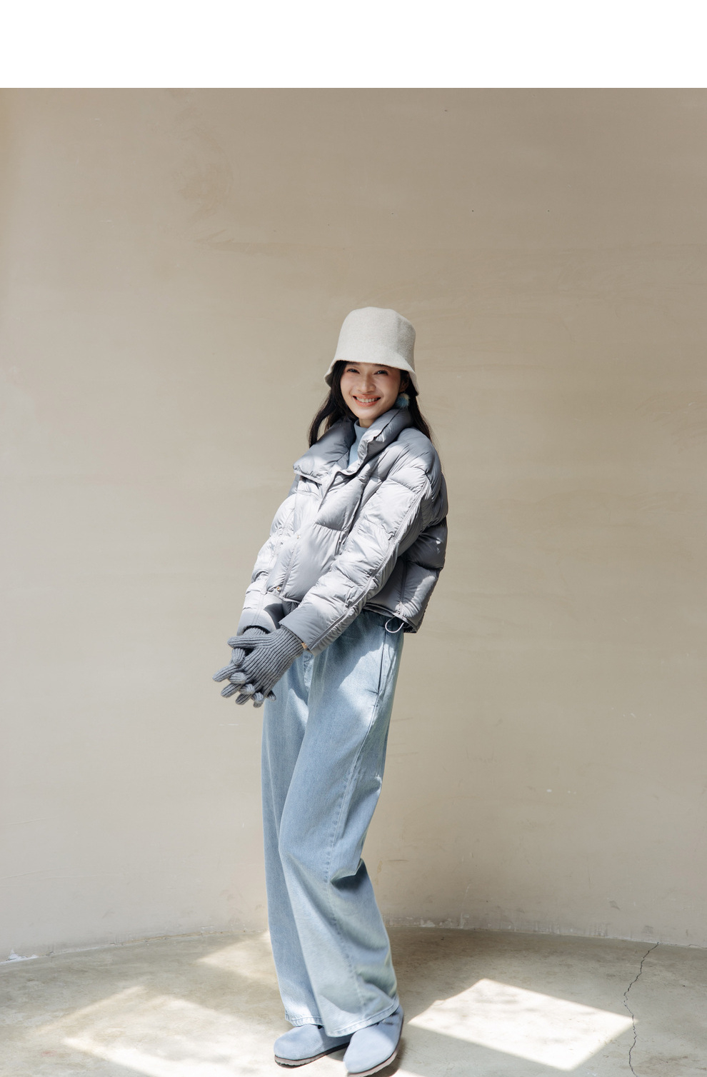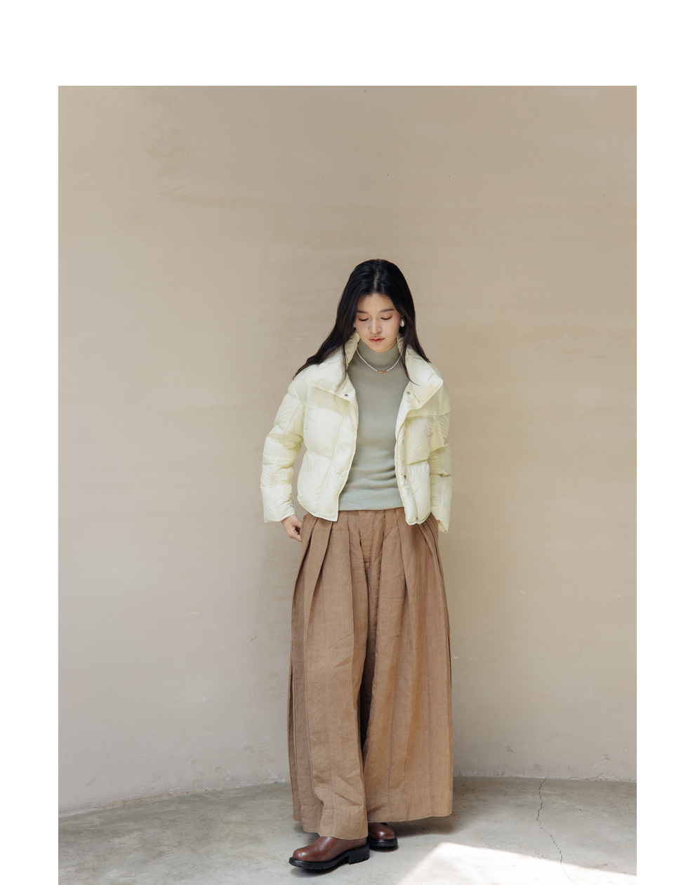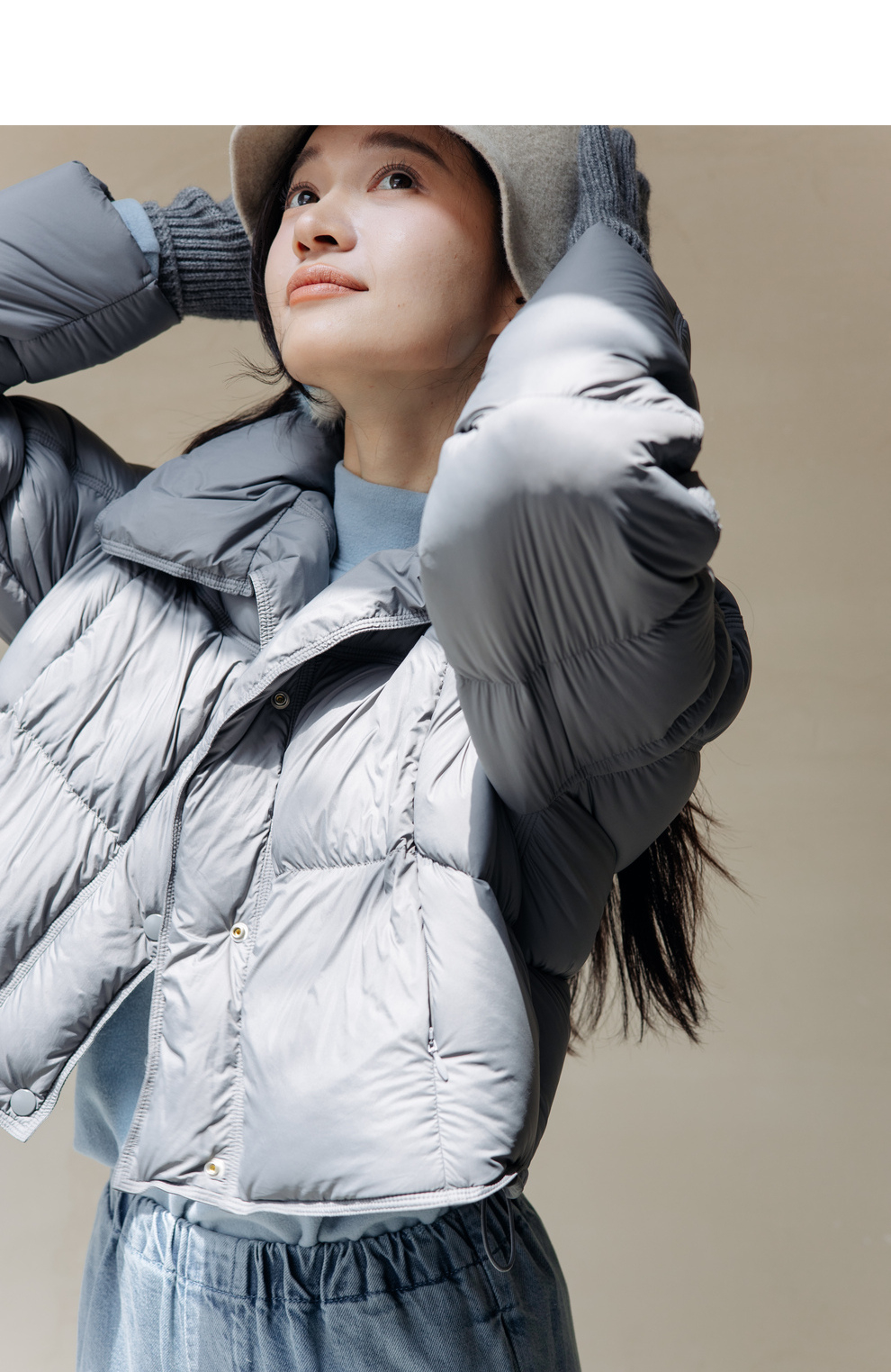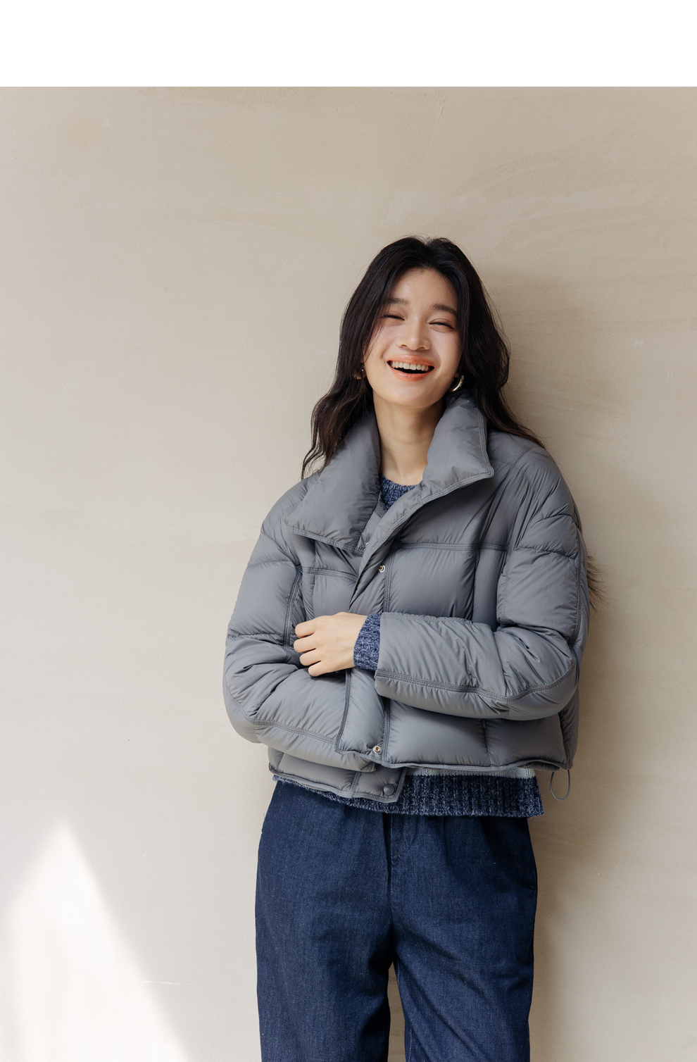 绽放旅行女装742朵/秋冬设计感白鹅绒箱型保暖立领百搭短款羽绒服