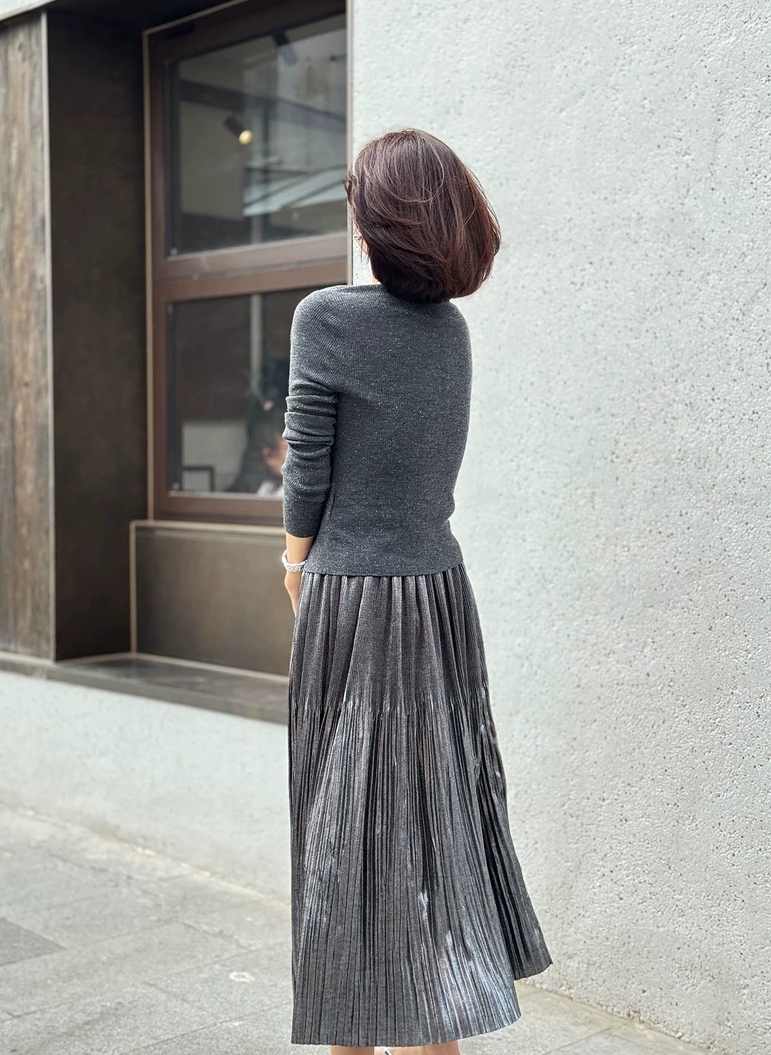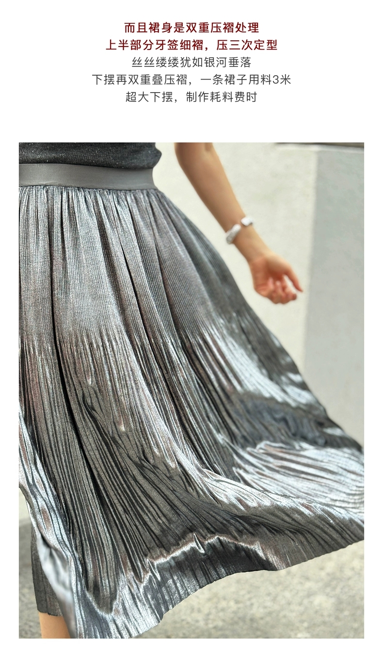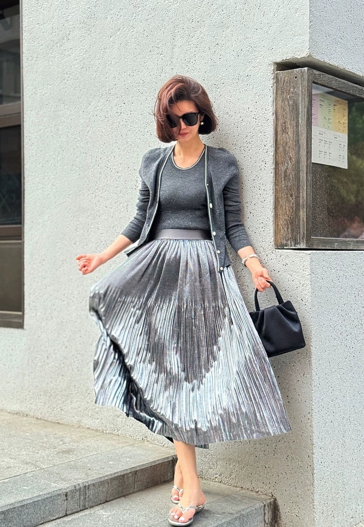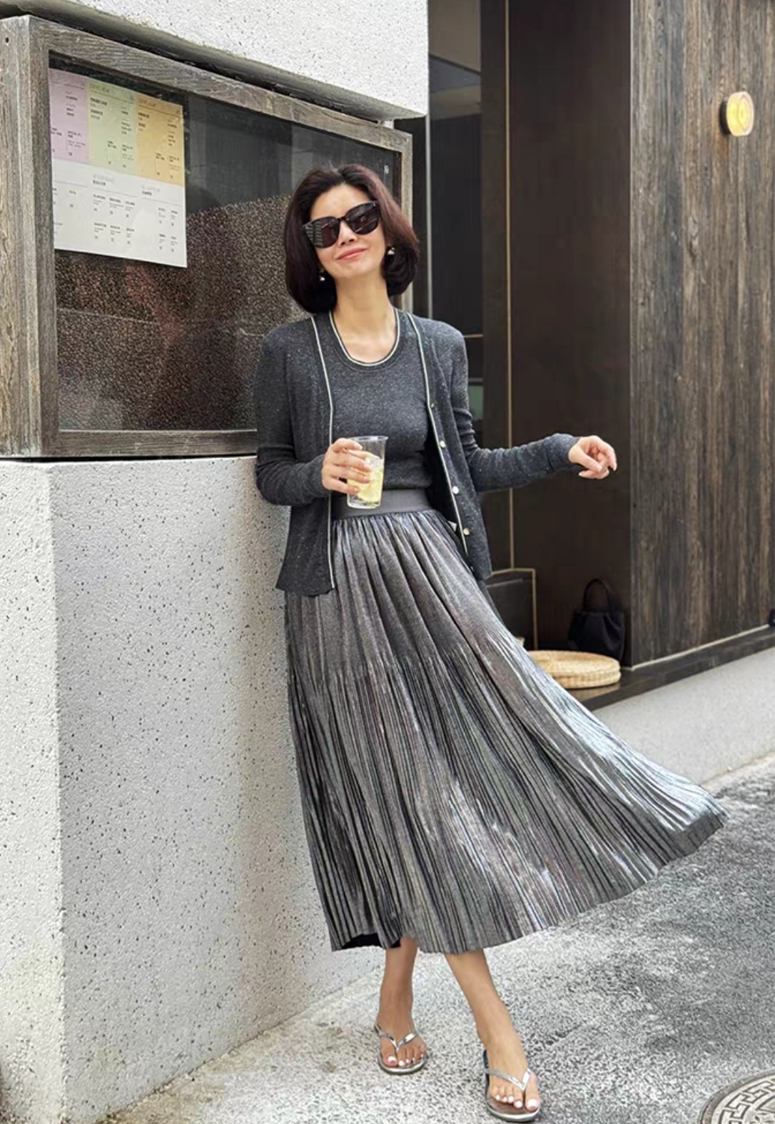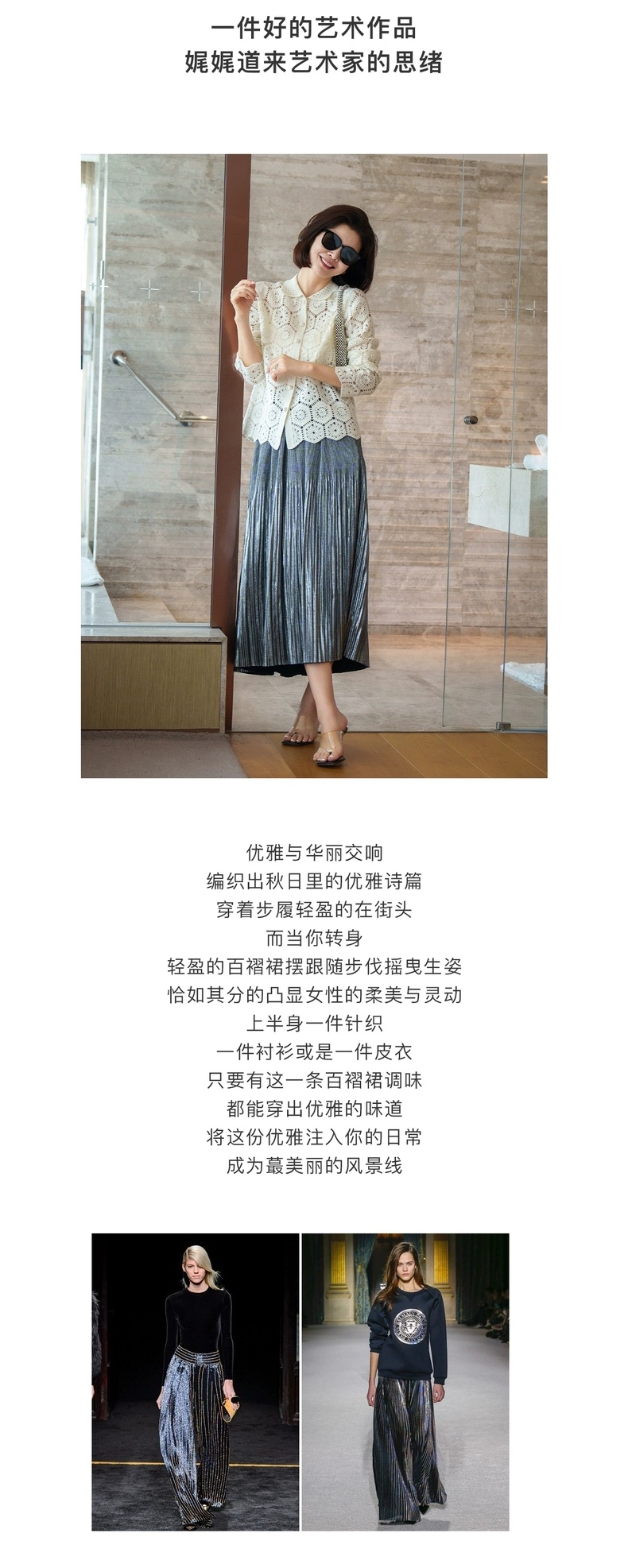 上半身一件针织一件衬衫或是一件皮衣,只要有这一条百褶裙调味都能穿出优雅的味道。