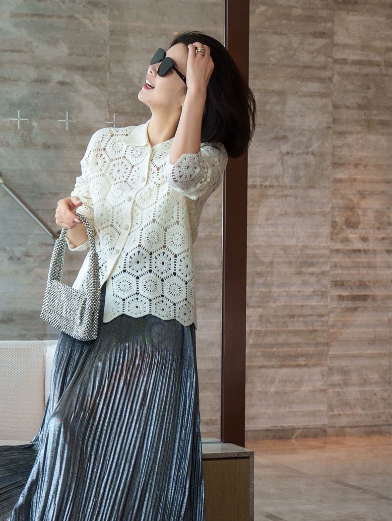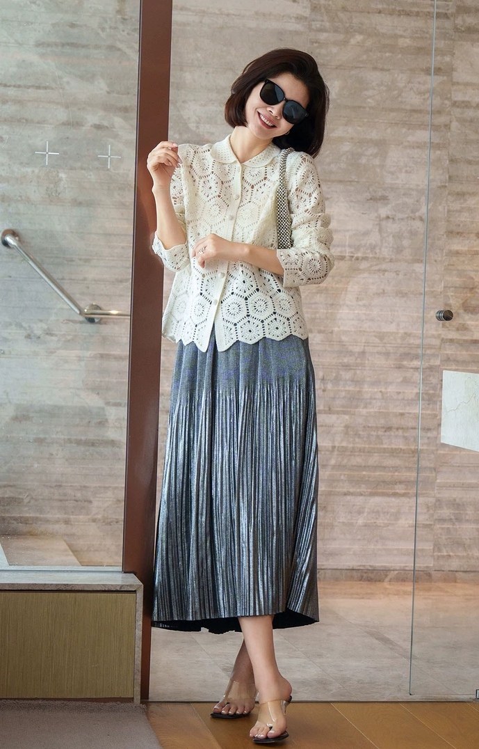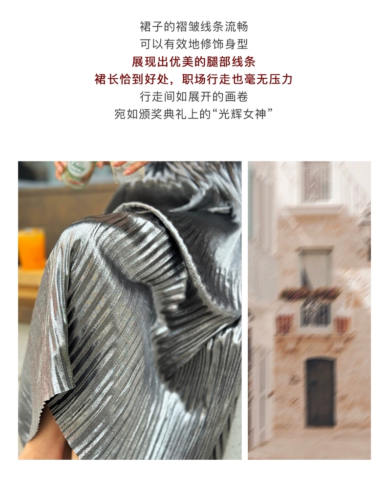 而当你转身,轻盈的百褶裙摆跟随步伐摇曳生姿,恰如其分的凸显女性的柔美与灵动,