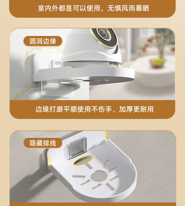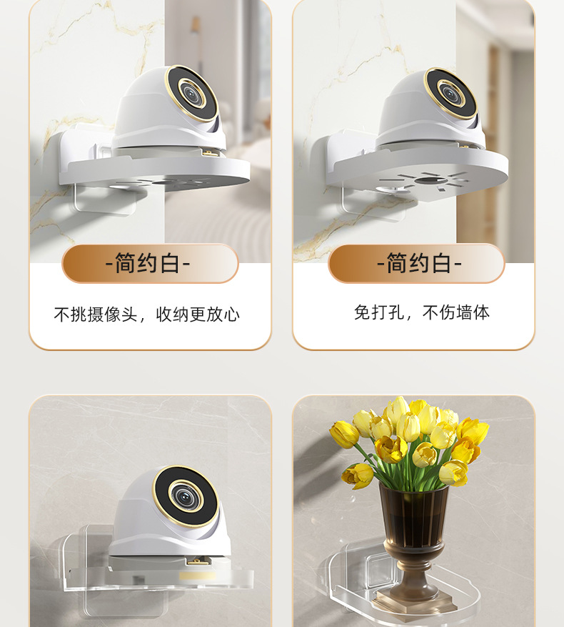 严选【免打孔】看护摄像头支架家用壁挂式监控支架各类监控通用托架挂墙一个装