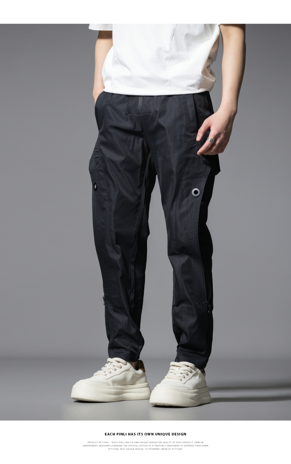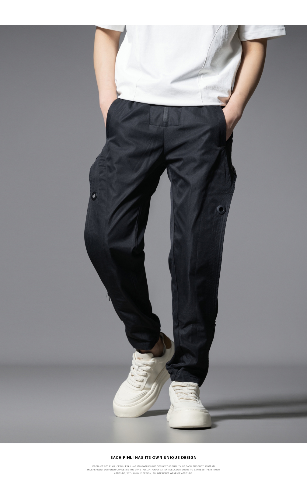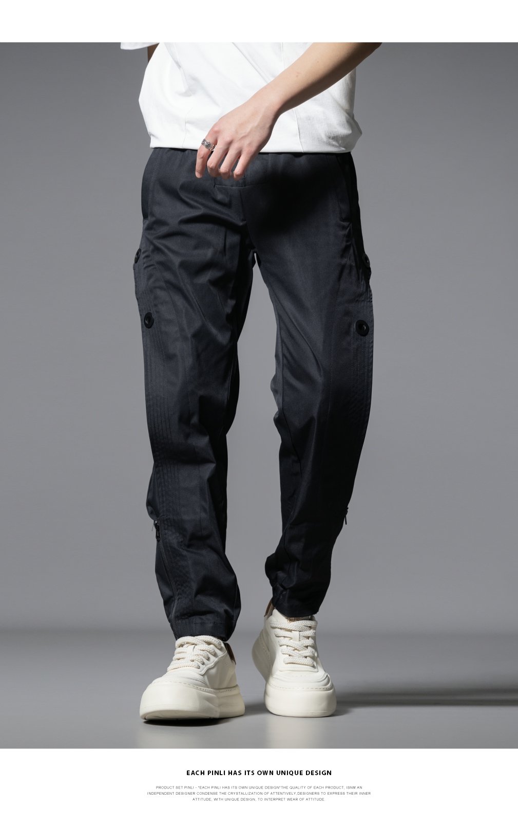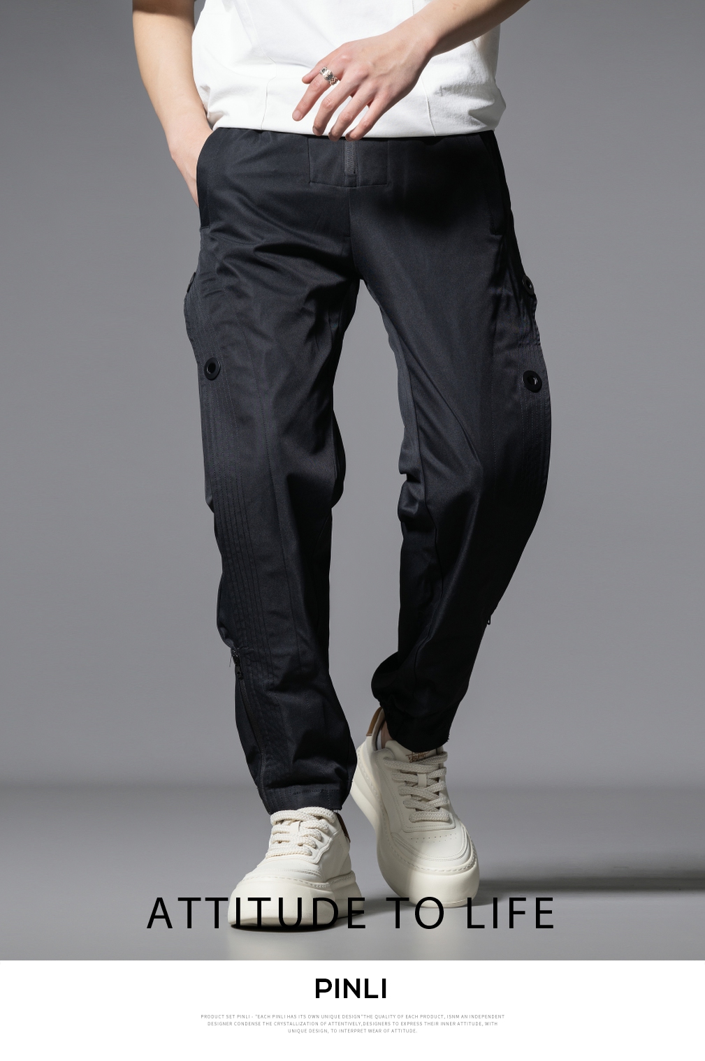 PINLI品立2025春夏新款拉链束脚工装裤男士机能风潮牌休闲长裤子GD251217108