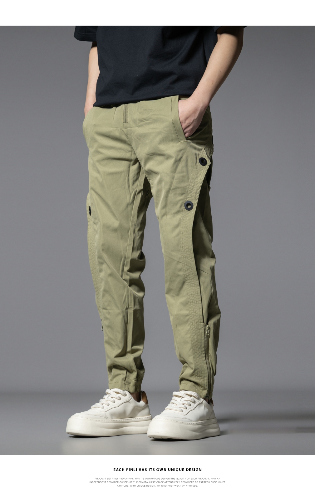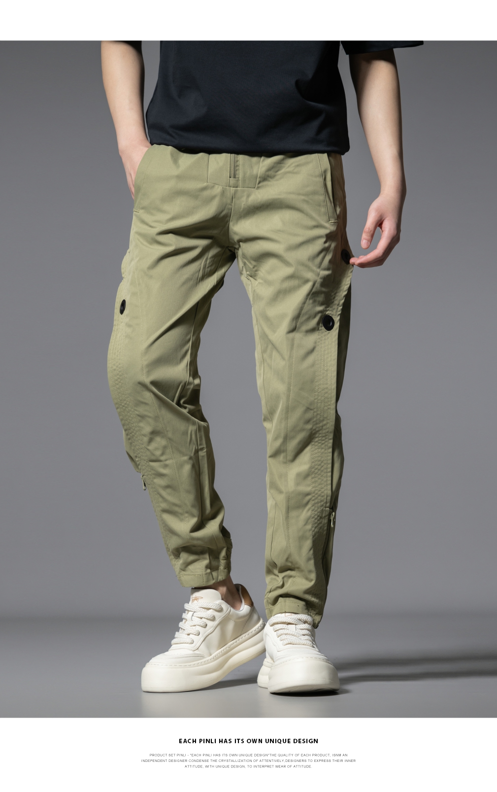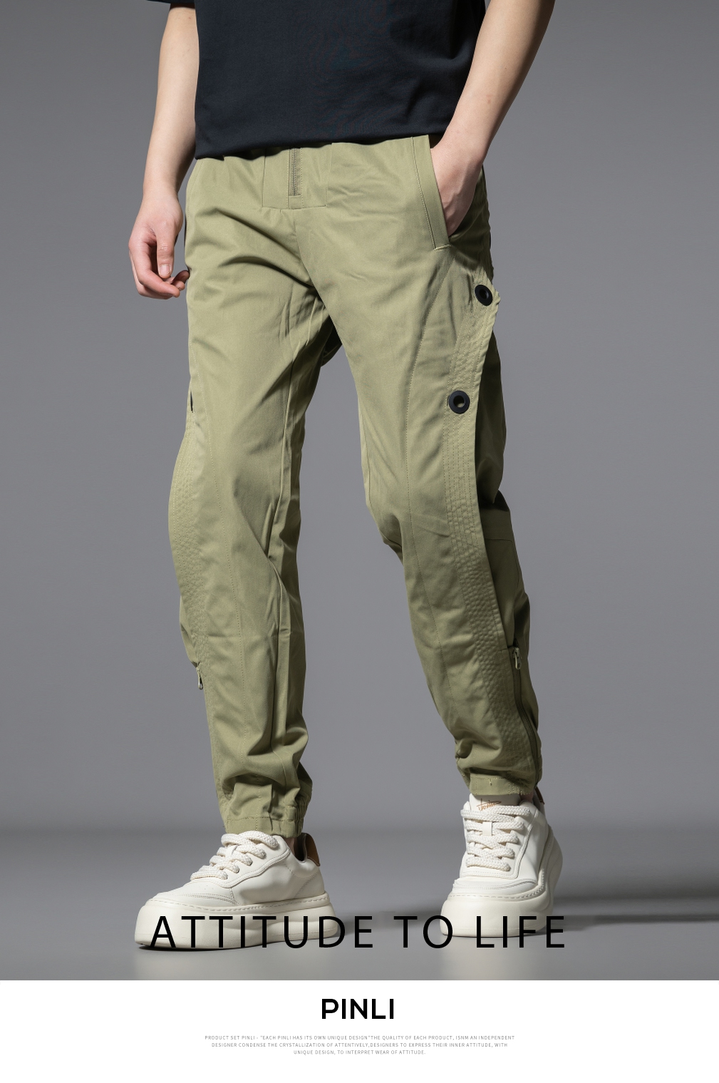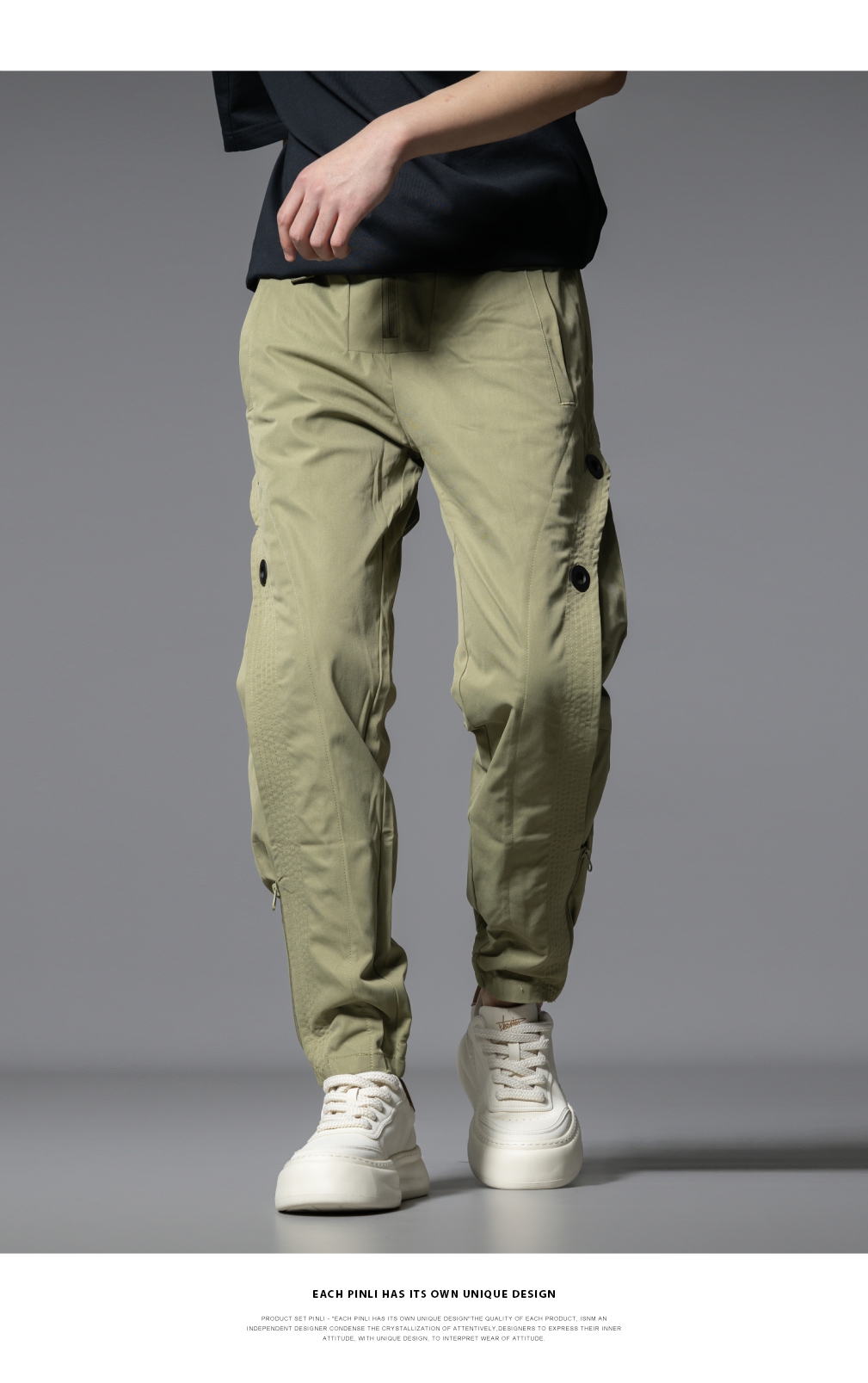 PINLI品立2025春夏新款拉链束脚工装裤男士机能风潮牌休闲长裤子GD251217108