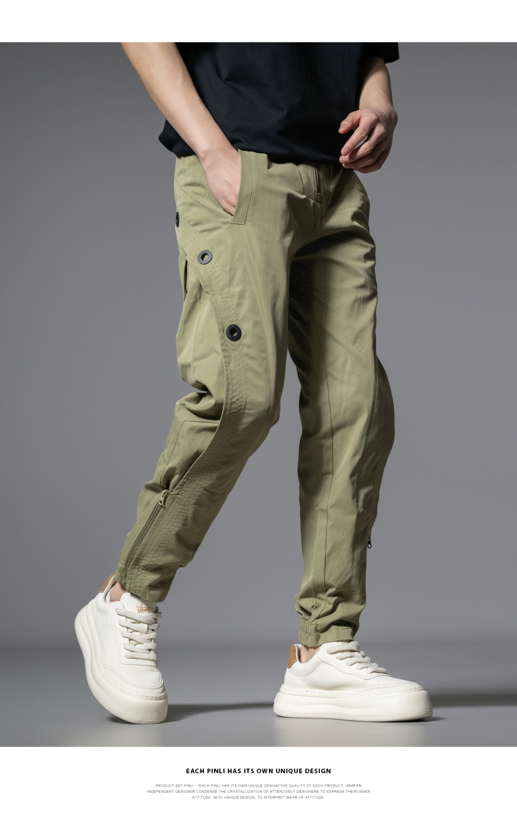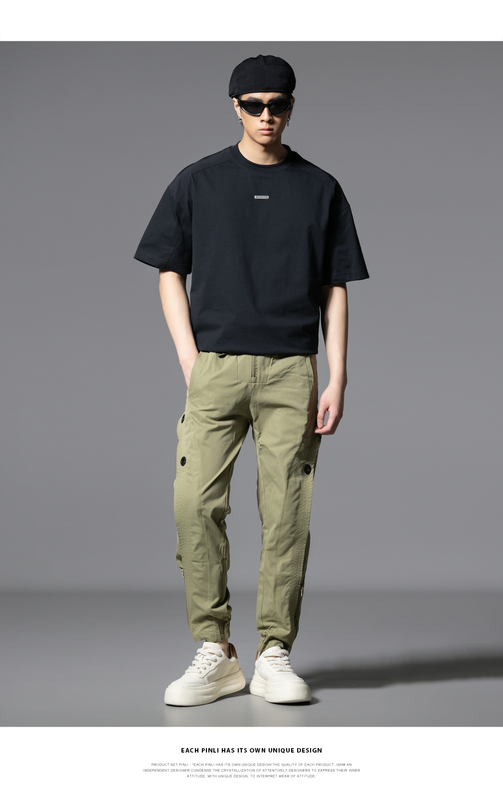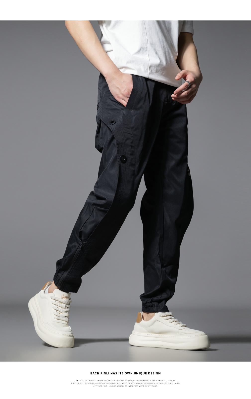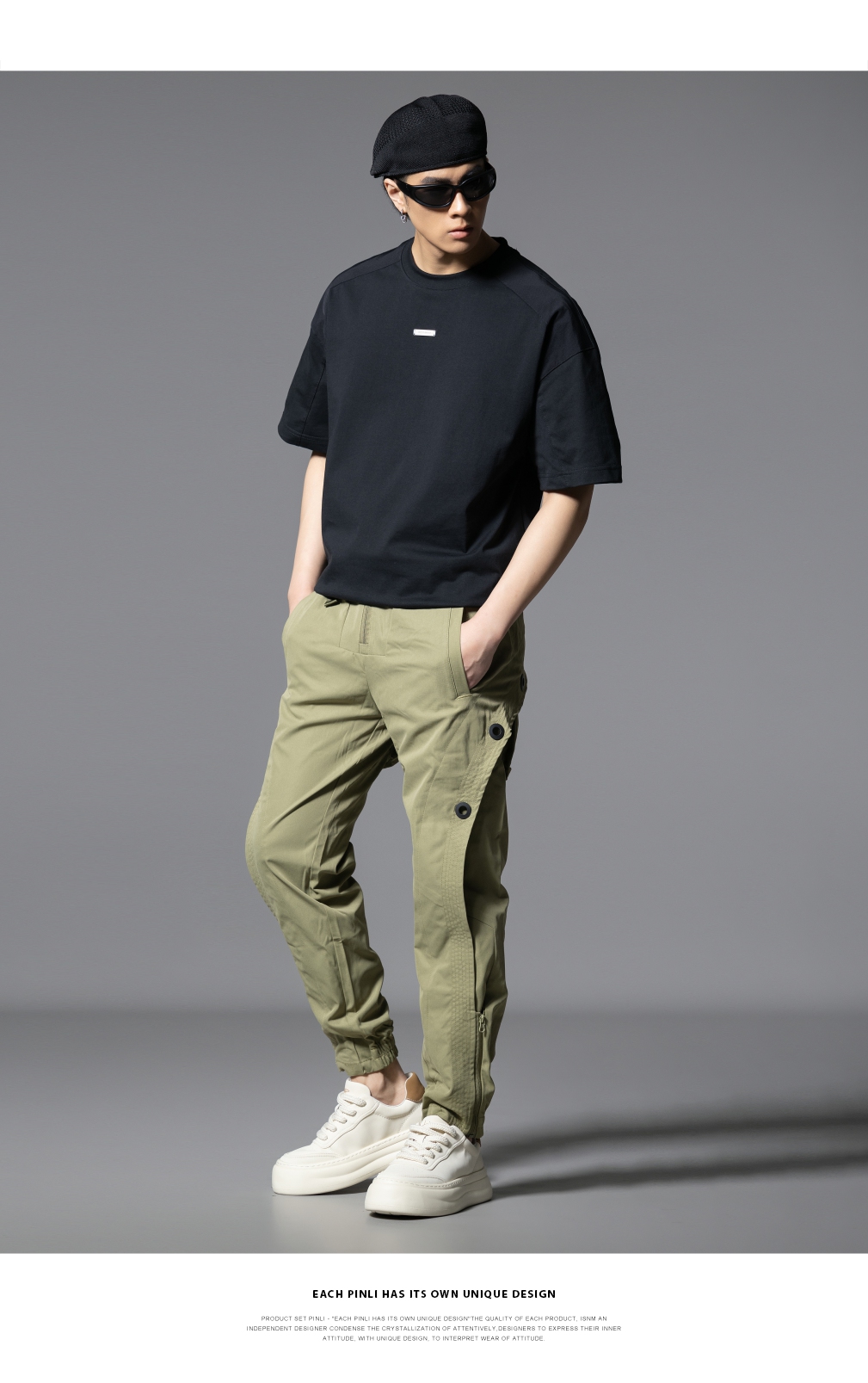 PINLI品立2025春夏新款拉链束脚工装裤男士机能风潮牌休闲长裤子GD251217108