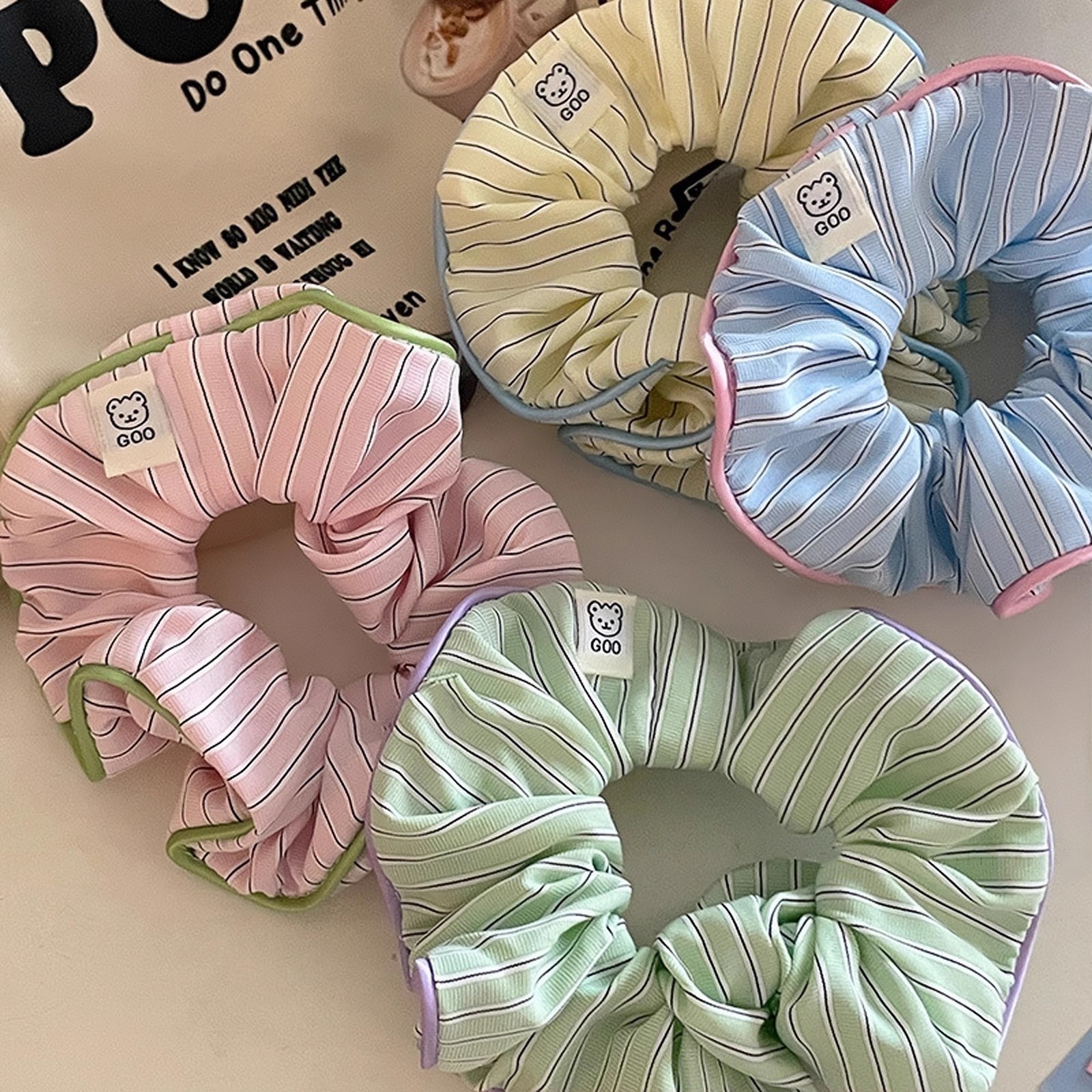 小熊大肠圈【奶油撞色条纹 百搭头饰】可爱少女发绳丸子头 高马尾发饰品