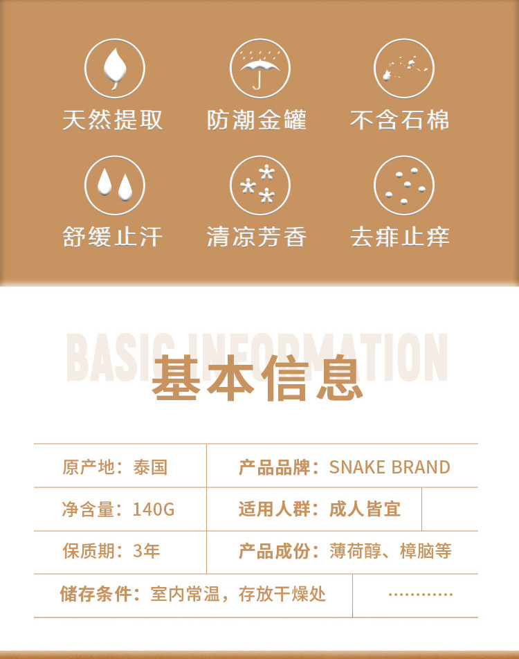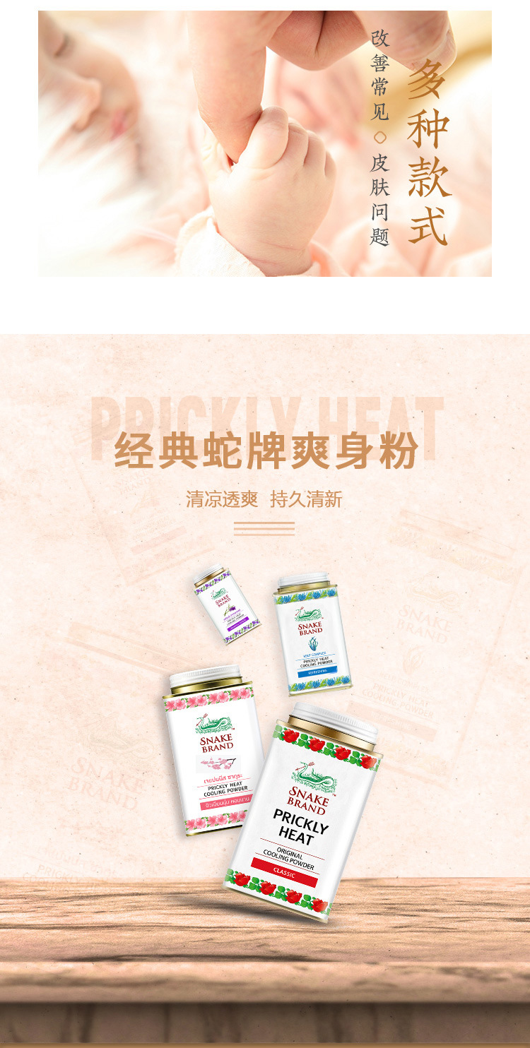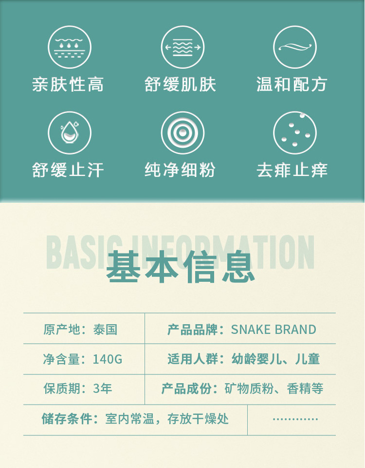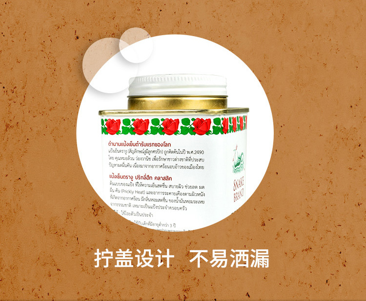 【一般贸易中文标】泰国进口蛇牌蛇粉爽身粉痱子粉儿童成人男女止汗140g