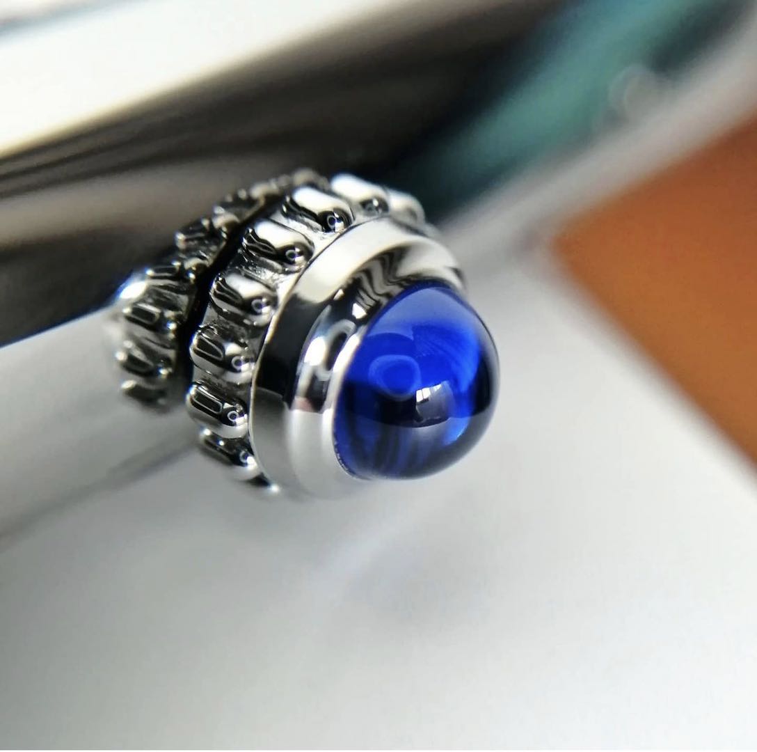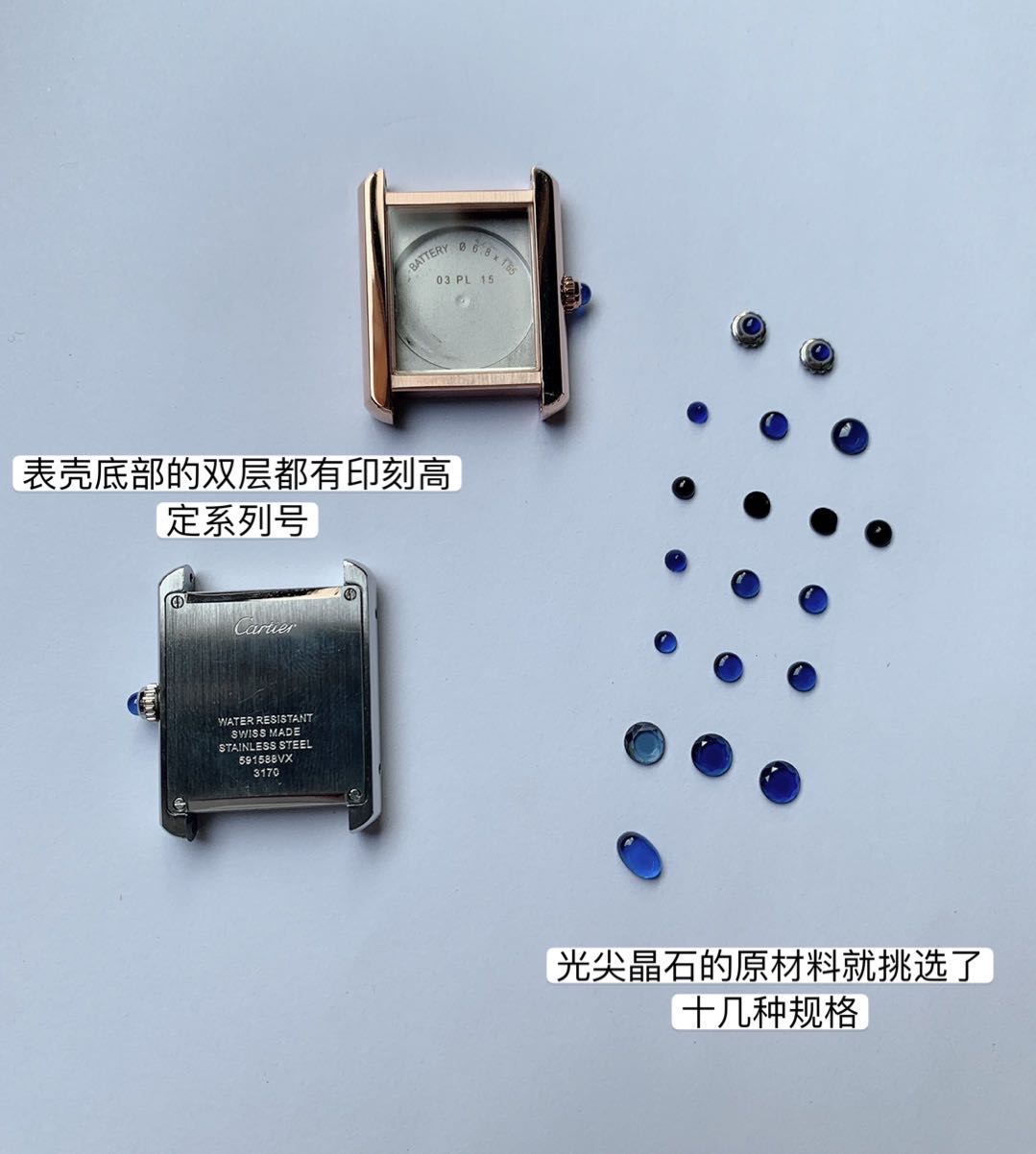医疗级精钢锻造,耳冠镶嵌一颗凸圆形尖晶石,防磨防刮蓝宝石玻璃,镀银珠光表盘,剑型蓝钢指针,百分百原装瑞士进口机芯,假一罚十,电池超级续航,头层小牛皮皮带配置卡家原装扣。