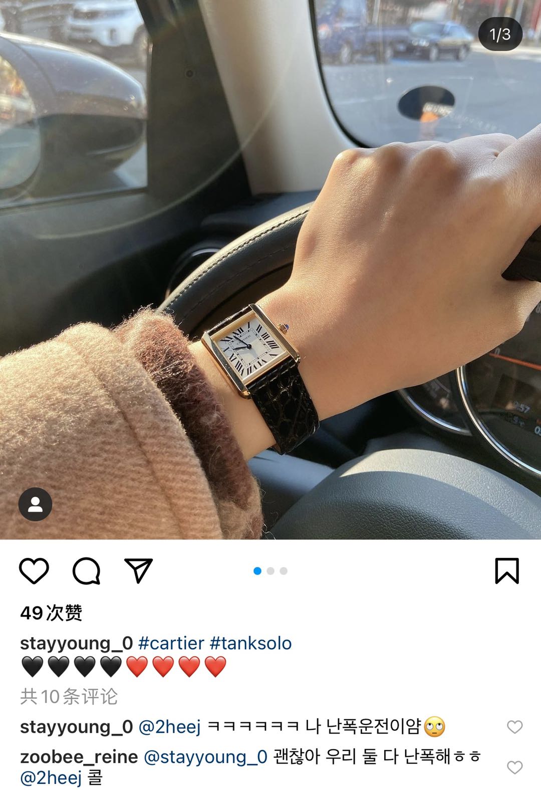 韩国单 !卡地亚独家腕表!三色!自动感应保修卡卡家坦克-solo 系列腕表手表 带礼盒可送人