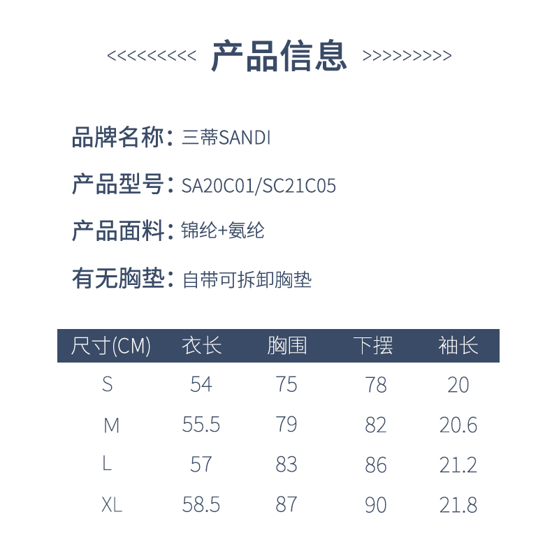 SANDI品牌裸感短袖SA20C01&SC21C05瑜伽服有XXXL