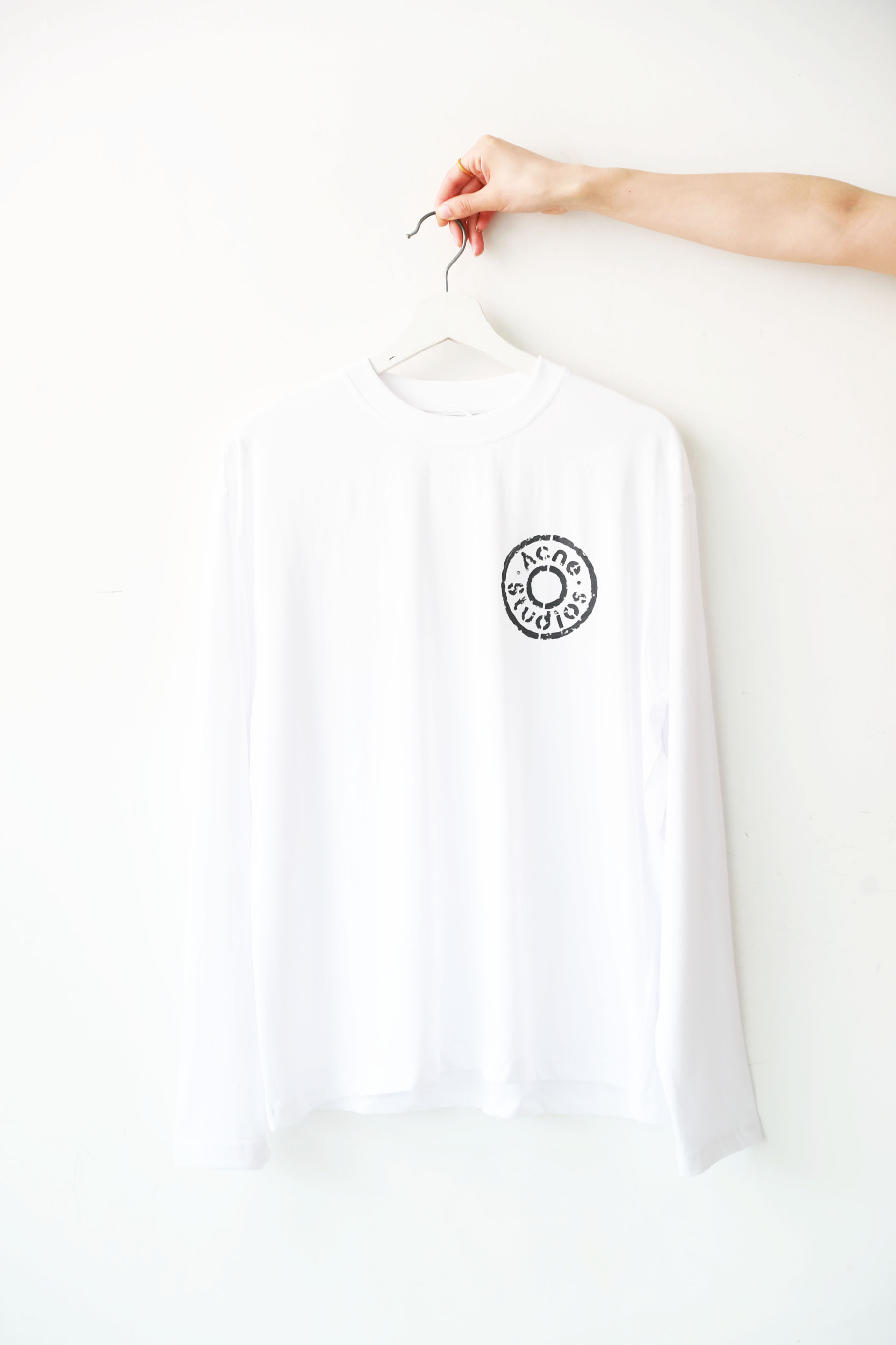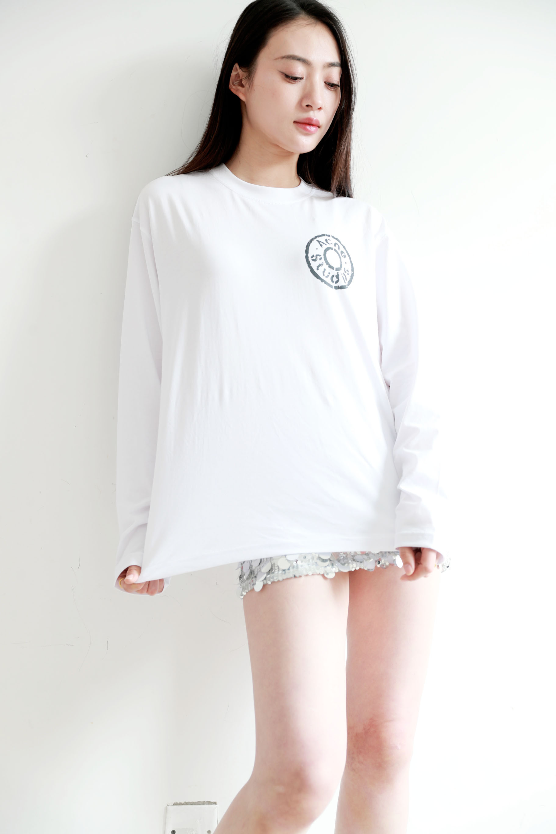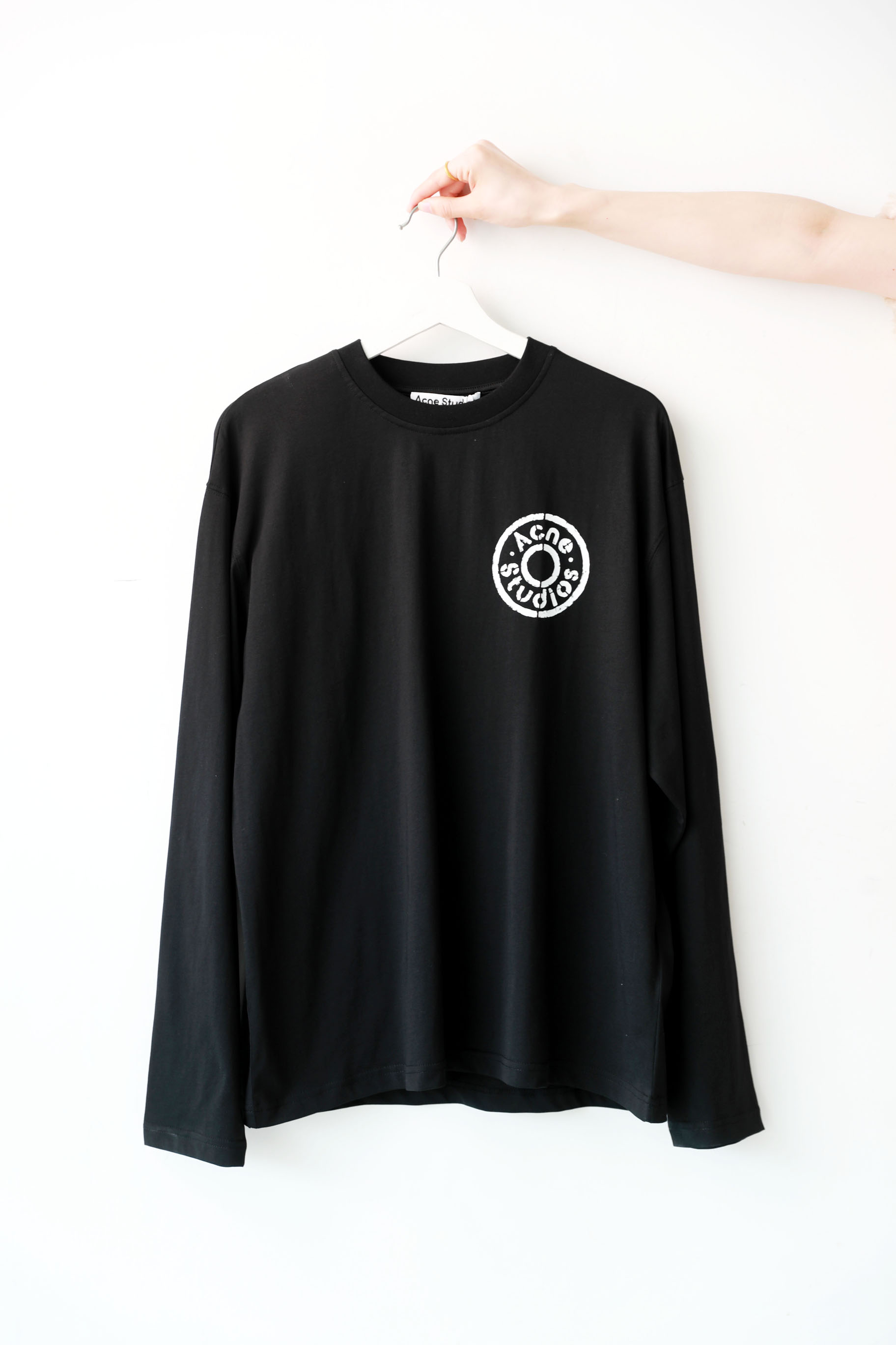 胸口字母长袖tee,水洗做旧工艺。美式复古基础套头式上衣E032168