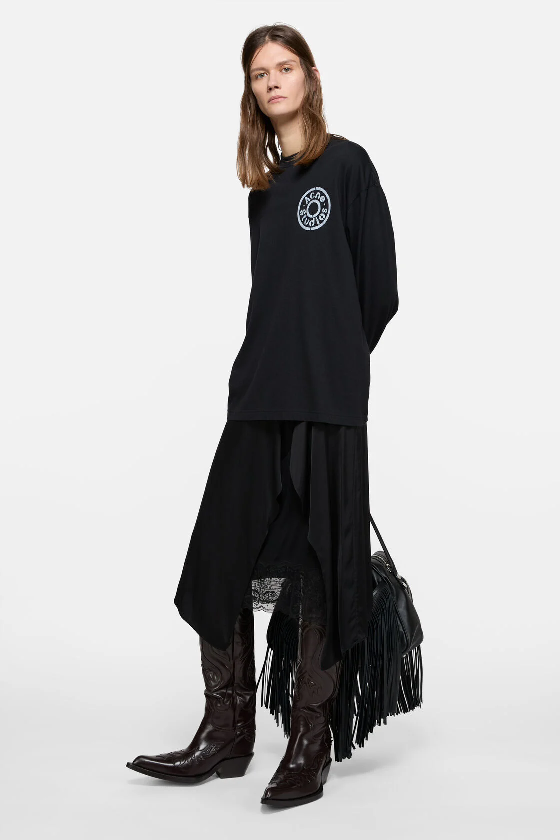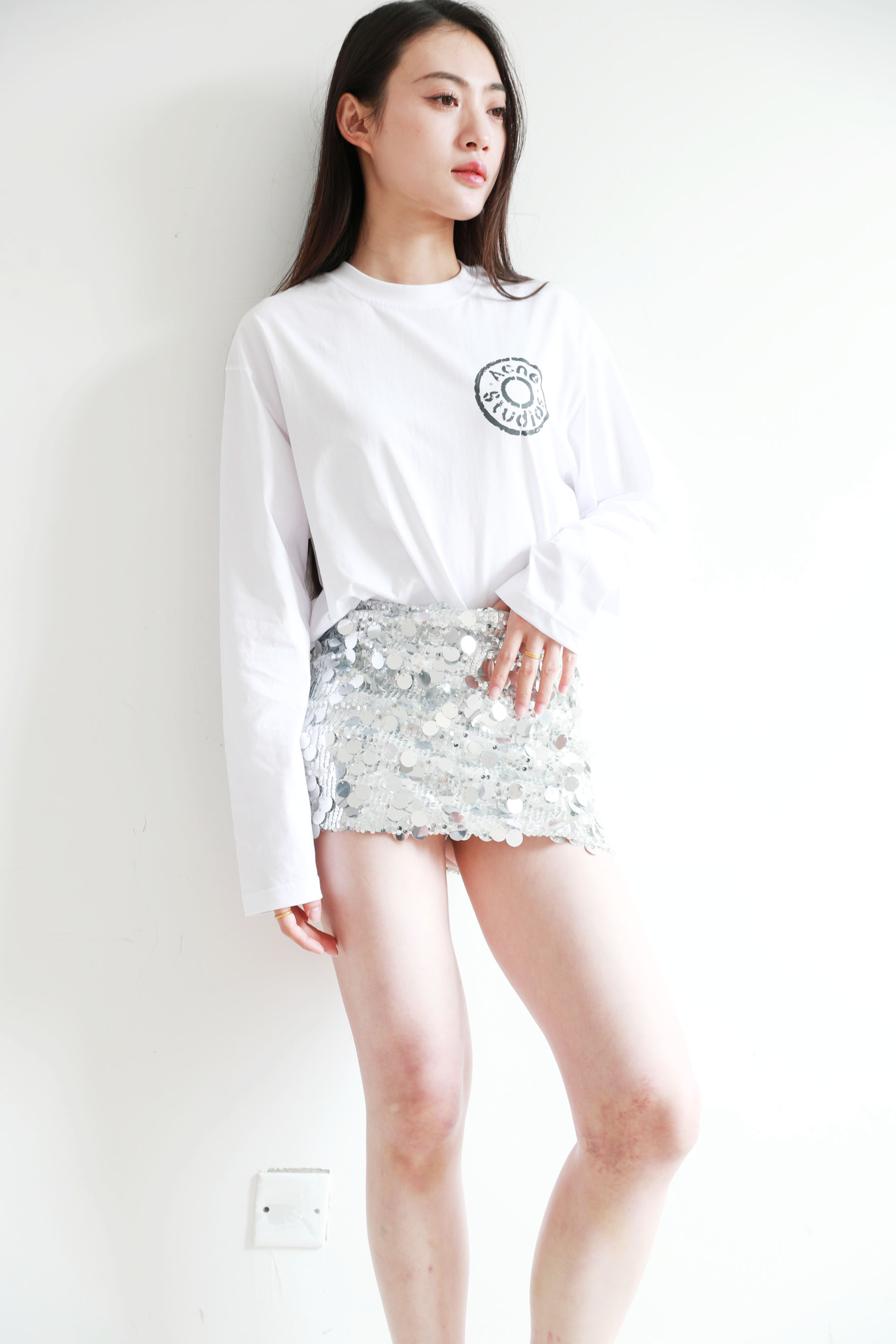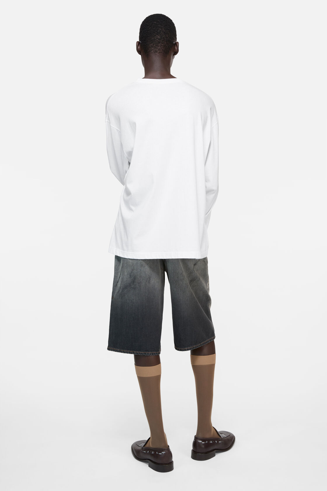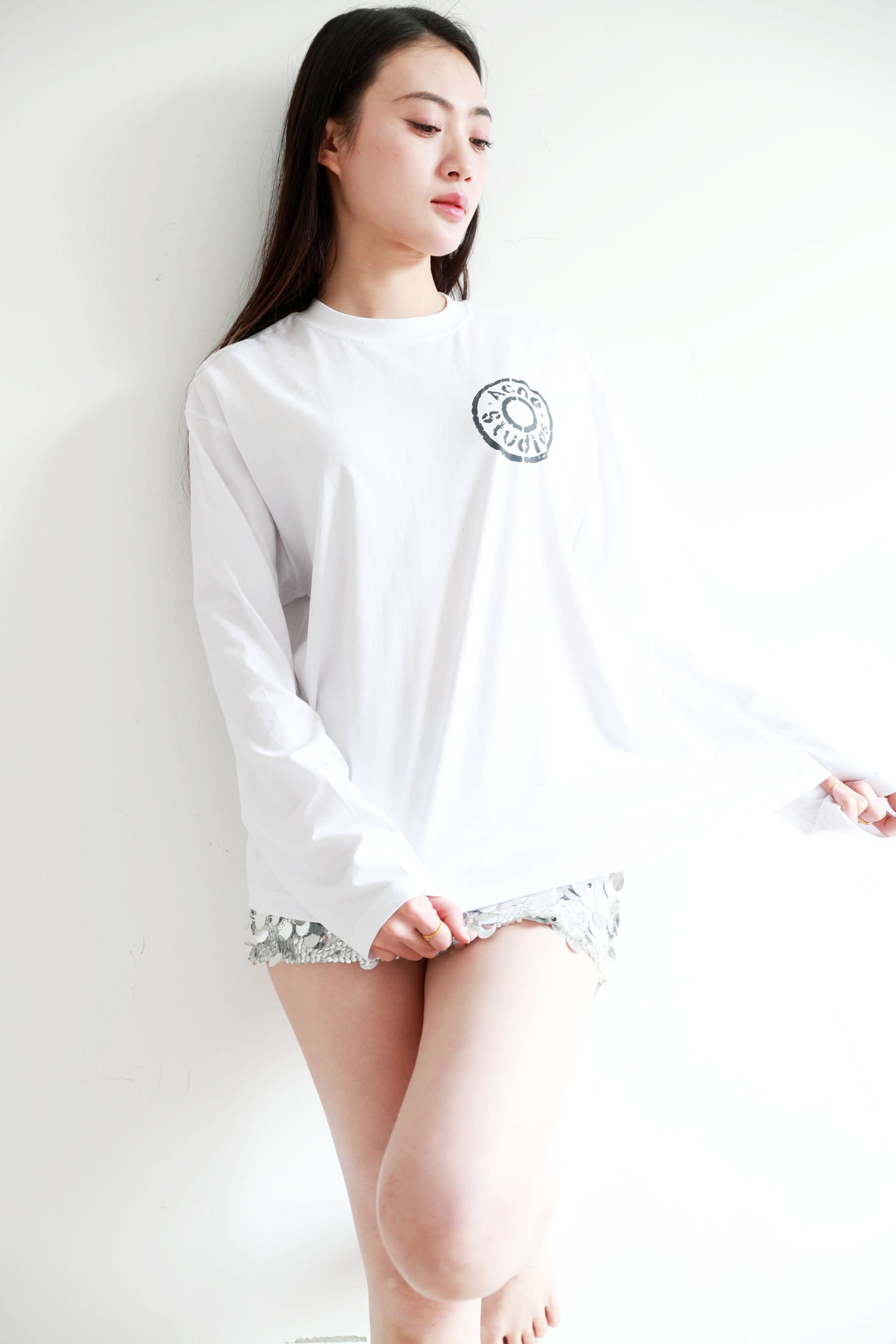 胸口字母长袖tee,水洗做旧工艺。美式复古基础套头式上衣E032168