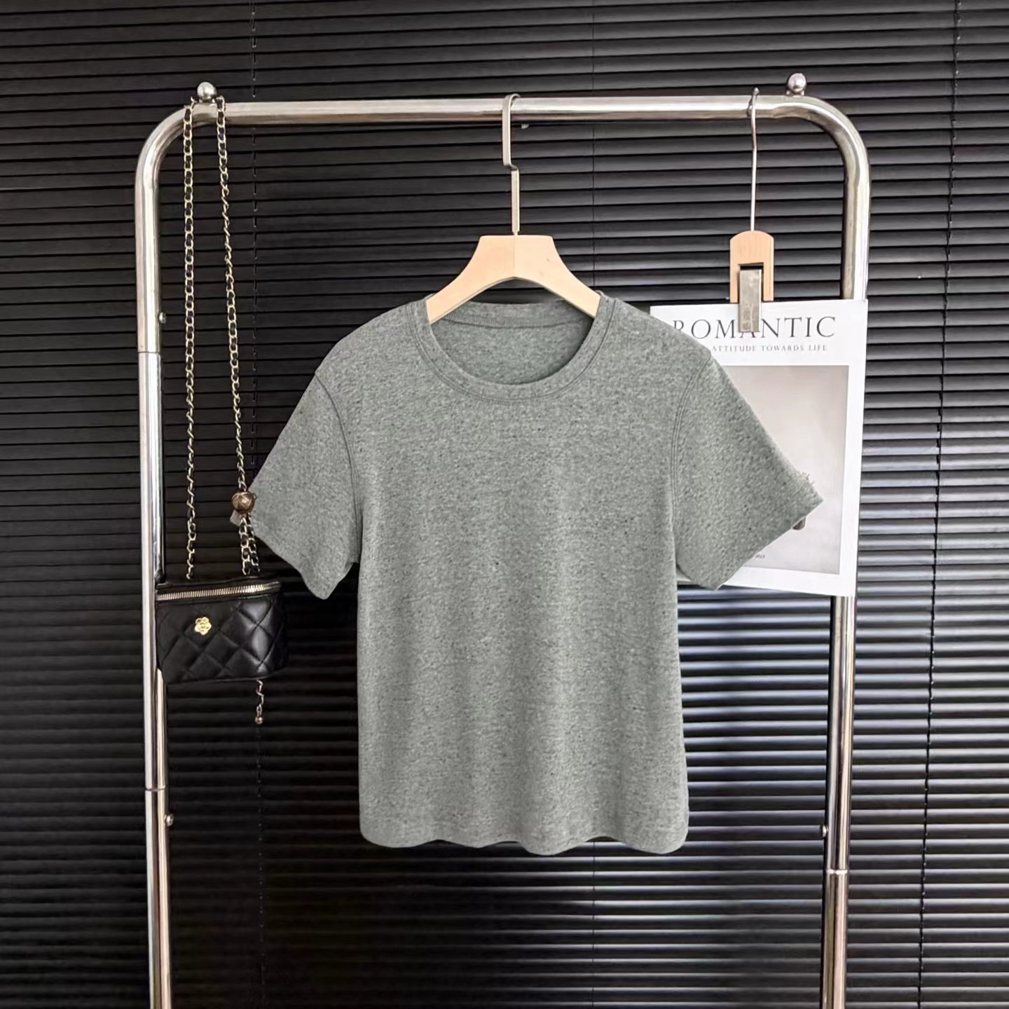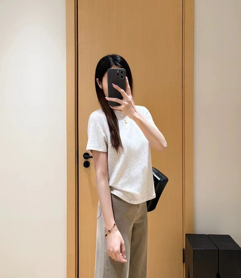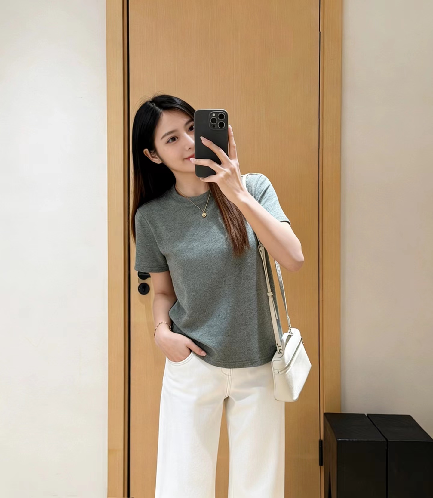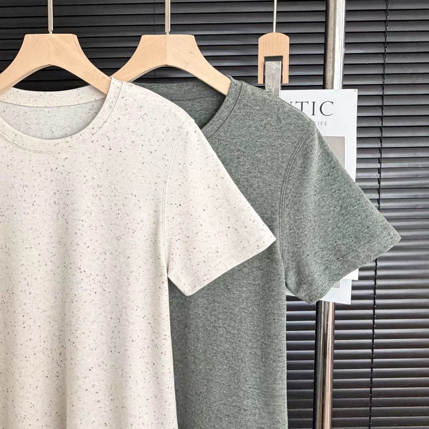 定染彩点花纱棉~设计感舒适圆领百搭T恤短袖时髦巨美的点子纱短袖T袖!!INS博主随性出行的wang牌“jing典T恤’柔润光泽美轮美奂,獨家定染gao级2色提气时髦,显白不挑人,奢侈舒适的亲柔体验,jing典百搭,舒适易打理~荃新点子纱线带来gao级舒适体验,定制点子彩纱混纺面料,颜色治愈星星点点不规则的颗粒点子纱,随着光影呈现微妙机理质感的独特辨识度,高针密织法制作而成更富有层次立体感,棉的天然亲肤赋予肌肤云朵轻拥般的柔润,聚酯纤维则赋予衣身垂坠挺括的gao级廓形,轻松适配多元场景,棉弹混纺面料兼顾舒适与有型,适配各种身形,圆jing典圆领领,线条柔和修饰脸型,人人适穿~随性大方,舒适耐穿,平整利落短袖长度轻松藏手臂拜拜肉。衣长适穿率高,日常穿着自带松弛gao级感,无论是通勤还是休闲场合都恰到好处~