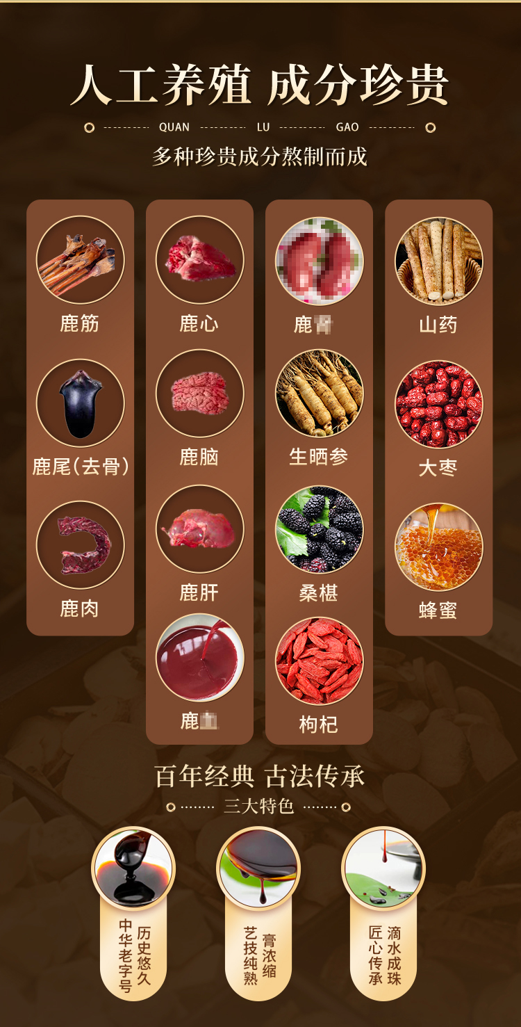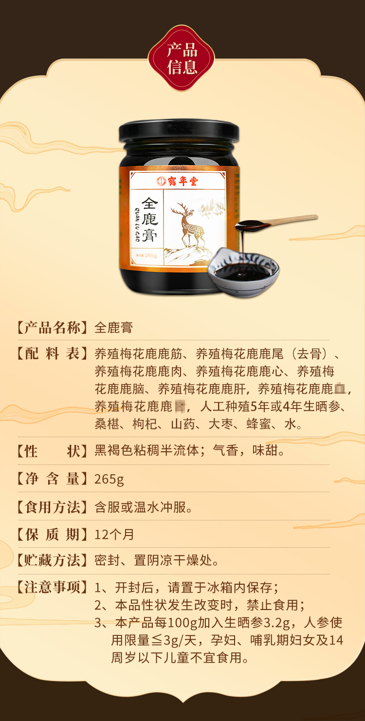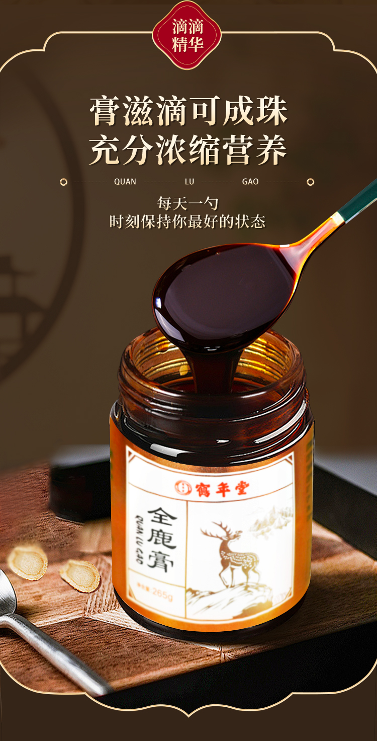 鹤年堂全鹿膏 膏体醇厚挂壁,以鹿为主料,熬制而成!
