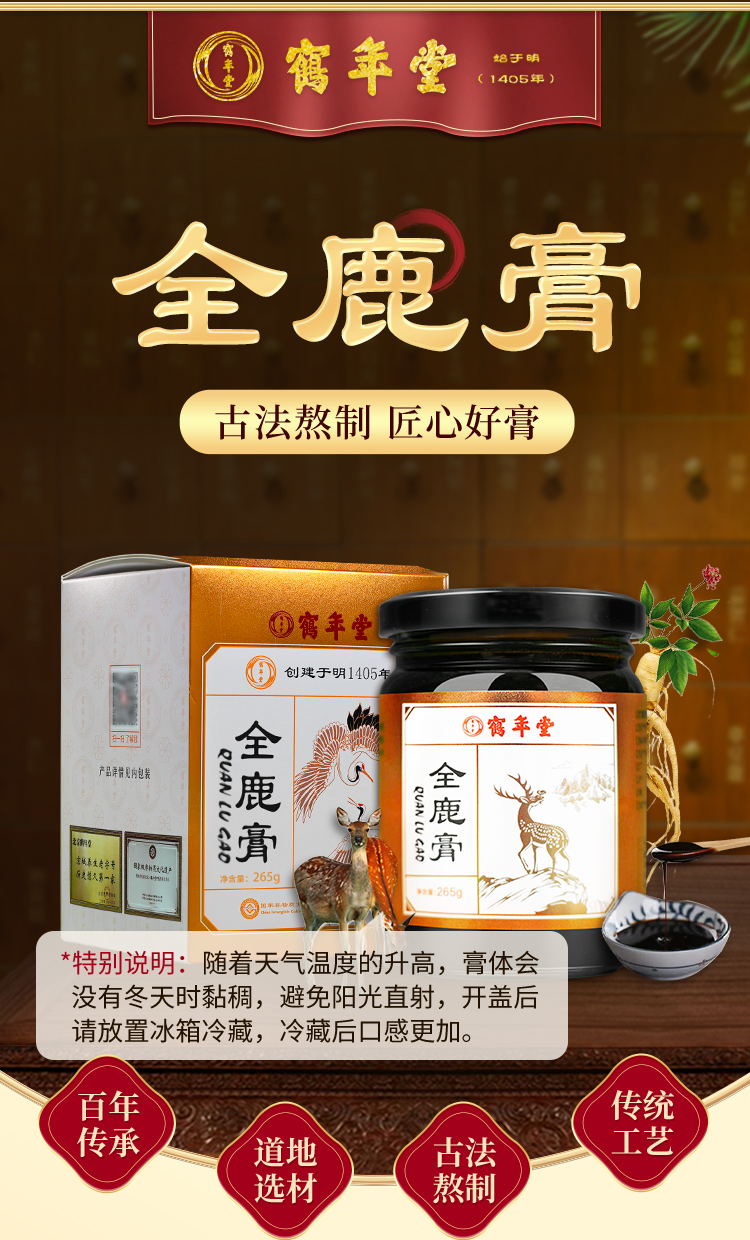 - 传统滋补膏–方北京鹤年堂!鹤年堂成立于1405年,至今615年,是国家非物质文化遗产和中华老字号单位!