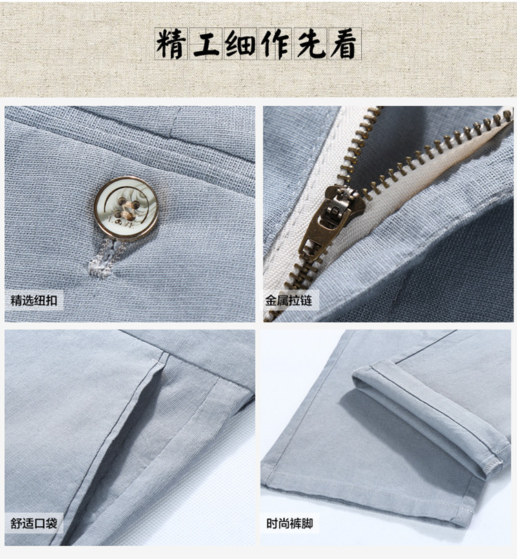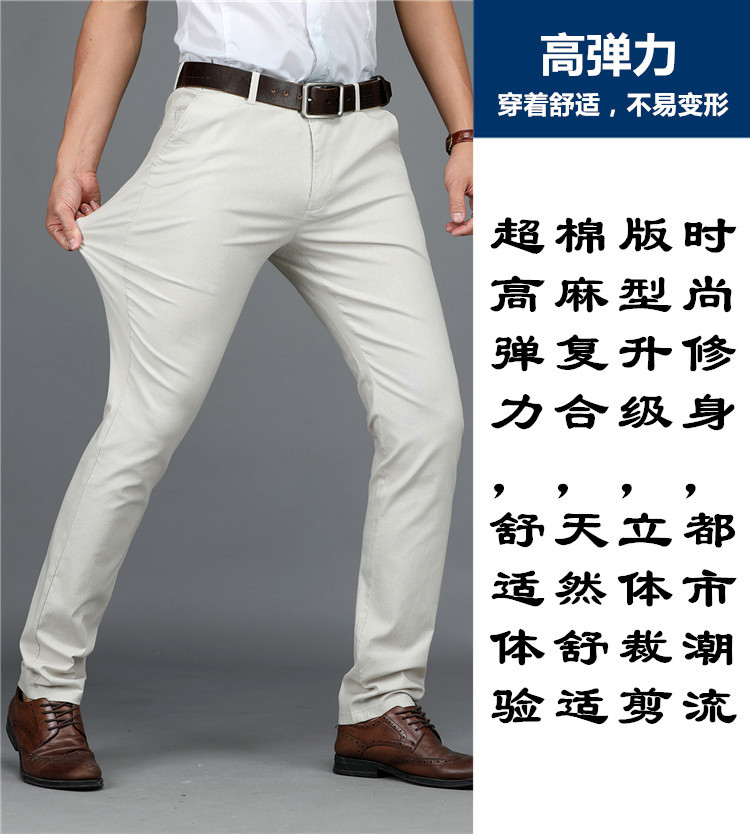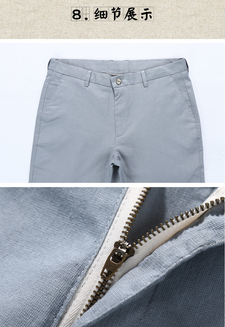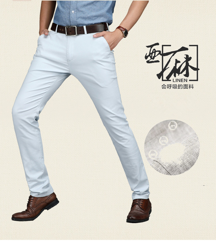 【服饰鞋包】。亚麻休闲裤男夏季麻料弹力男裤直筒薄款透气男士修身裤子棉麻长裤