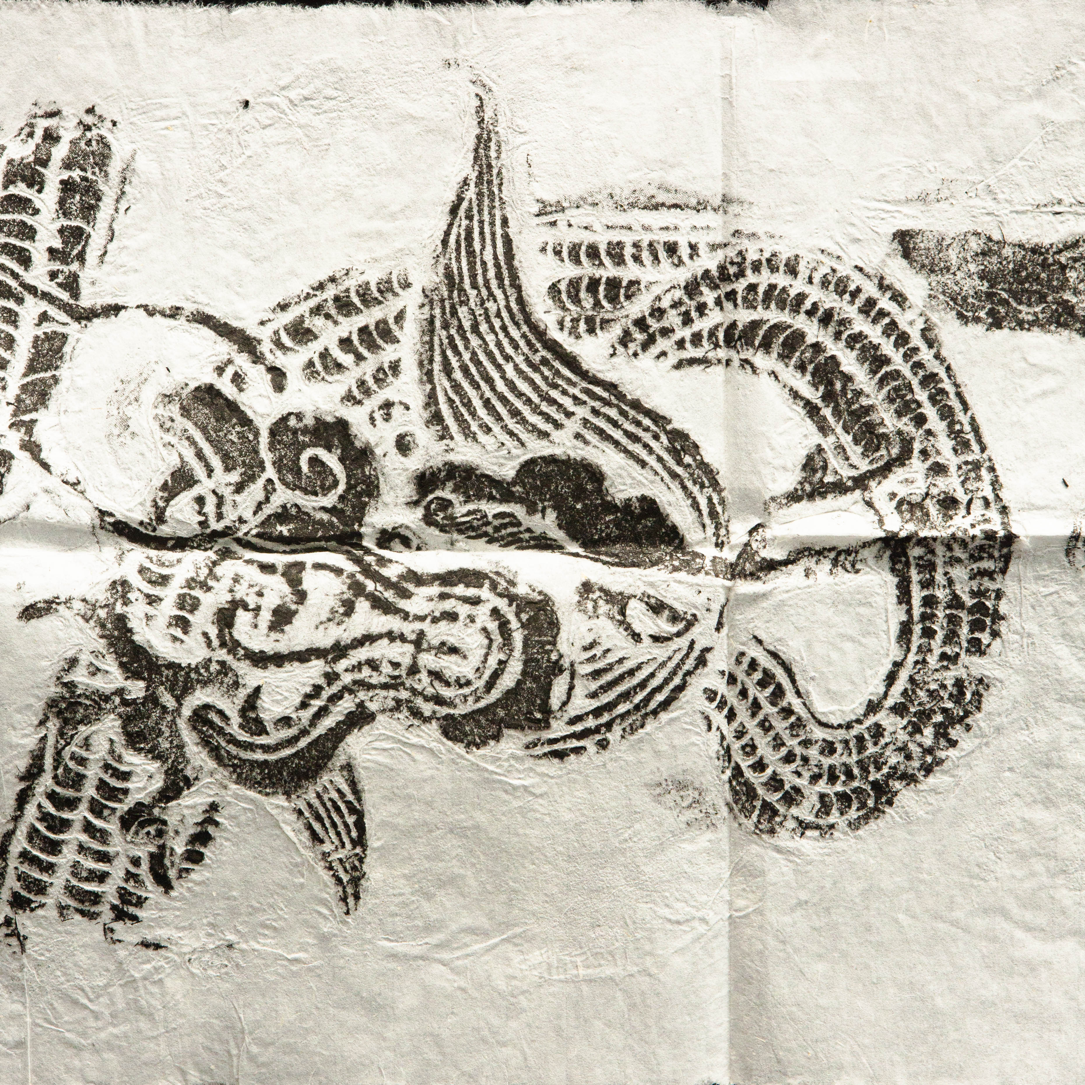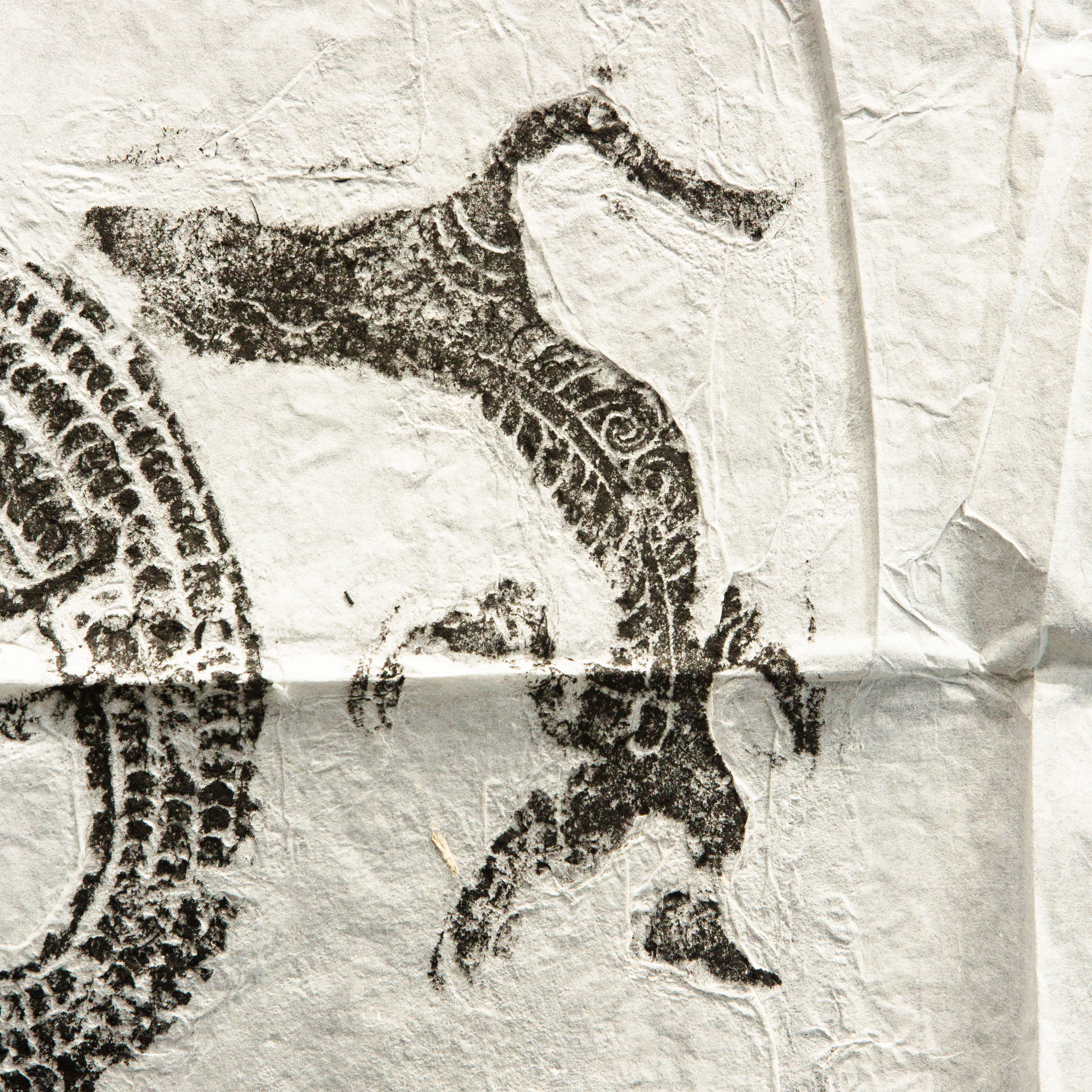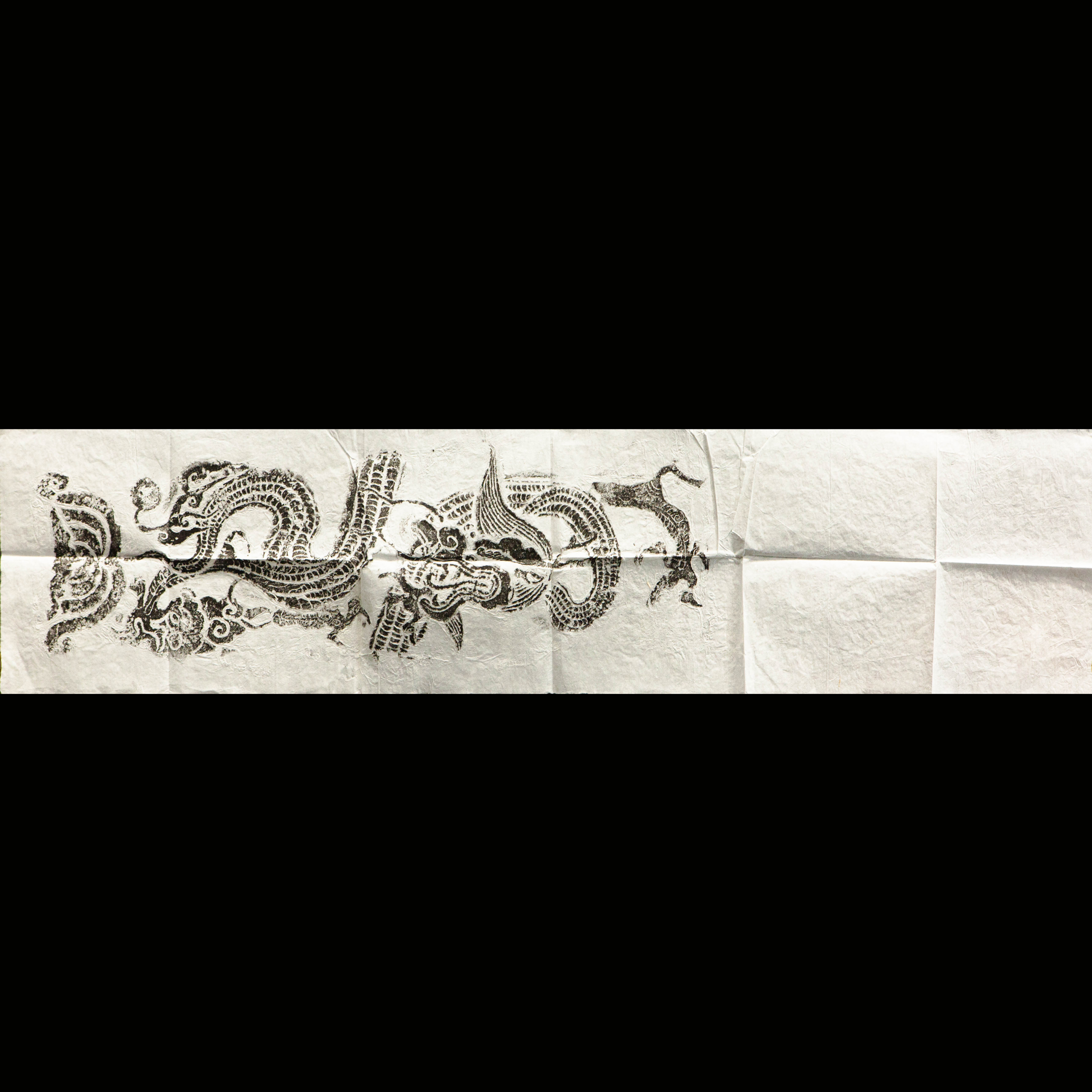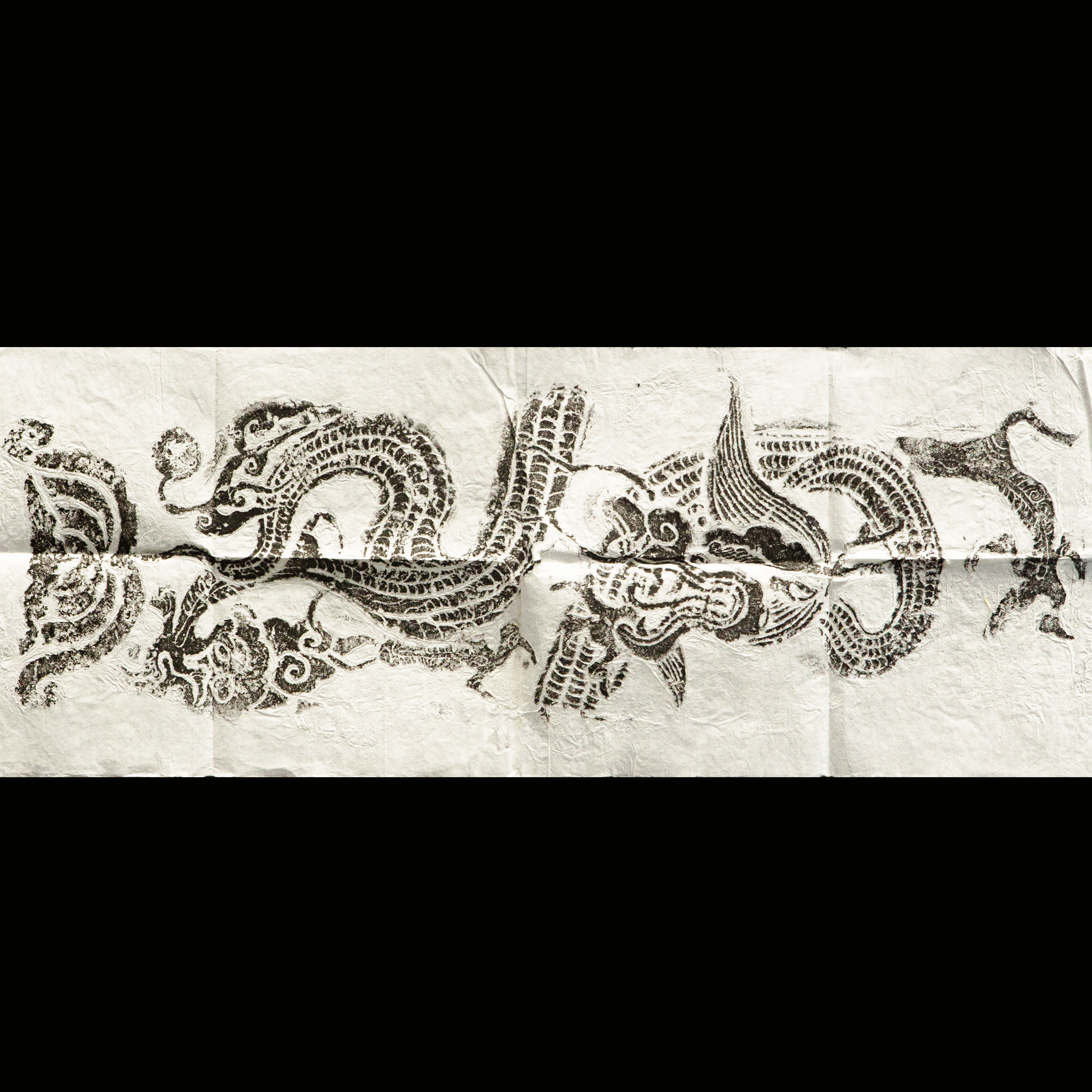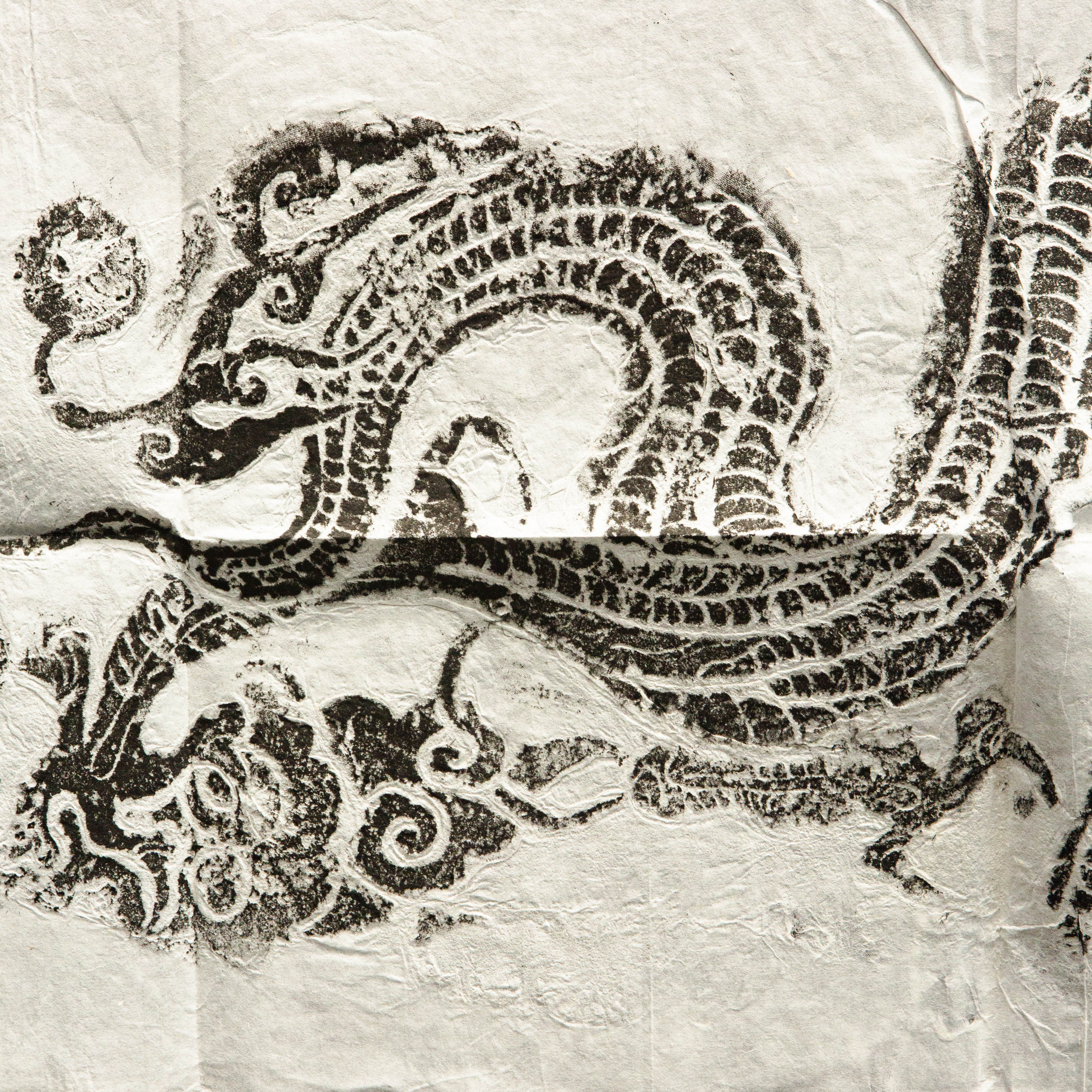 明代龙纹刻石拓片,原石原拓,此刻石为道观中的刻石,整体气息古拙苍茫,刻工有力度,龙之形象威武灵动,此拓片是收藏和题跋创作的佳品。